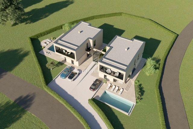 Prodaje se moderna villa u izgradnji s bazenom u okolici Poreča! Investitor gradi dvije ville sa bazenom na mirnoj lokaciji u blizini centra Poreča i uređenih plaža. Projekt je zamišljen u modernom dizajnu s elementima kamena, kao što je prikazano na 3D
