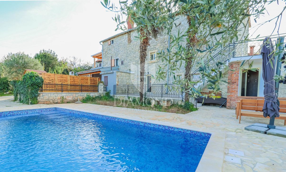 Istra, Tar, priložnost! V majhnem in mirnem mestu Tar, 5 km od Poreča in 1,5 km od čudovitih plaž in morja, se nahaja ta čudovita kamnita istrska hiša z bazenom! Nahaja se le nekaj korakov od centra mesta, v mirni ulici in svojim lastnikom nudi mir in za