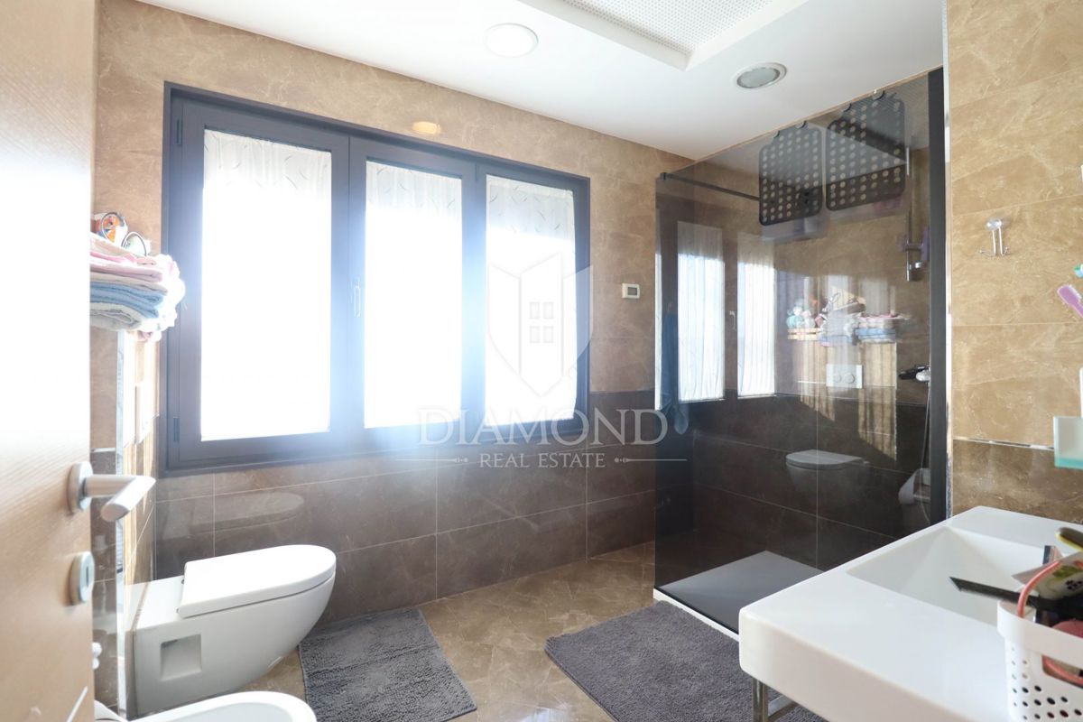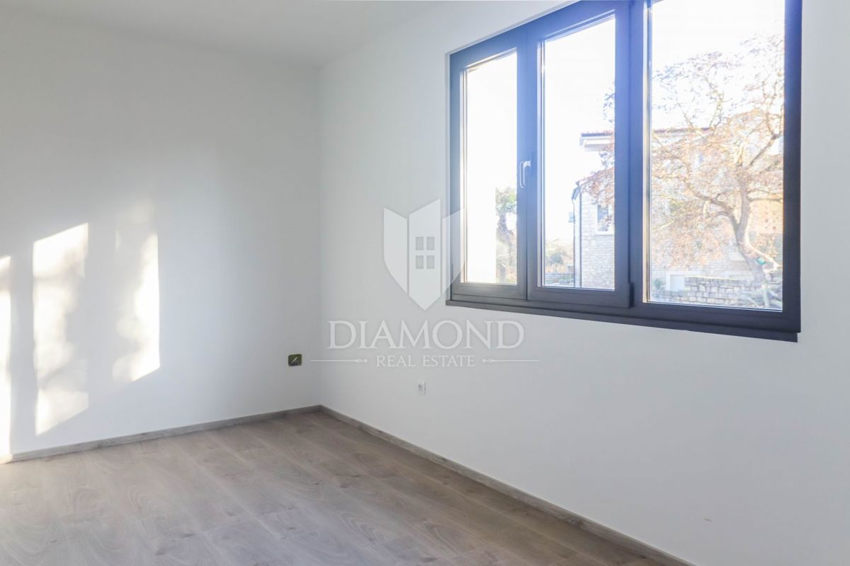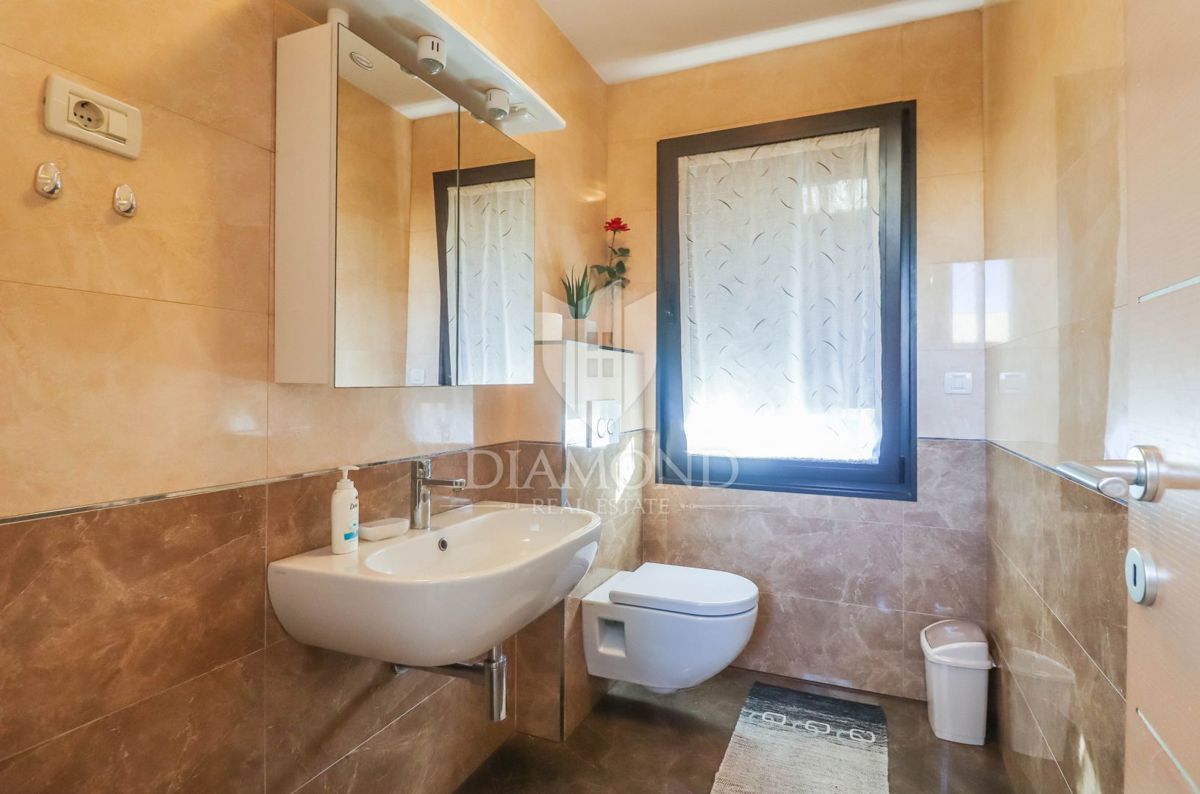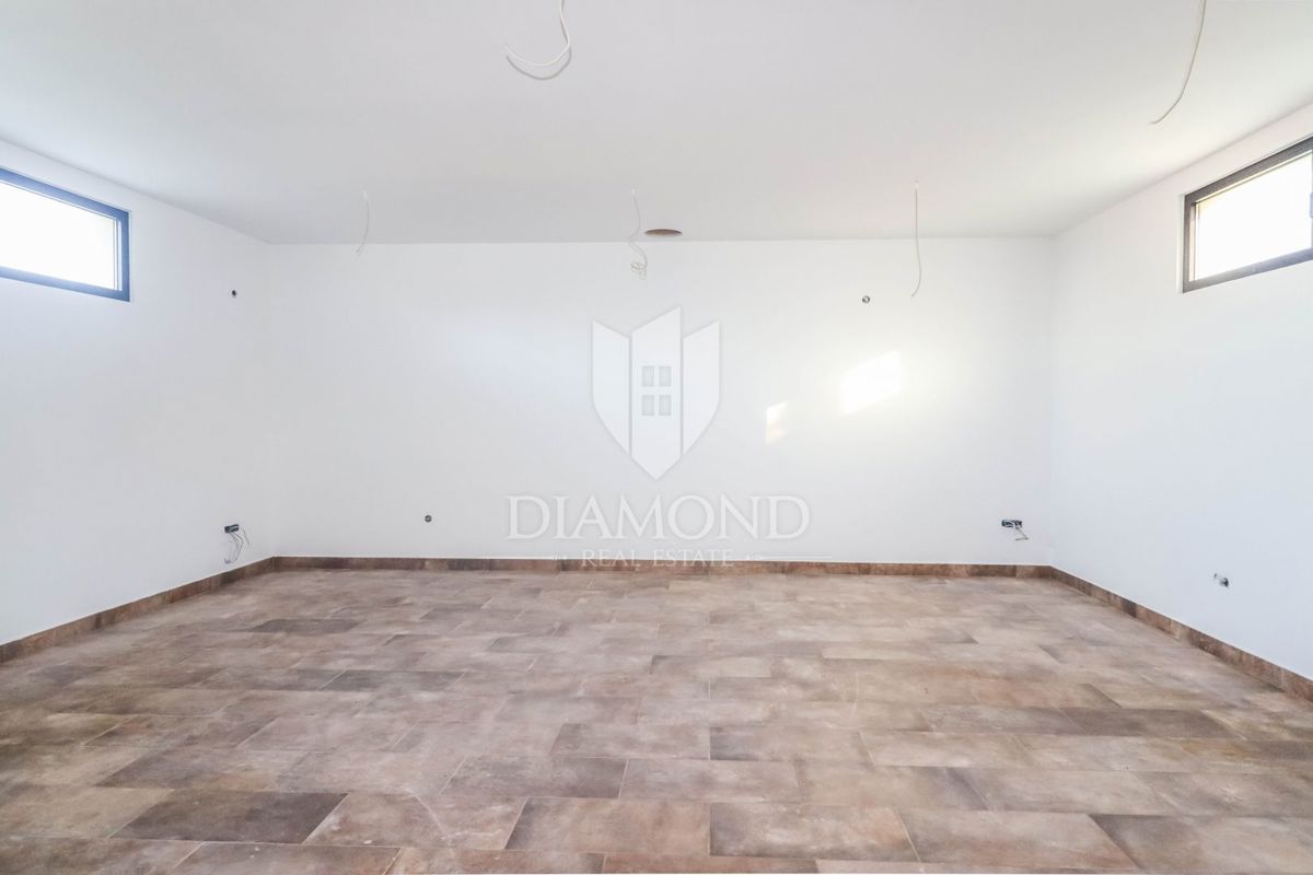 Poreč, okolica, odlična hiša s panoramskim pogledom na morje! Prodaja se samostojna moderna družinska hiša z dvema stanovanjskima enotama. Od centra Poreča in njegovih čarobnih plaž je oddaljen 10 km. Nahaja se na mirni lokaciji z vsemi potrebnimi vsebi