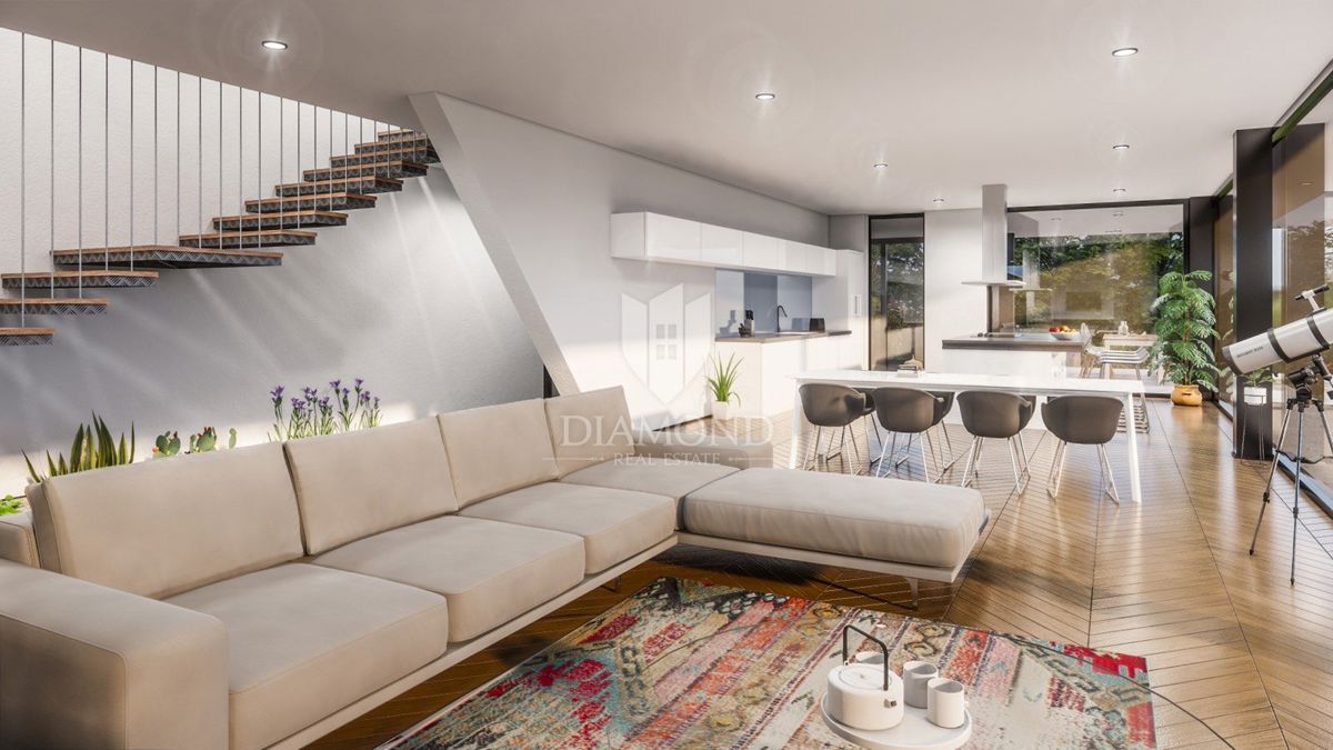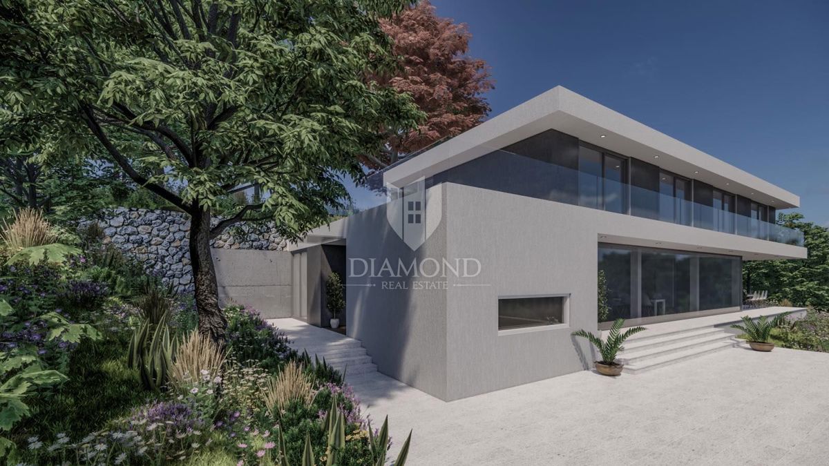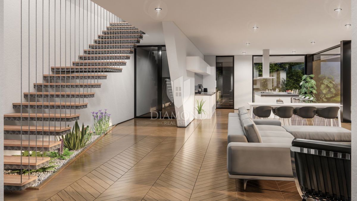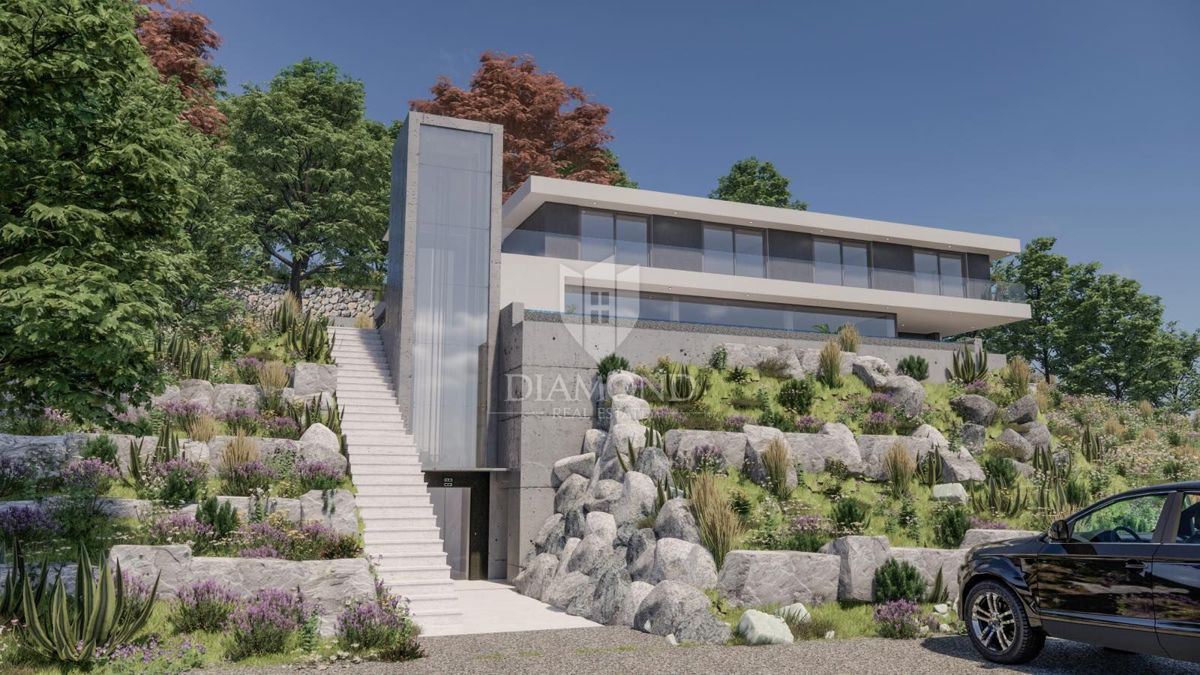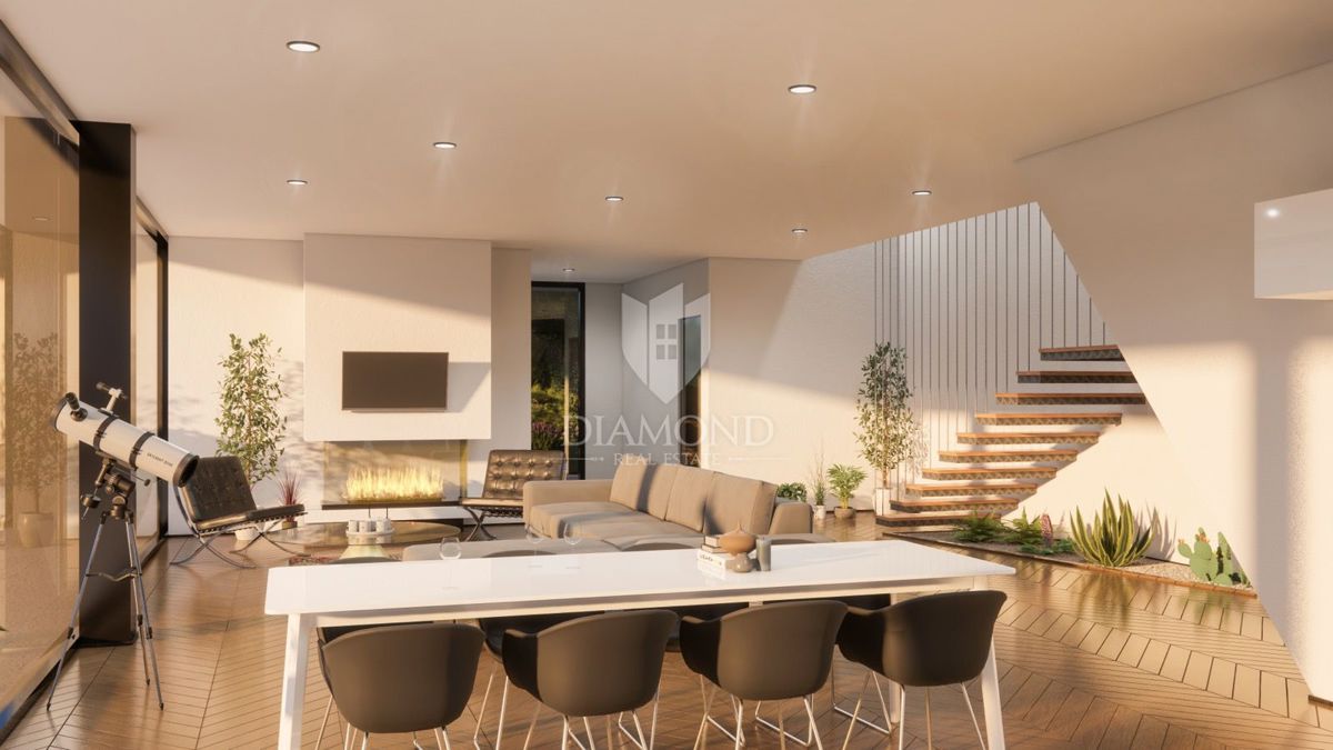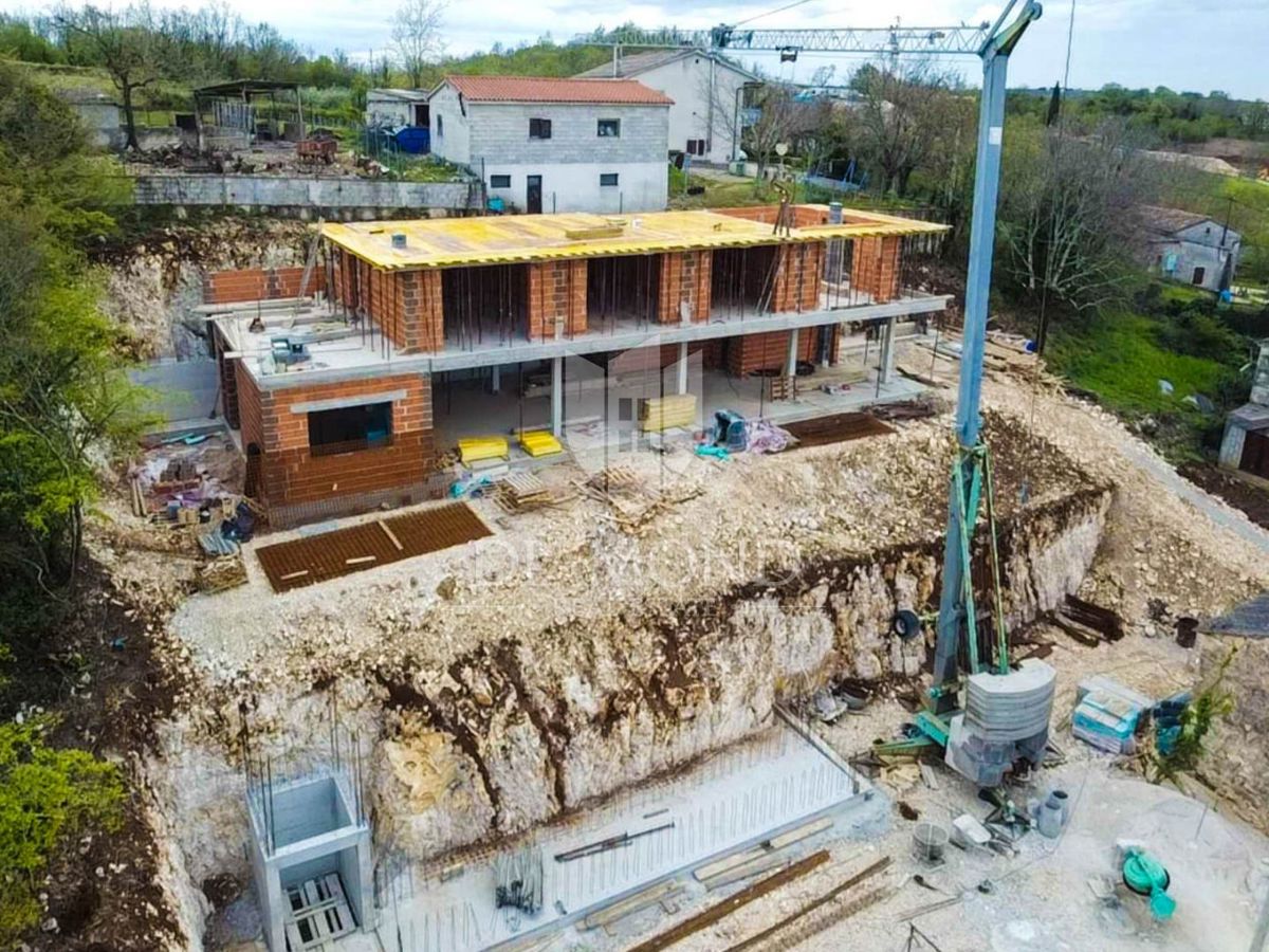 Poreč, okolica, impozantna vila s čudovitim razgledom! Ta impozantna vila s čudovitim pogledom na pokrajino in morje se bo nahajala na mirnem mestu na hribu. Vila ima skupno velikost 400 m2 in se razprostira v dveh nadstropjih. V pritličju je prostorna
