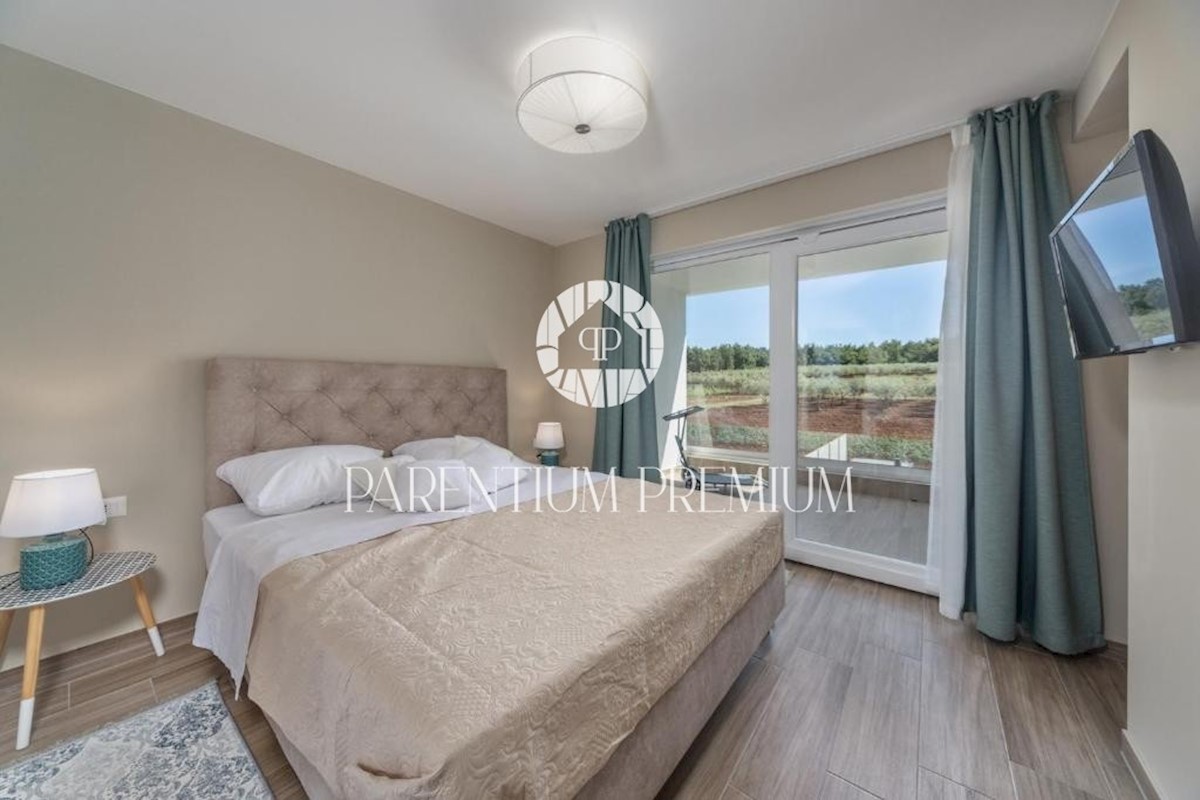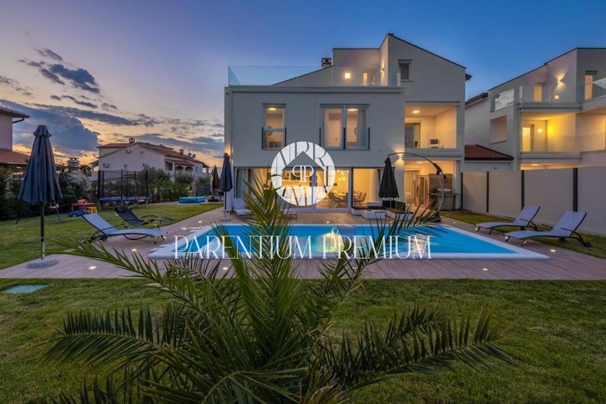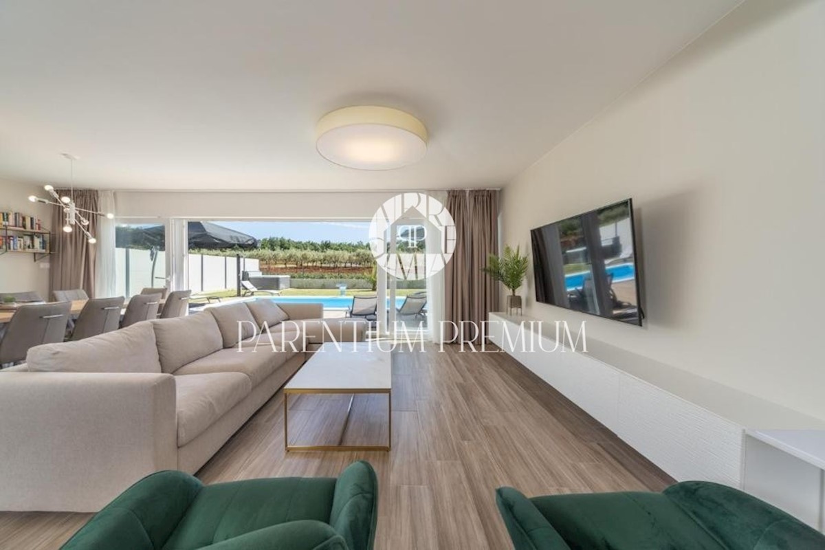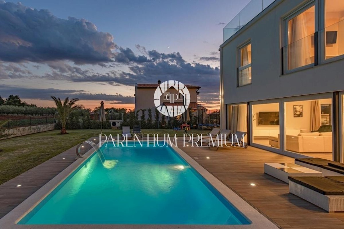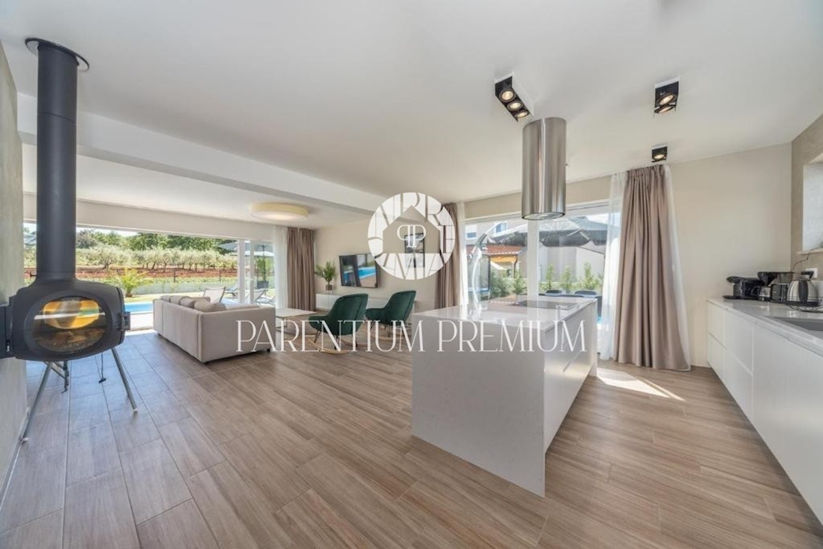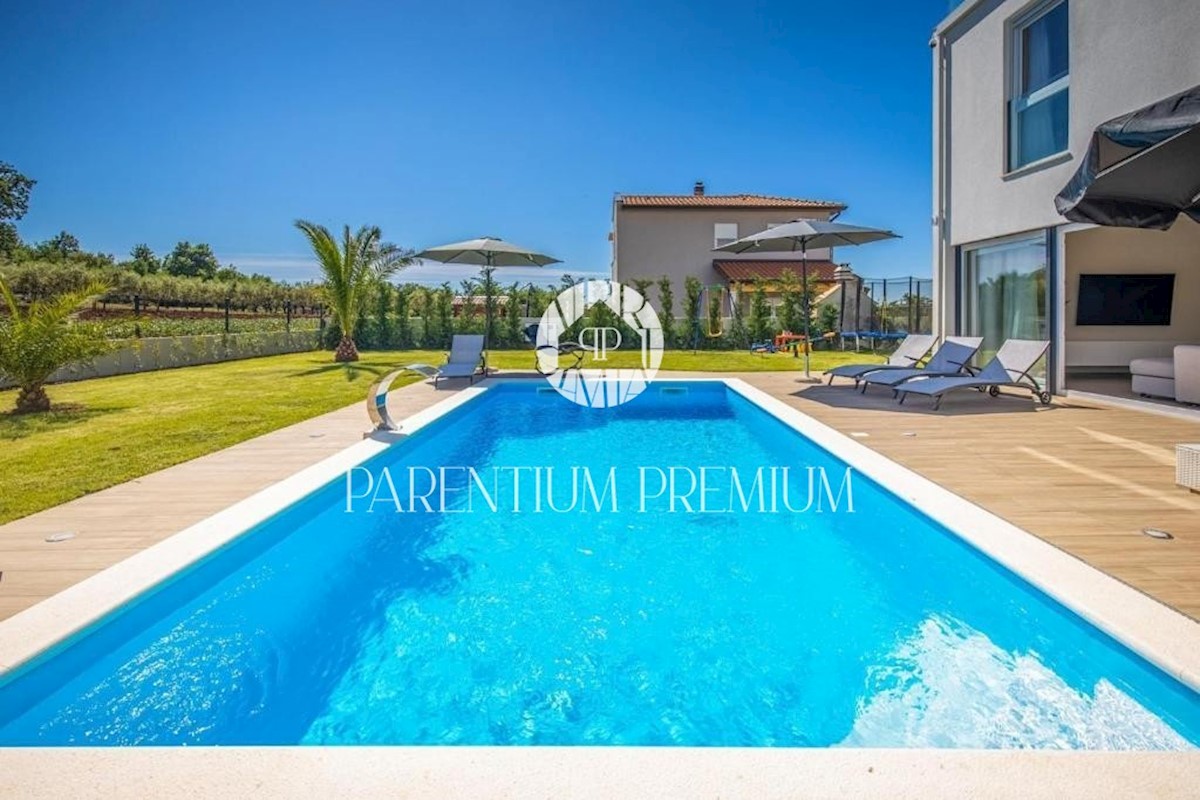 Istra, Poreč Prodamo lepo, moderno vilo, le 5 km od centra in morja. Vila ima površino 211 m2 in se razprostira na parceli velikosti 800 m2. Pritličje hiše sestavljata prostorna dnevna soba, povezana z jedilnico in moderno opremljeno kuhinjo z veliko na