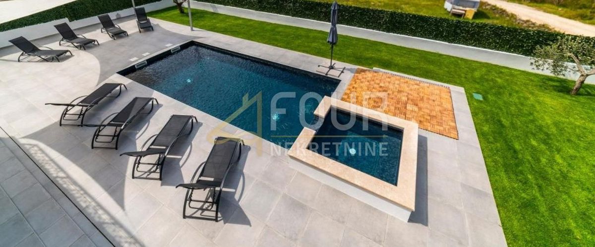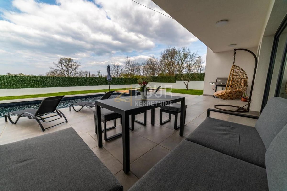 Ponujamo vam moderno vilo z bazenom, ki se nahaja na parceli 592 m2. Nahaja se na zelo lepi in mirni lokaciji, v bližini Poreča. Vila je zasnovana kot dvoetažno stanovanje, kjer se v spodnjem delu nahaja kuhinja z jedilnico, dnevna soba, hodnik, spalnica,
