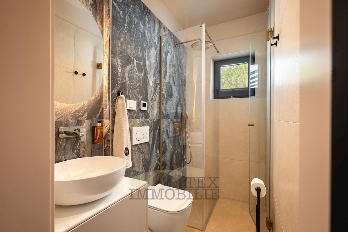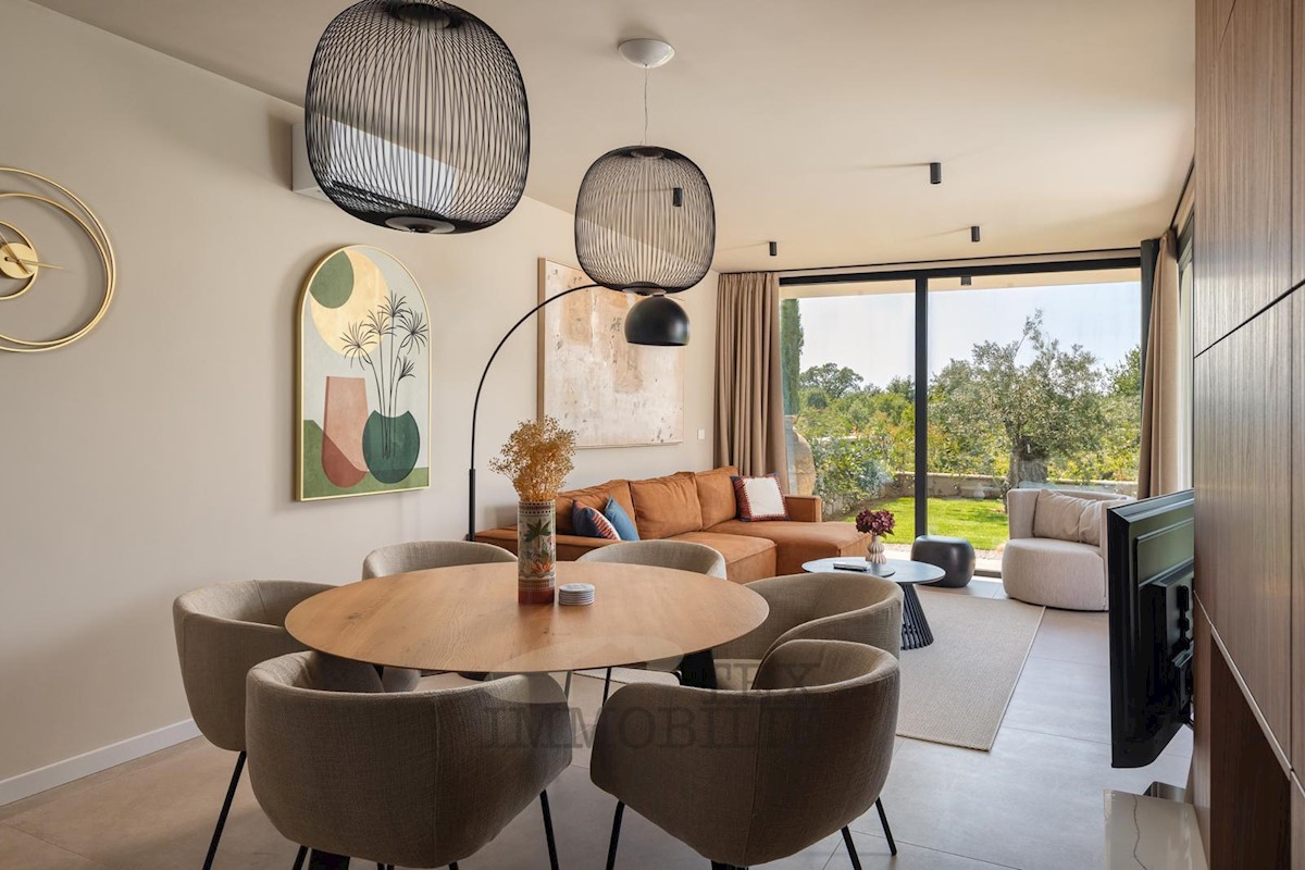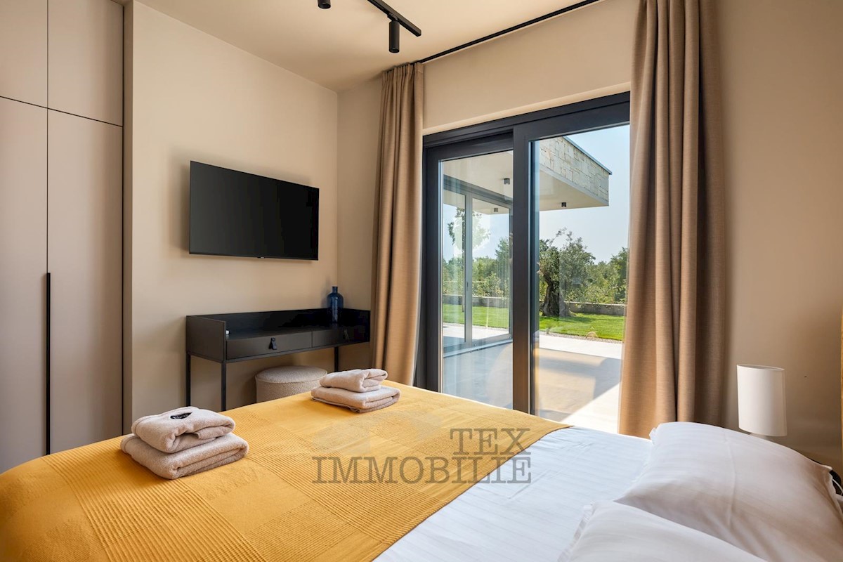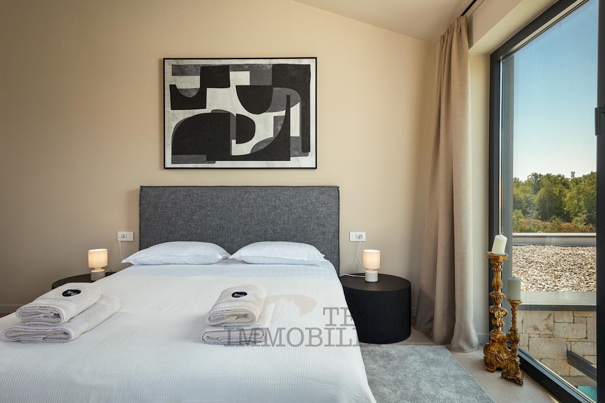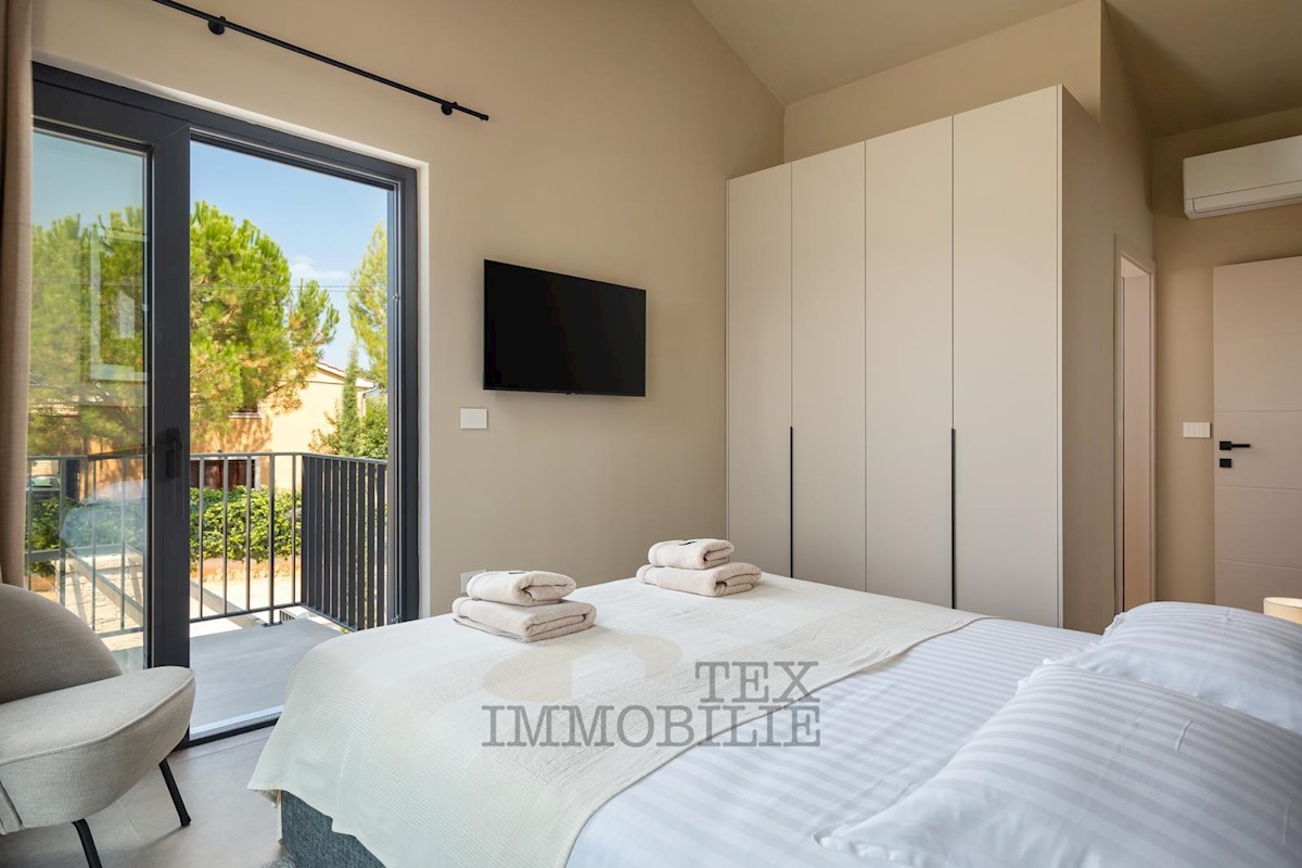 Ta čudovita dvojna hiša bo zgrajena v majhnem mestu, 5 kilometrov od centra Poreča in 4 kilometre od prvih plaž. Obkrožena je z novimi sodobnimi hišami in lepim oljčnim nasadom. Skupna površina je 111 m2, hiša pa je sestavljena iz dveh nadstropij. Pritlič