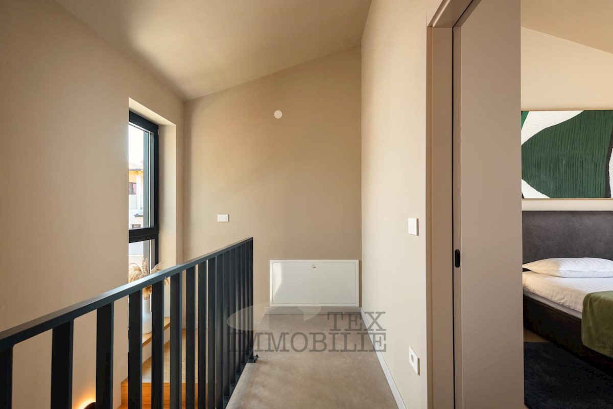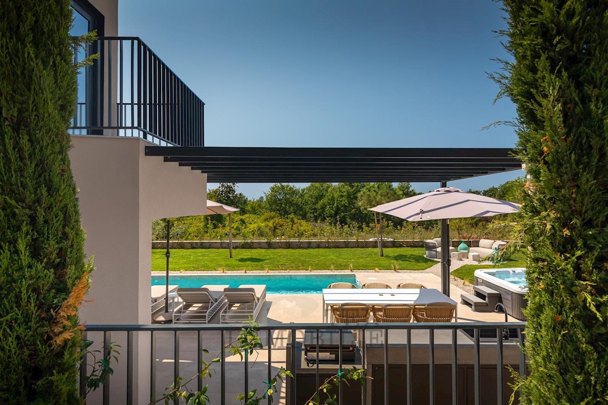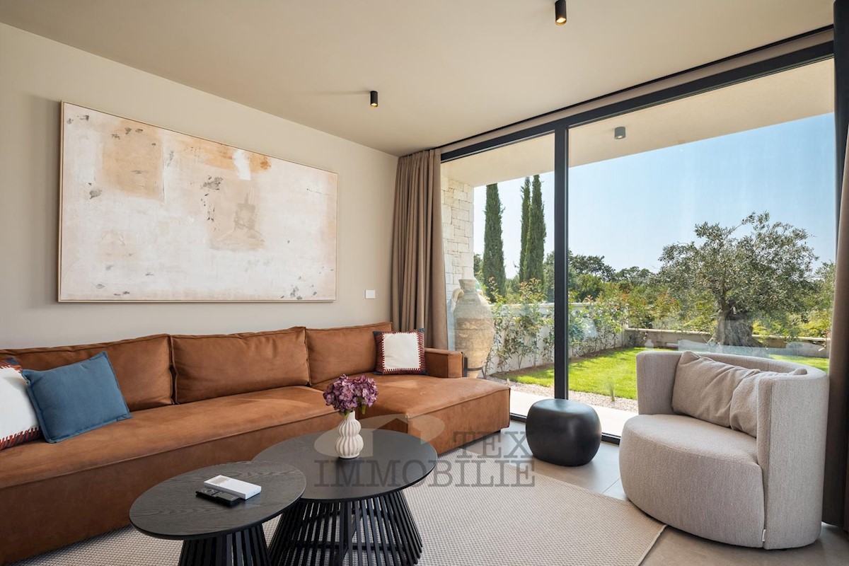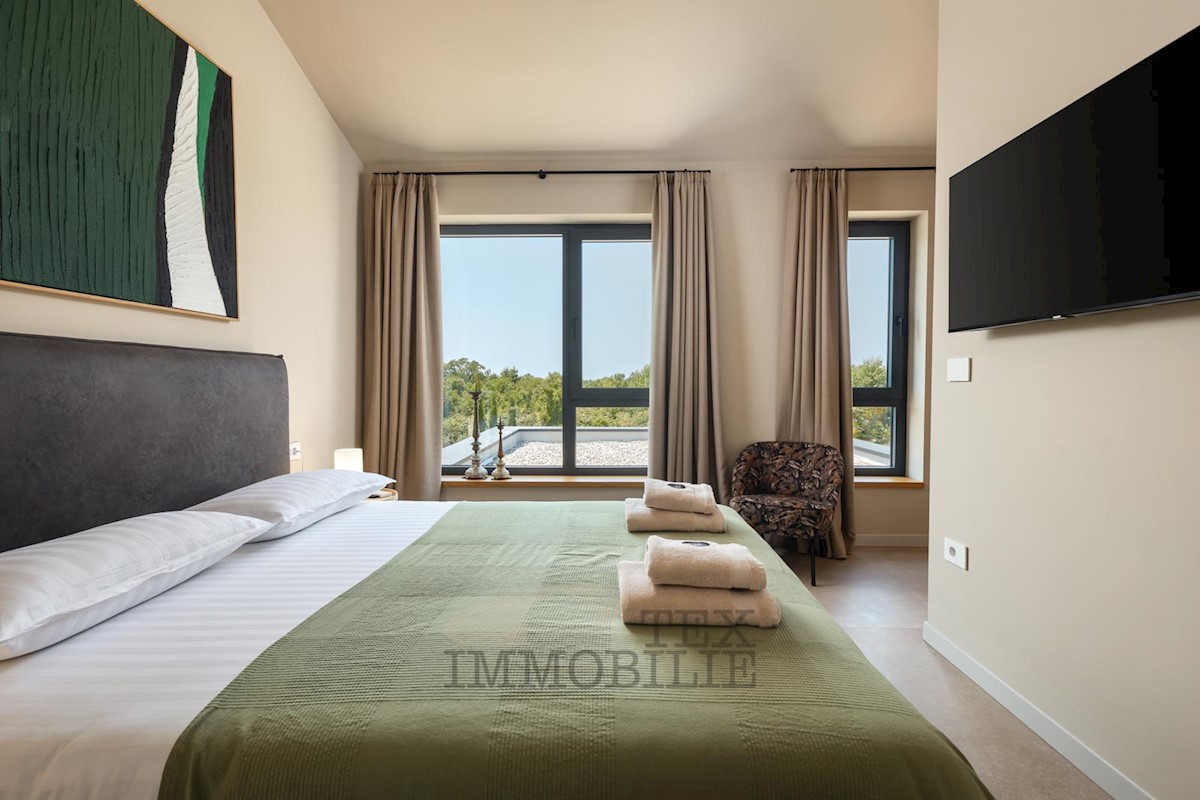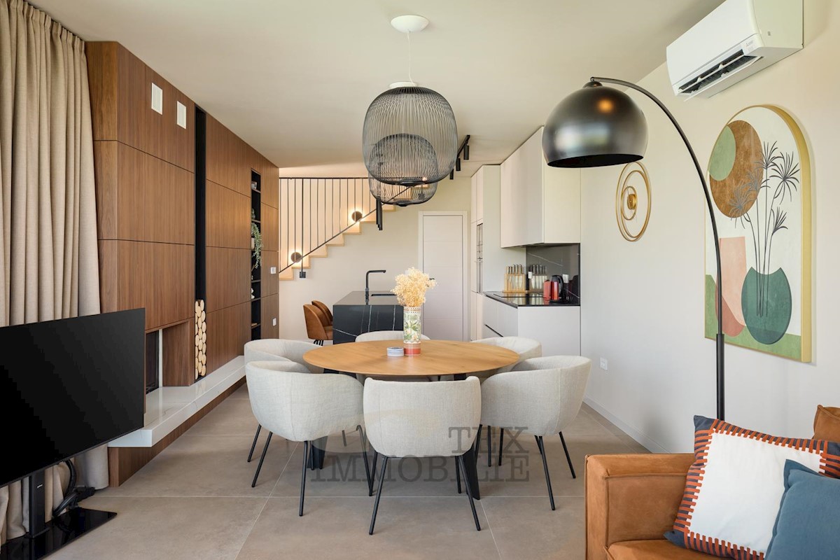 Ta čudovita dvojna hiša bo zgrajena v majhnem mestu, 5 kilometrov od centra Poreča in 4 kilometre od prvih plaž. Obkrožena je z novimi sodobnimi hišami in lepim oljčnim nasadom. Skupna površina je 111 m2, hiša pa je sestavljena iz dveh nadstropij. Pritlič