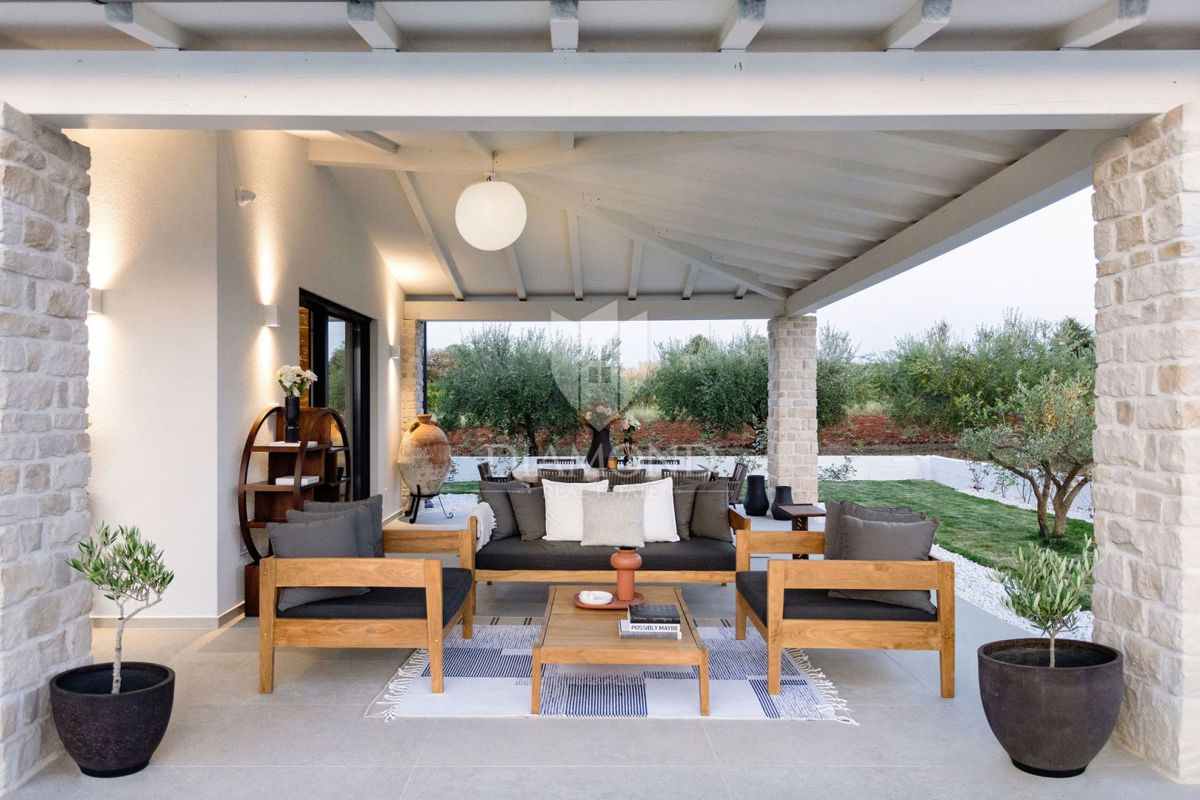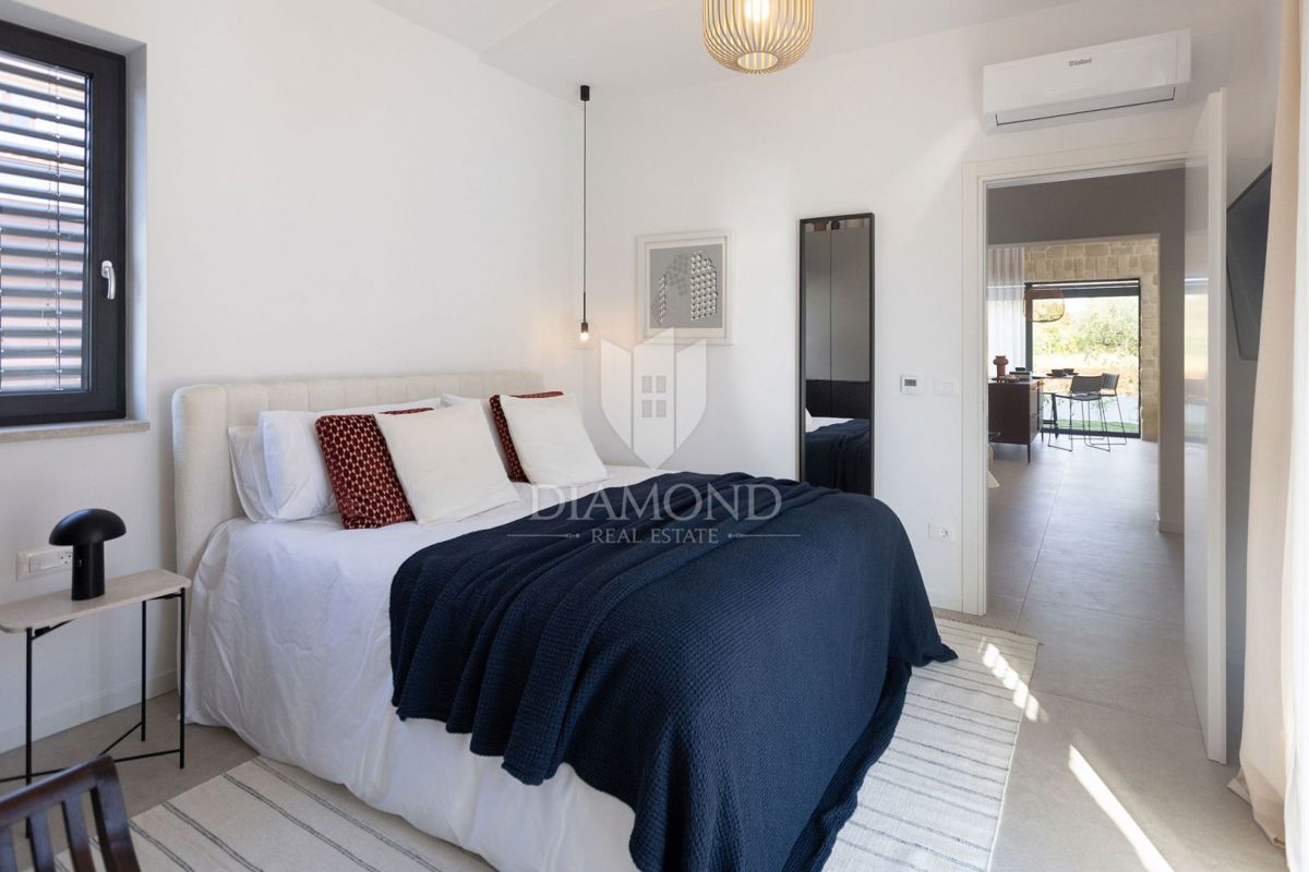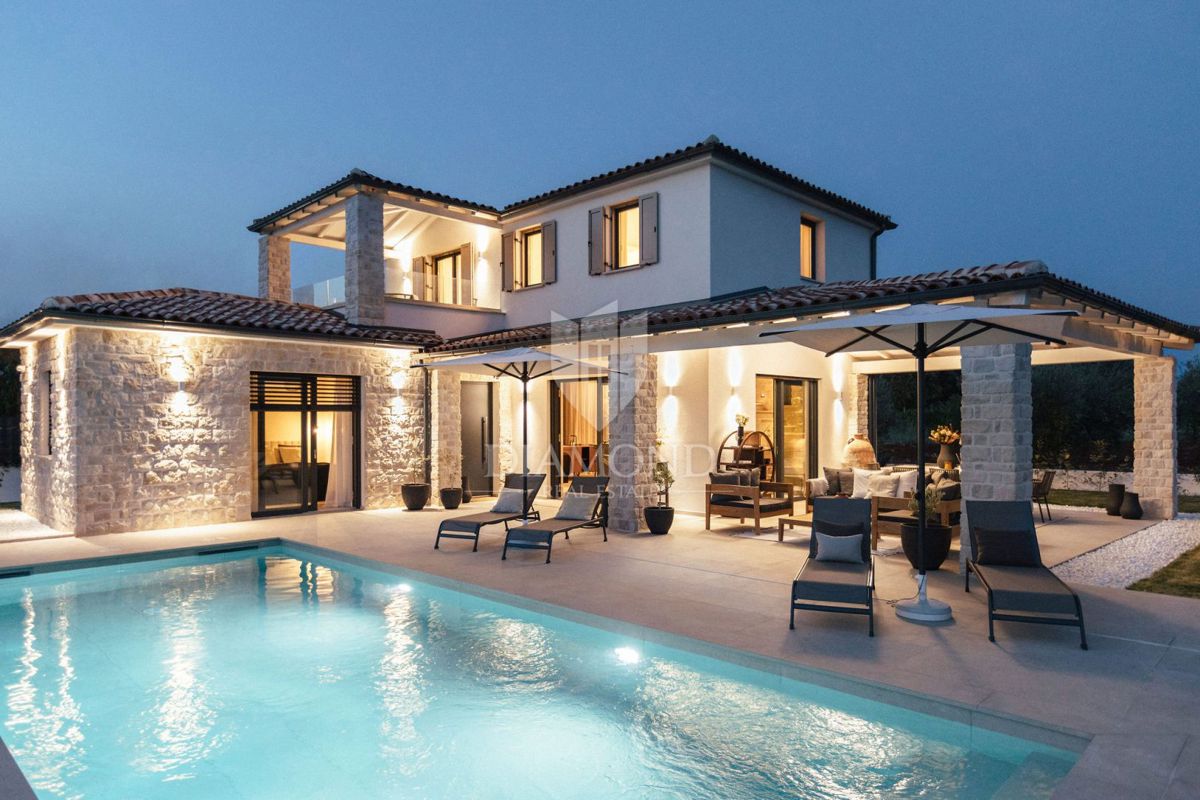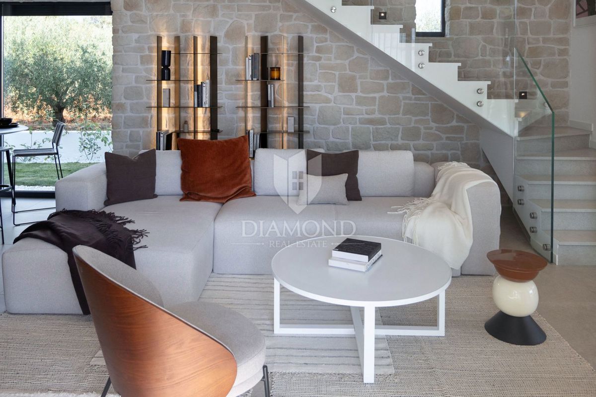 Istra, Poreč, okolica Nedaleč od centra Poreča in plaže v kraju, obkroženem z novejšimi hišami in oljčnimi nasadi, se prodaja odlična rustikalna vila z bazenom in pogledom na morje. Vila se nahaja na zemljišču velikosti 584 2 in meri 155 m2. Vila se r