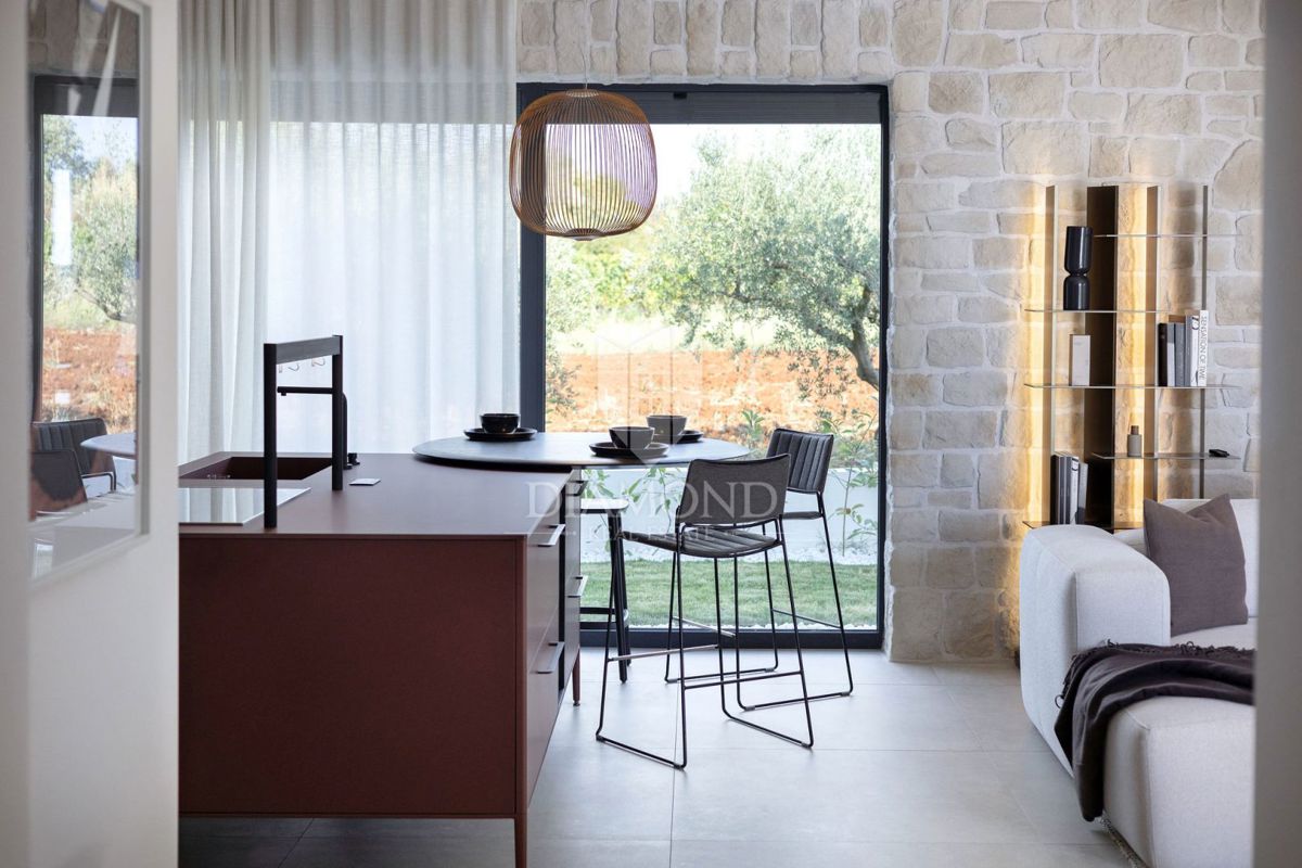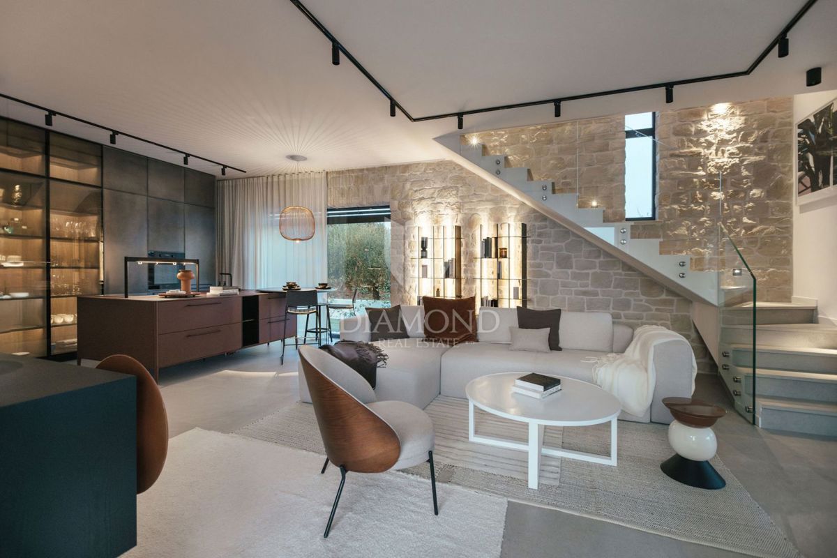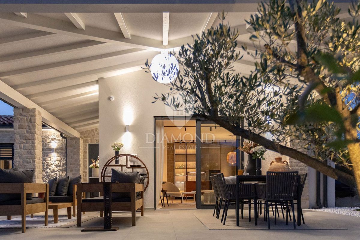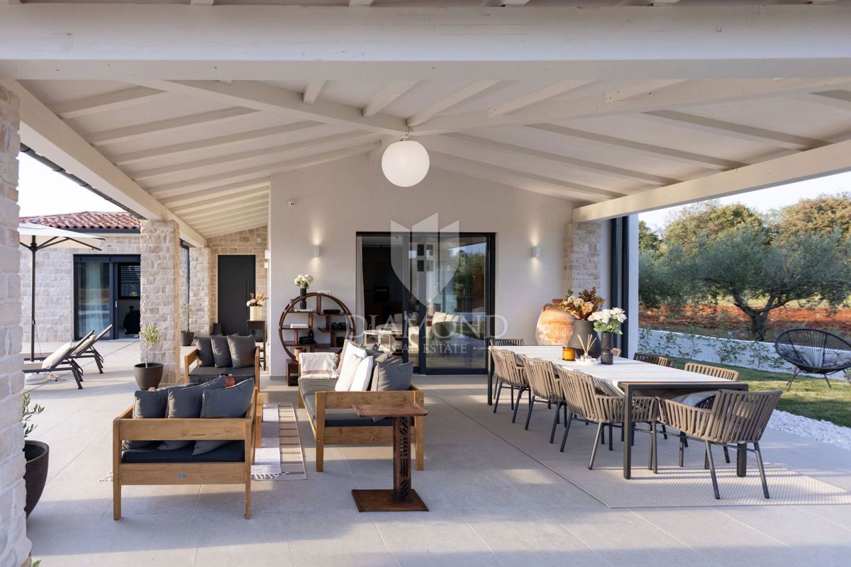 Istra, Poreč, okolica Nedaleč od centra Poreča in plaže v kraju, obkroženem z novejšimi hišami in oljčnimi nasadi, se prodaja odlična rustikalna vila z bazenom in pogledom na morje. Vila se nahaja na zemljišču velikosti 584 2 in meri 155 m2. Vila se r