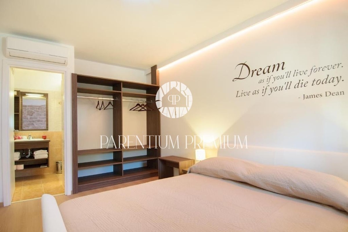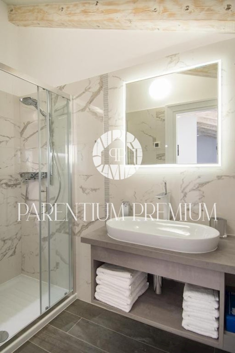 Ta avtohtona istrska hiša s pogledom na morje in 4 luksuznimi apartmaji se nahaja v turističnem območju blizu mesta Poreč in 1500 metrov od prvih urejenih plaž. Prvotno je bila zgrajena v 1900-ih in obnovljena leta 2018. Hiša ima površino 300 m2 na parcel