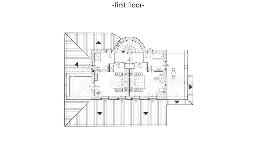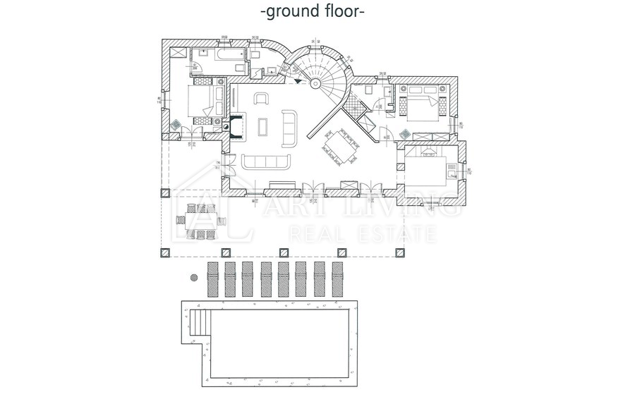 Istra, okolica Poreča Vila C1 Prodamo očarljivo kamnito vilo v istrskem stilu z bazenom, ki se nahaja 16 km od mesta Poreč in od morja v idilični pokrajini istrske pokrajine v kompleksu 10 vil. Vila se razteza v dveh etažah, pritličju in nadstropju, s p