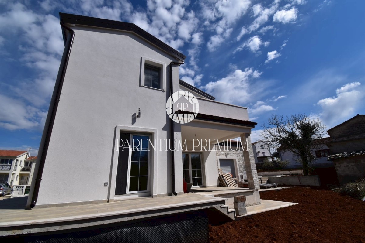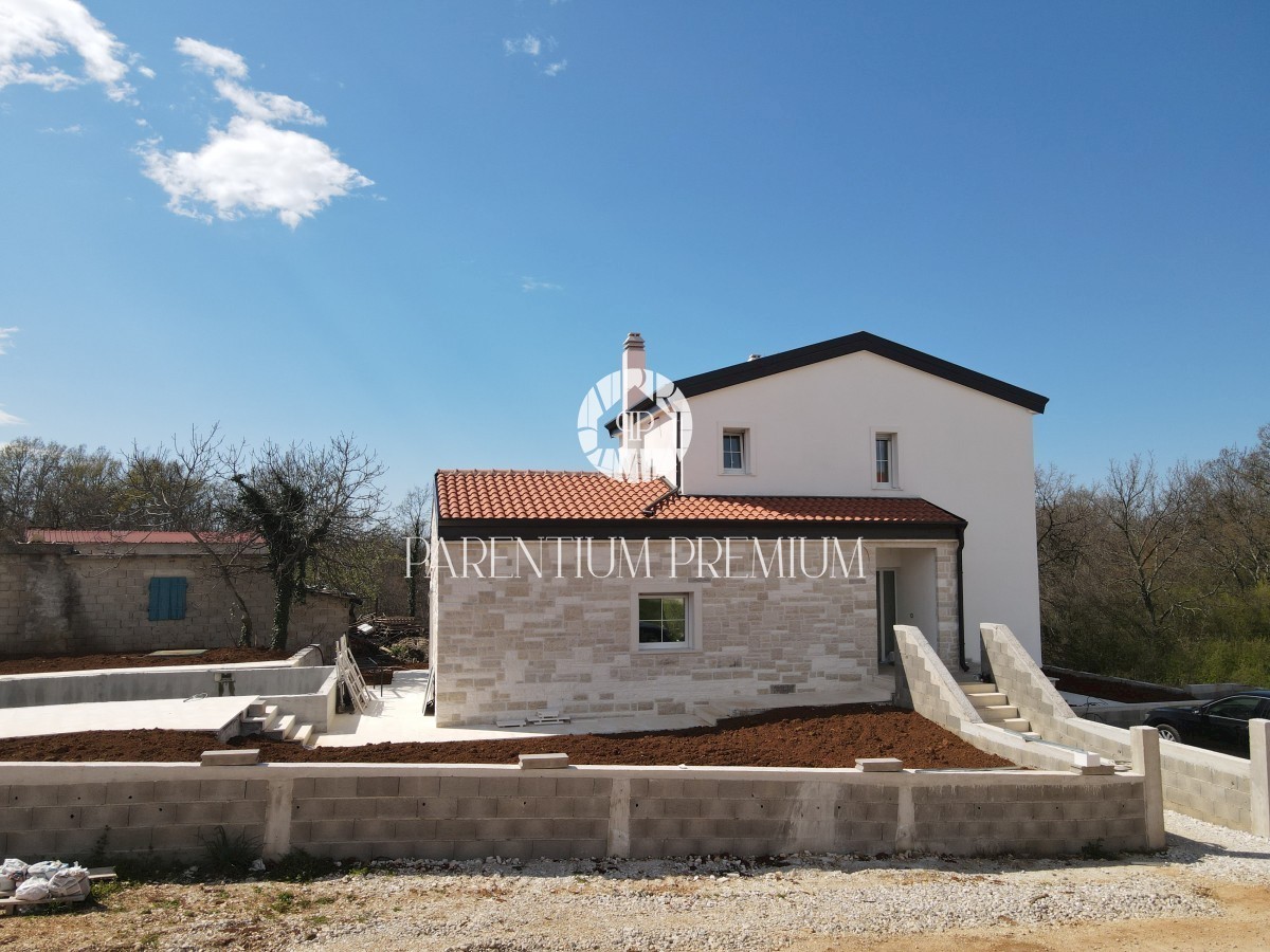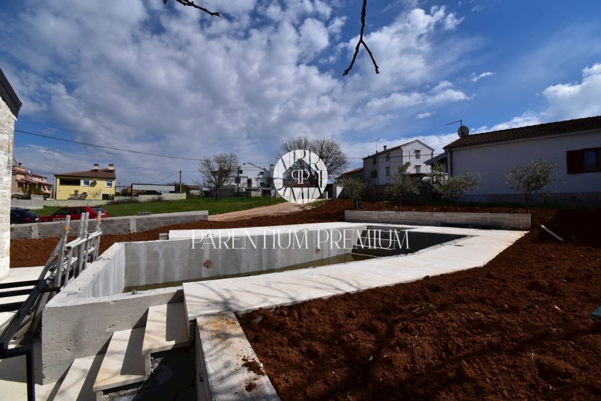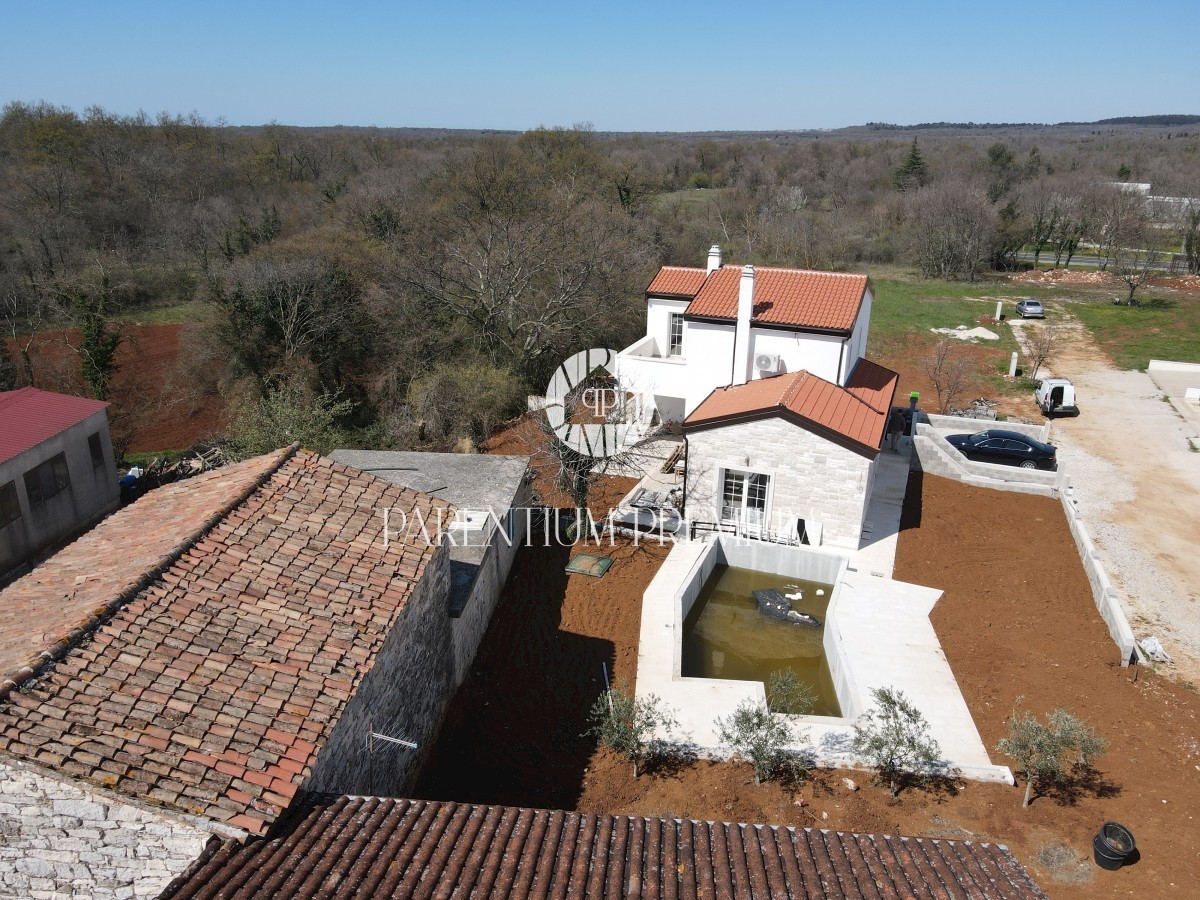Istra, okolica Poreča Ta idilična hiša s približno 130 m2 z bazenom in čudovitim vrtom s površino več kot 700 m2 se nahaja na mirni lokaciji v in okolici mesta Poreč. Hiša se razprostira na dveh etažah. Pritličje hiše obsega predsobo, kuhinjo, jedilnico