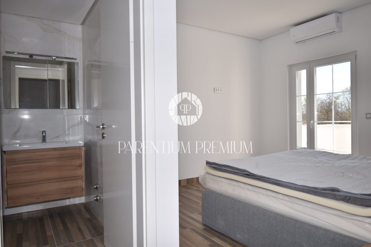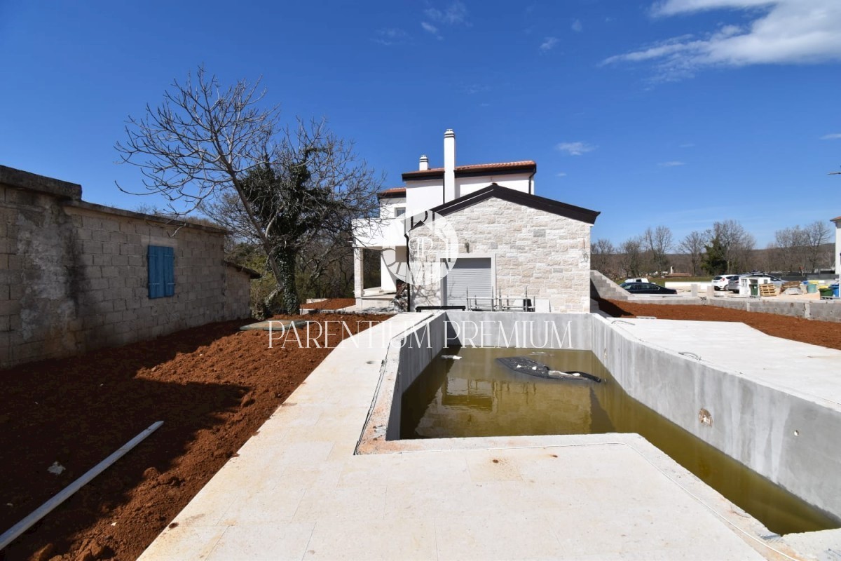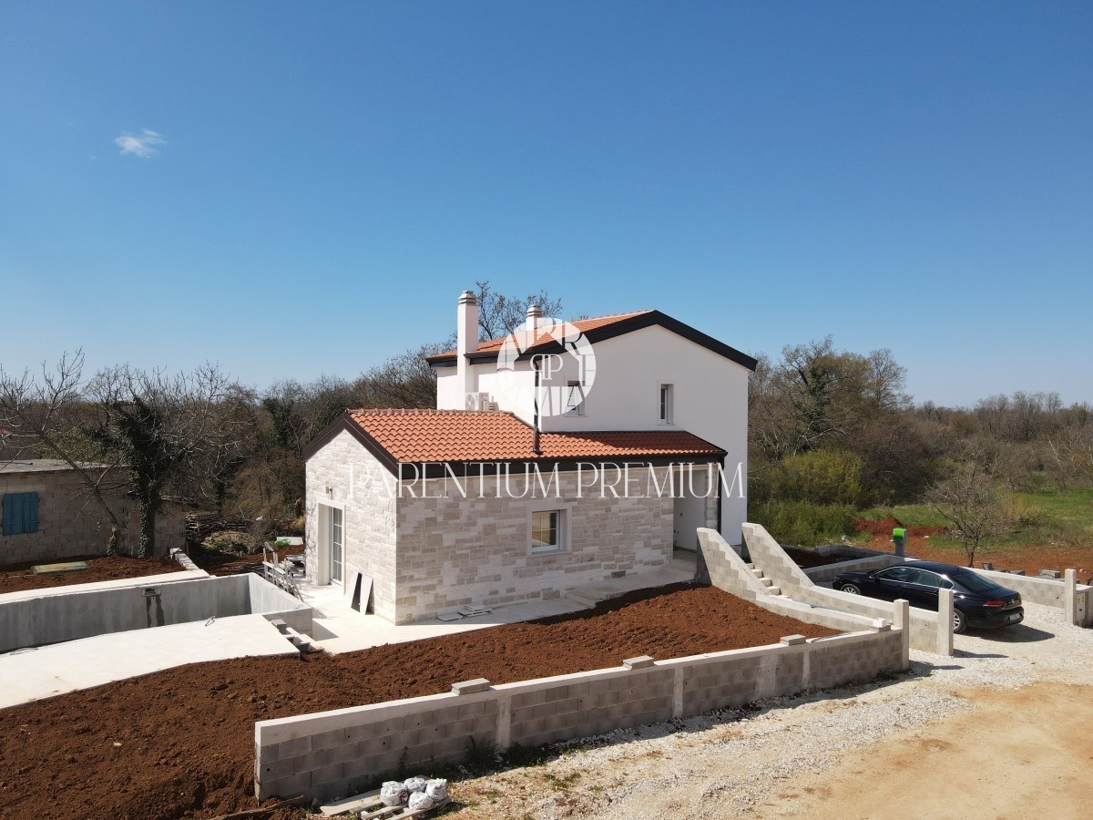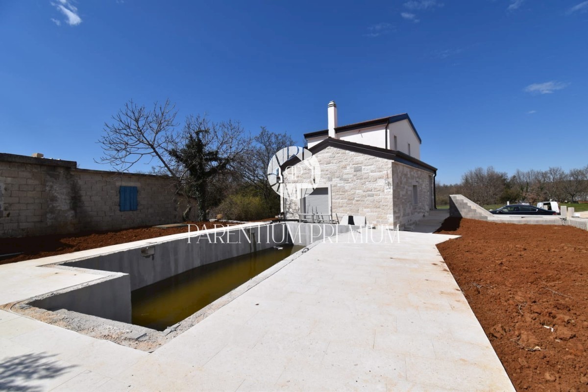 Istra, okolica Poreča Ta idilična hiša s približno 130 m2 z bazenom in čudovitim vrtom s površino več kot 700 m2 se nahaja na mirni lokaciji v in okolici mesta Poreč. Hiša se razprostira na dveh etažah. Pritličje hiše obsega predsobo, kuhinjo, jedilnico