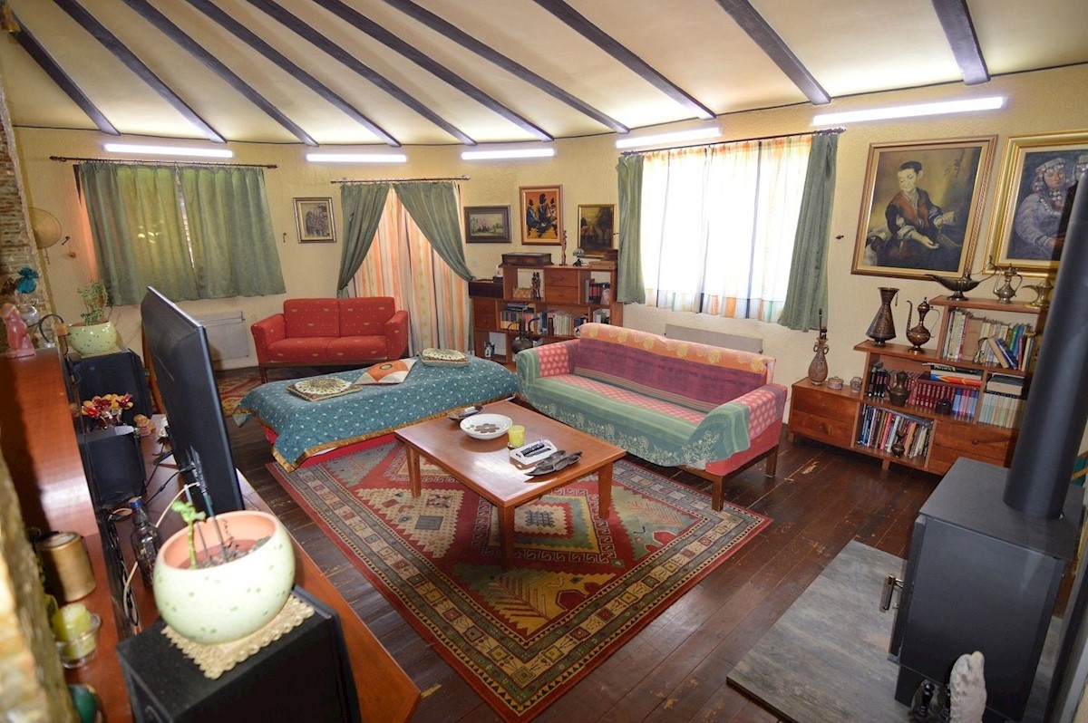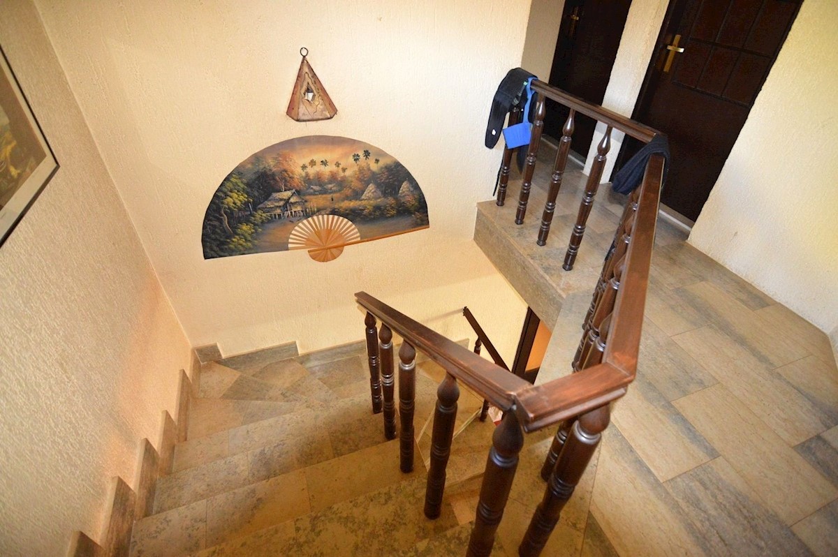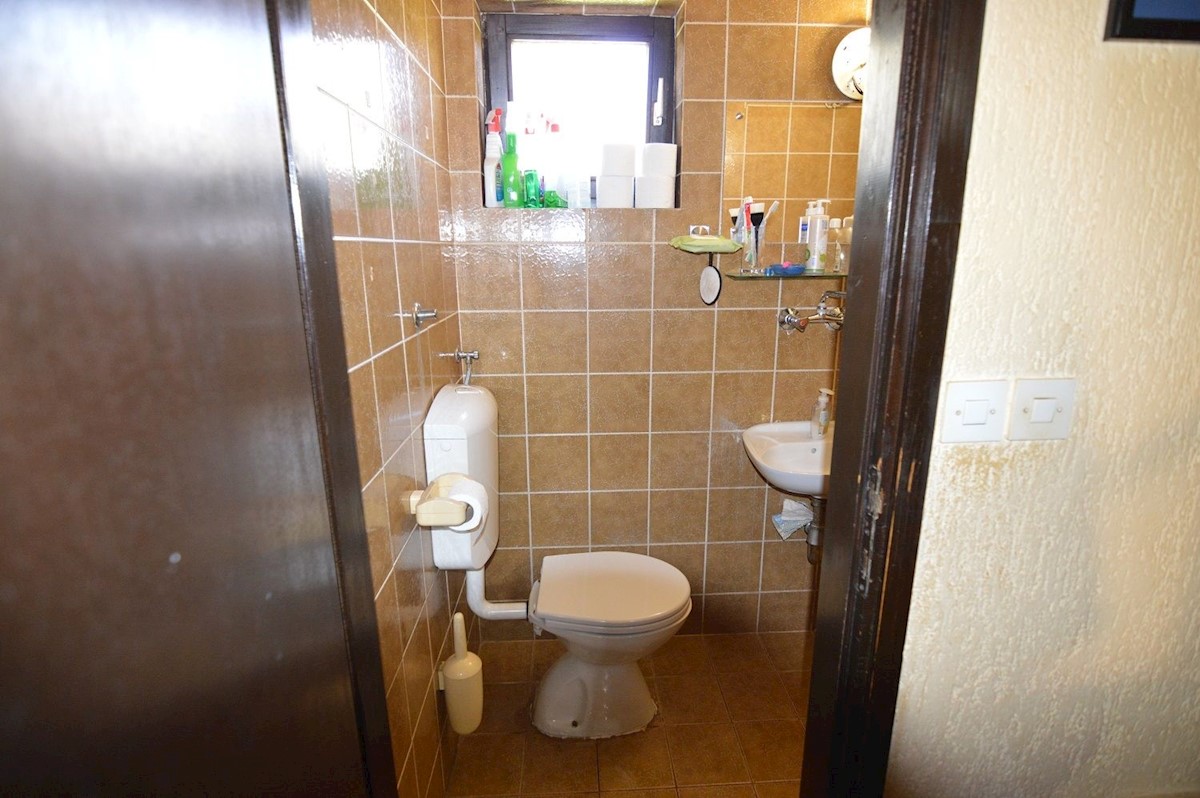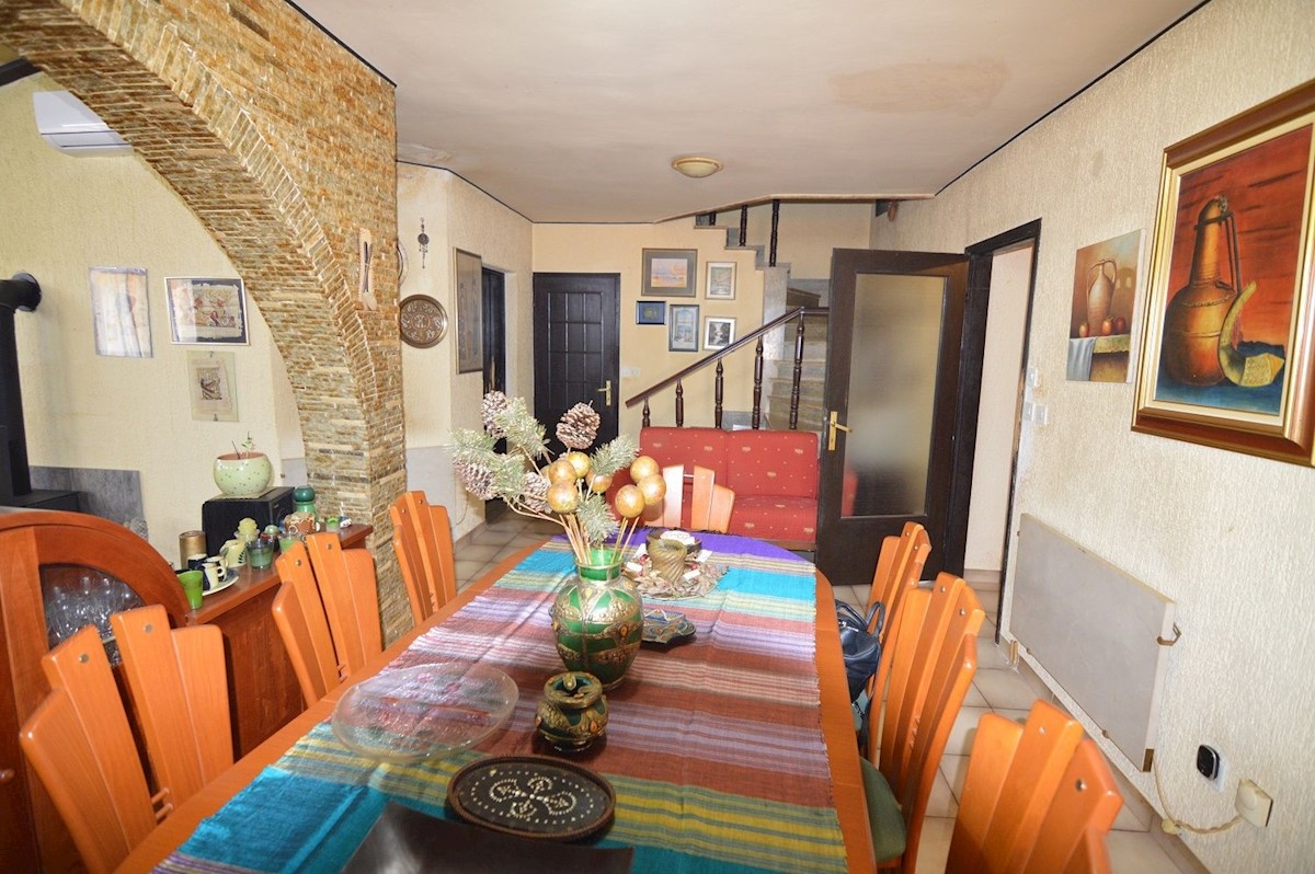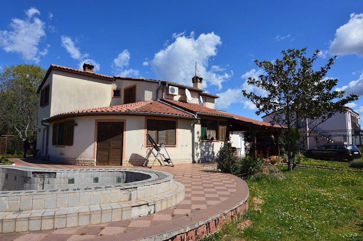 Nedaleč od Poreča prodam družinsko hišo 280 m2 z garsonjero in apartmajem na parceli 1280 m2.Hiša je potrebna obnove, vgrajena je nova stiropor fasada.V pritličju je hiša sestavljena iz predsobe, kuhinje z jedilnico in dnevno sobo, shrambe in kopalnice.V