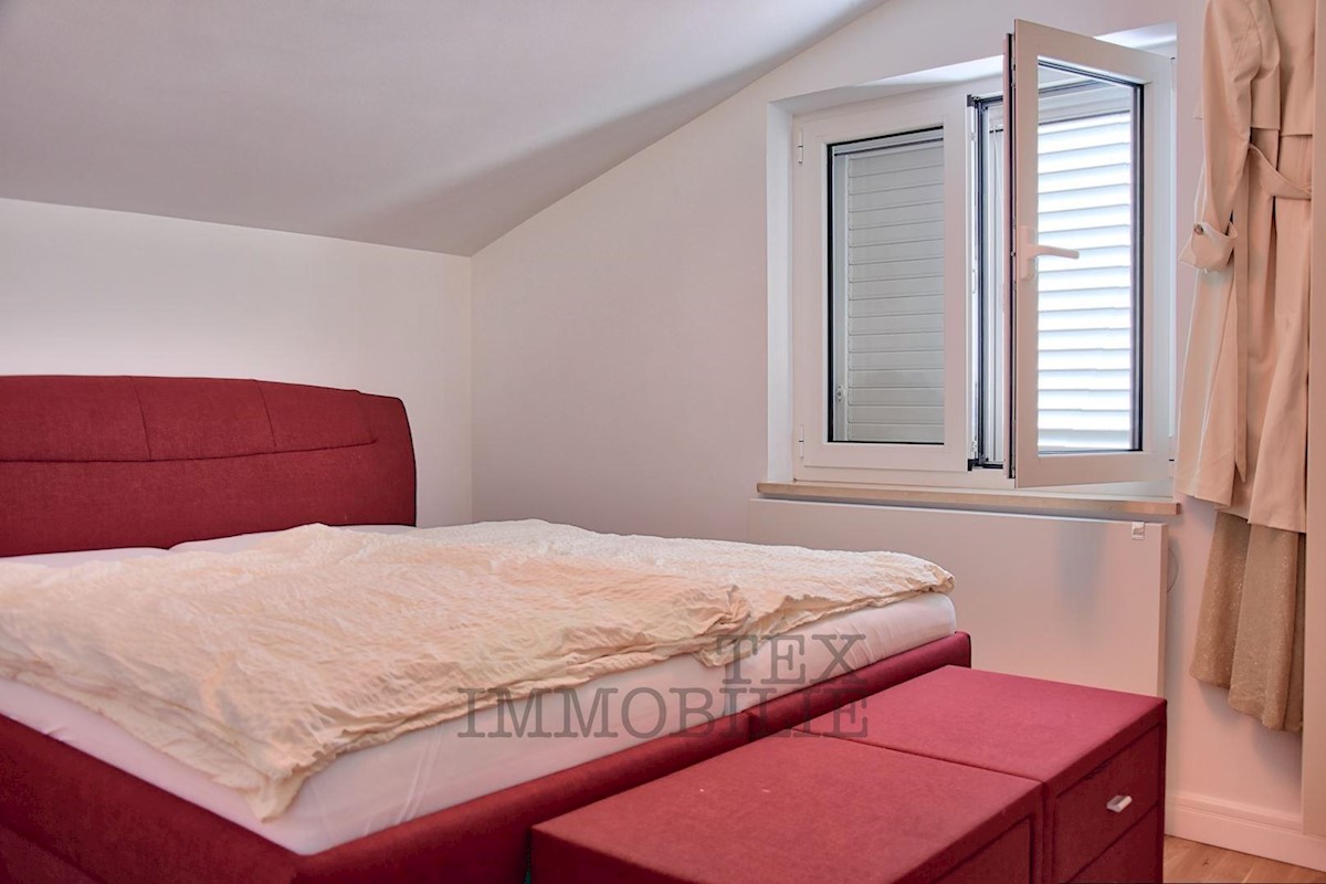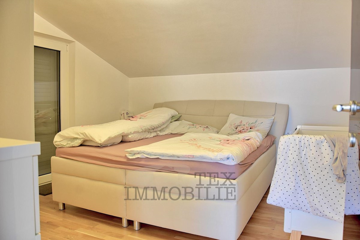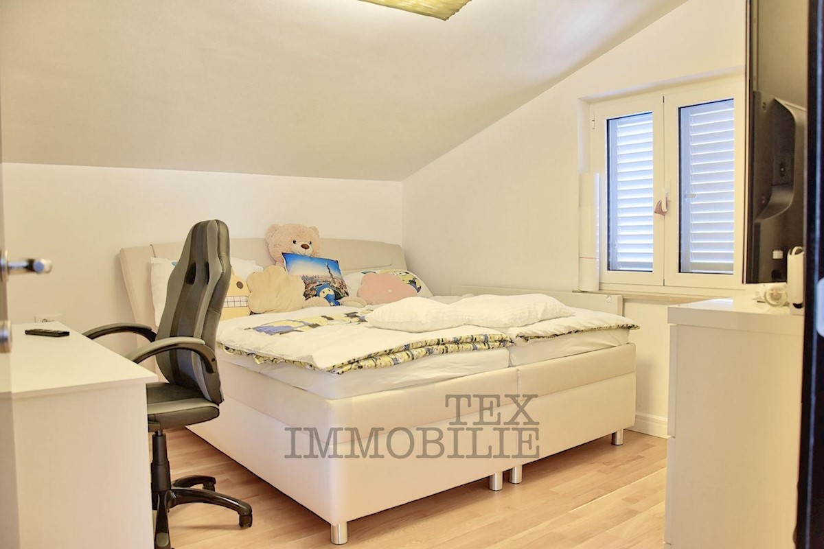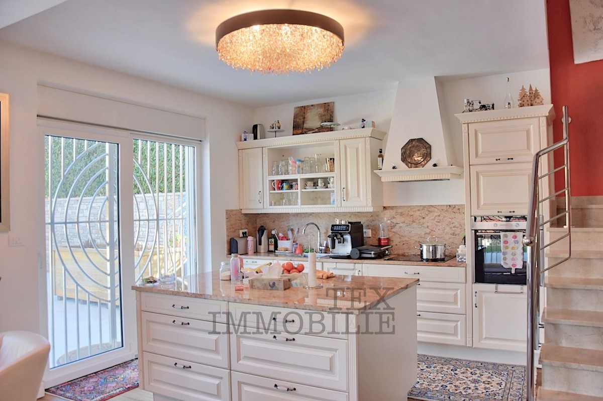 Prodamo hišo z bazenom na parceli 926 m2 nedaleč od Poreča in 3 km od morja. V pritličju hiše se nahaja kuhinja, dnevna soba, kopalnica, shramba in velika pokrita terasa. V 1. nadstropju sta dve spalnici, kopalnica in skupna terasa. V 2. nadstropju so tri