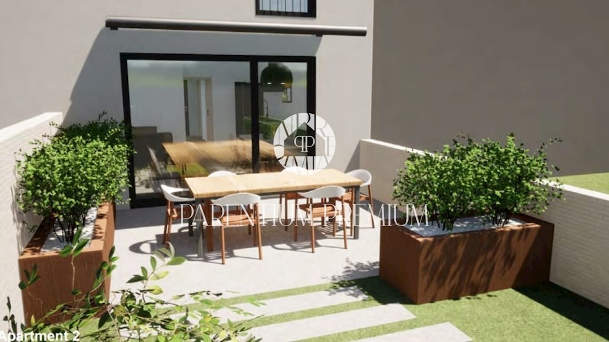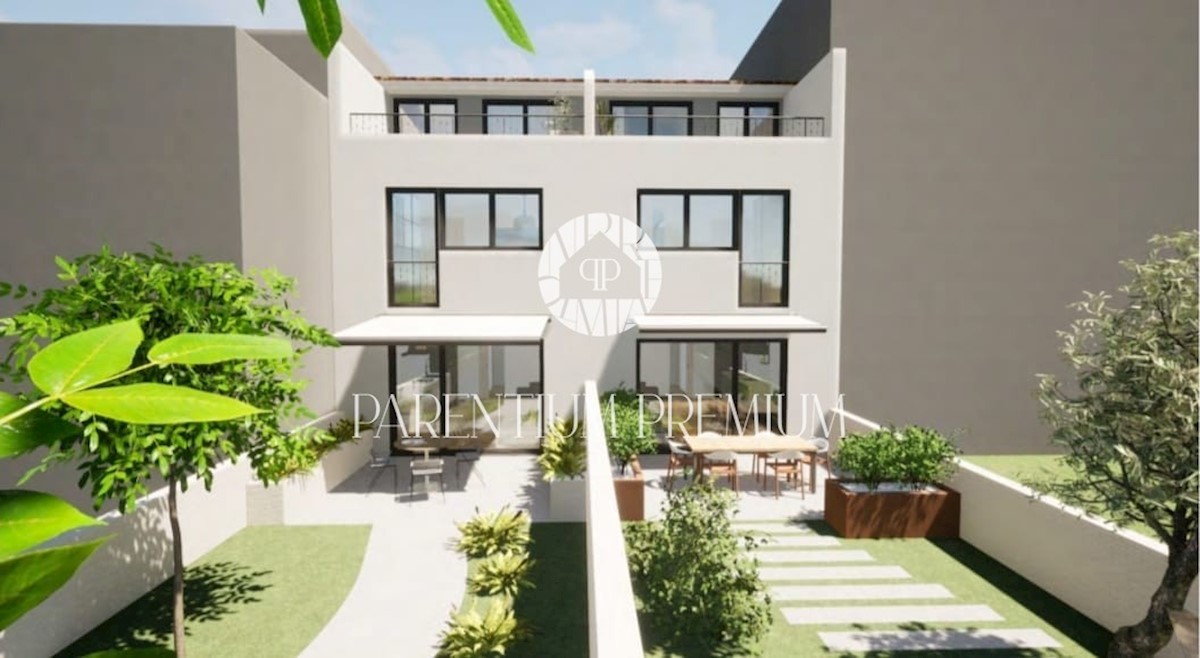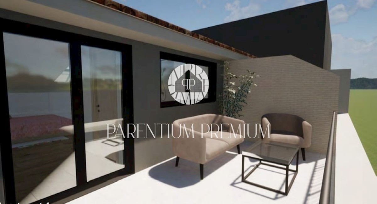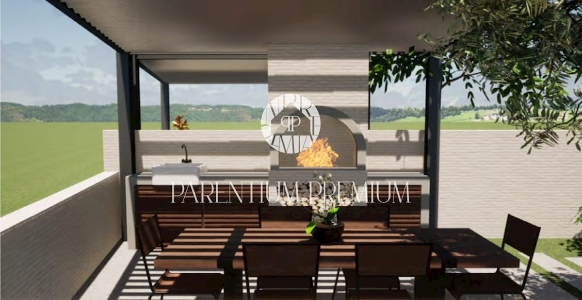 Istra, Poreč Ta nova hiša dvojček z 2 stanovanjskima enotama, vsaka s 126 m2 bivalne površine in 150 m2 dvorišča, se nahaja le 4 km od centra Poreča in 2 km od urejenih plaž. Obe hiši imata enako tlorisno razporeditev v 3 etaže. V pritličju je dnevna s