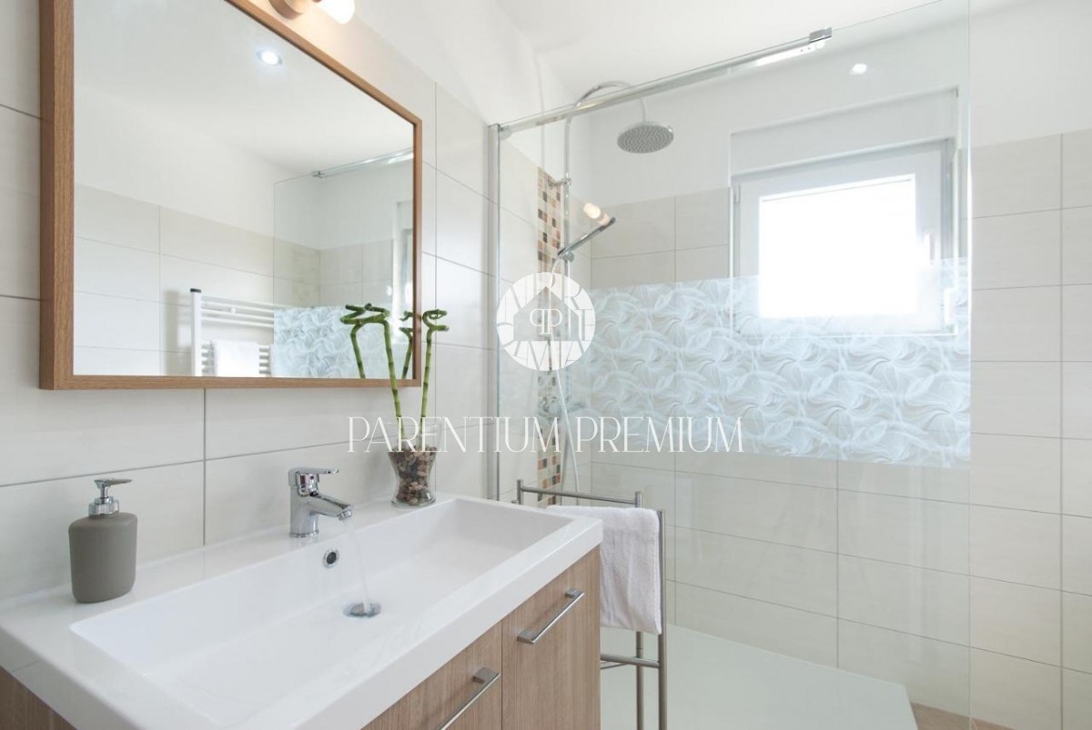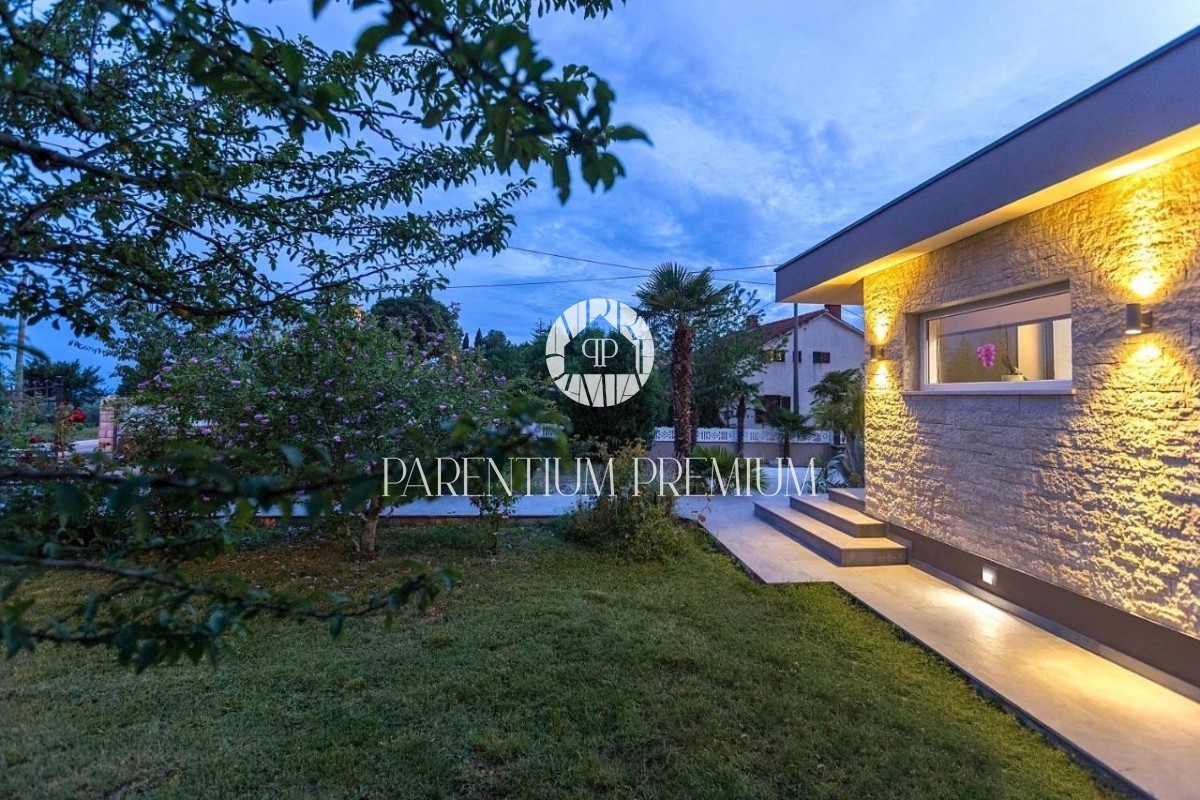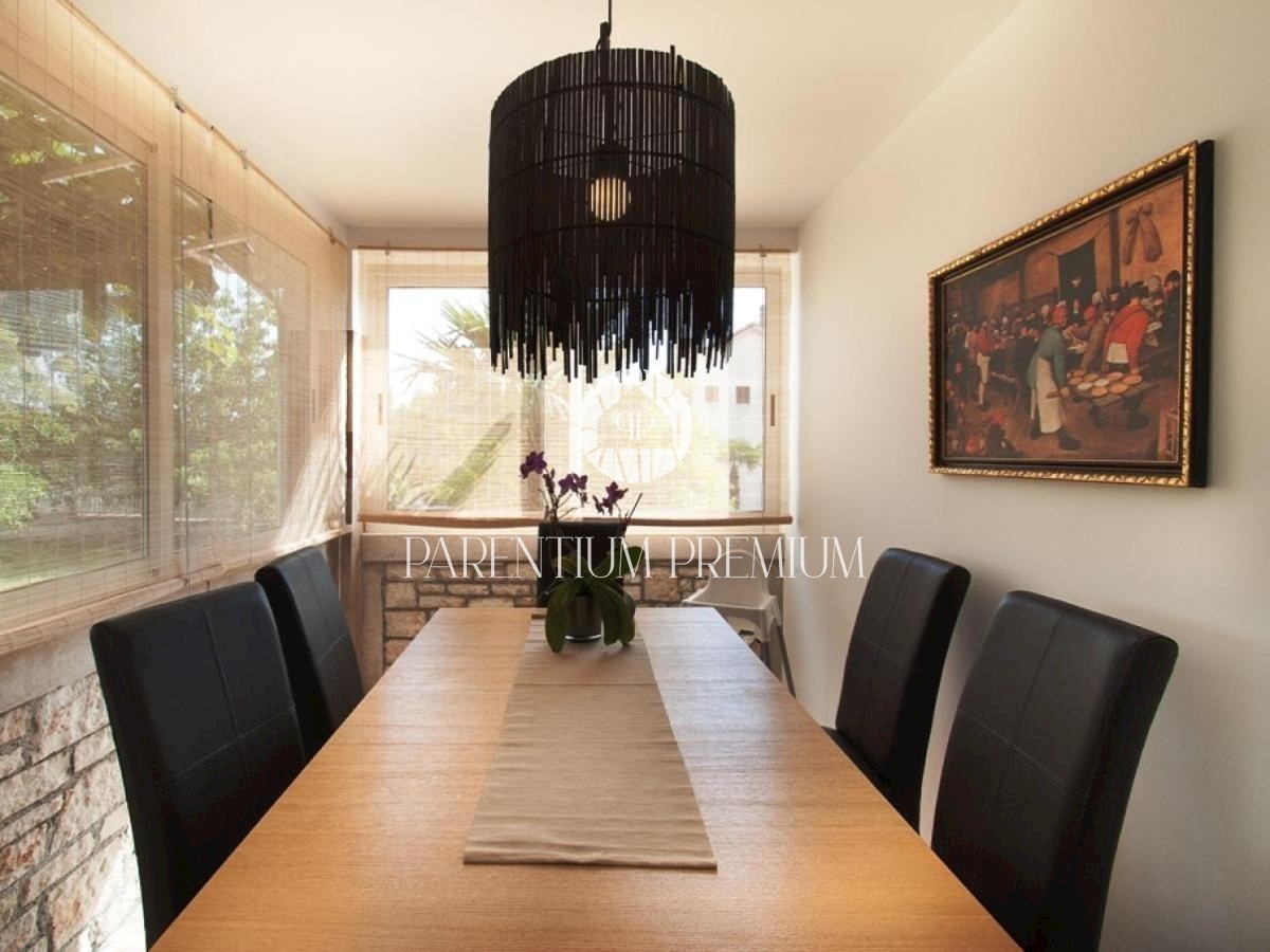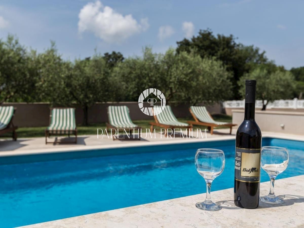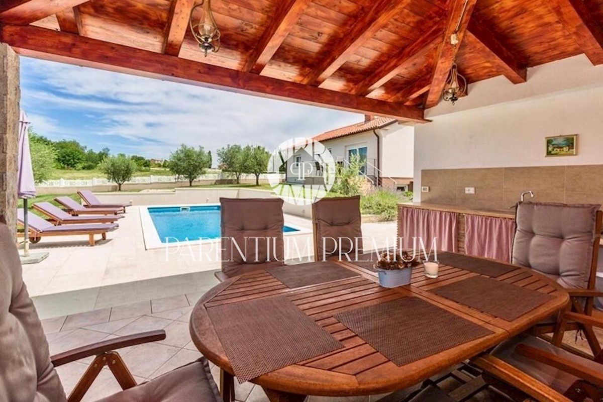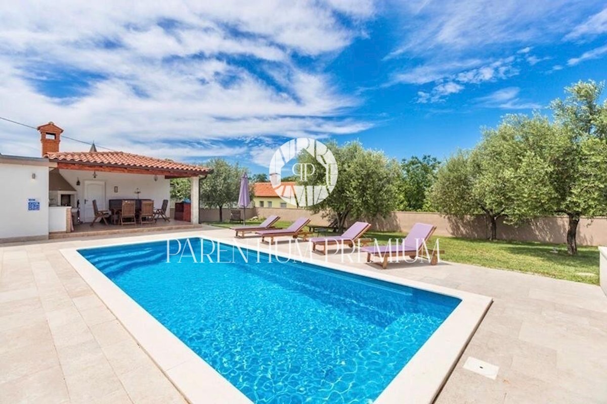 Istra, okolica Poreča Ta idilična hiša s približno 150 m2 z bazenom in čudovitim vrtom z več kot 1500 m2 se nahaja v okolici in v bližini mesta Poreč, v kraju z vsemi potrebnimi objekti za življenje. Hiša se razprostira v dveh etažah in je sestavljena i