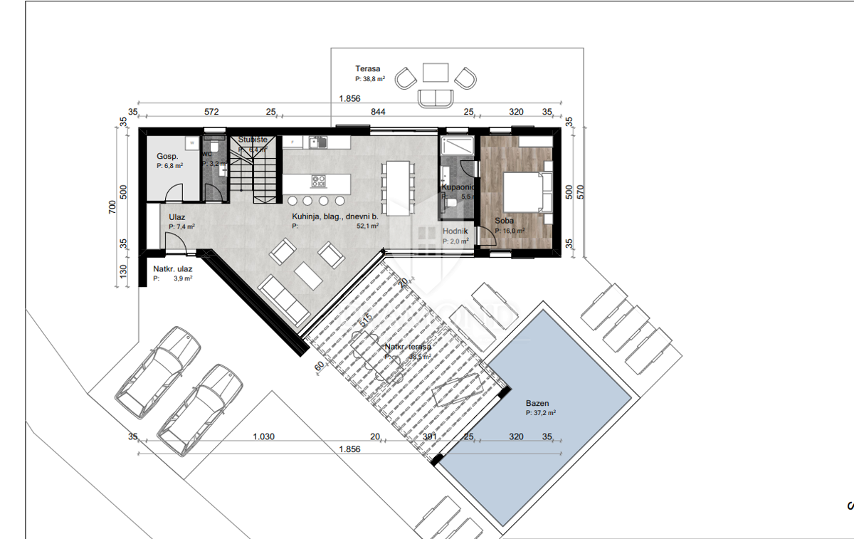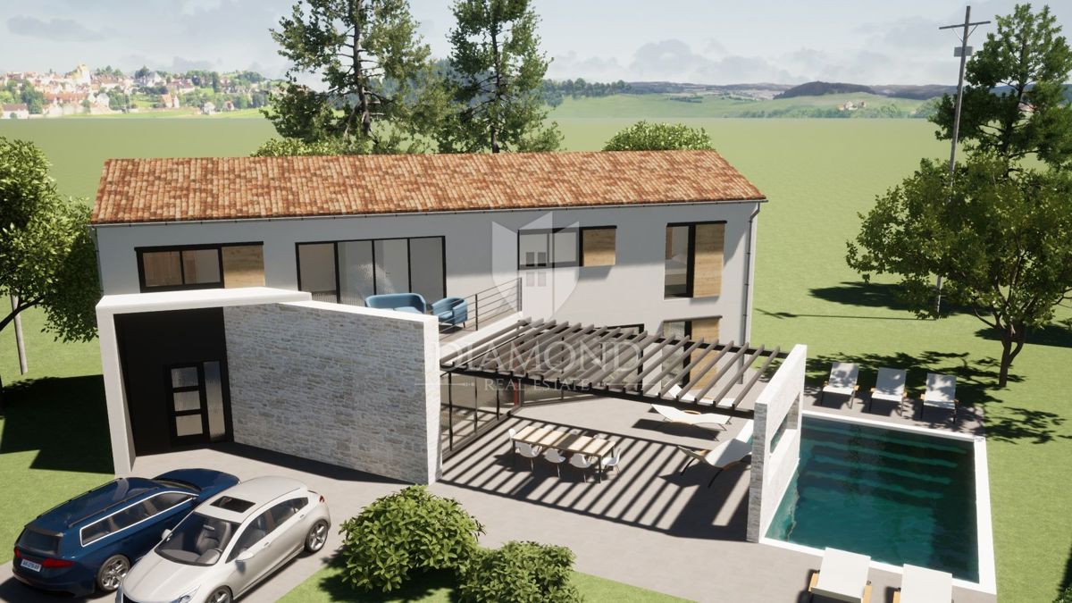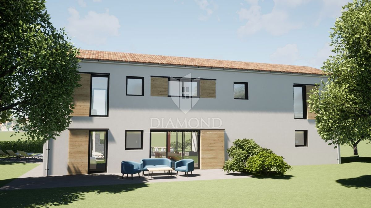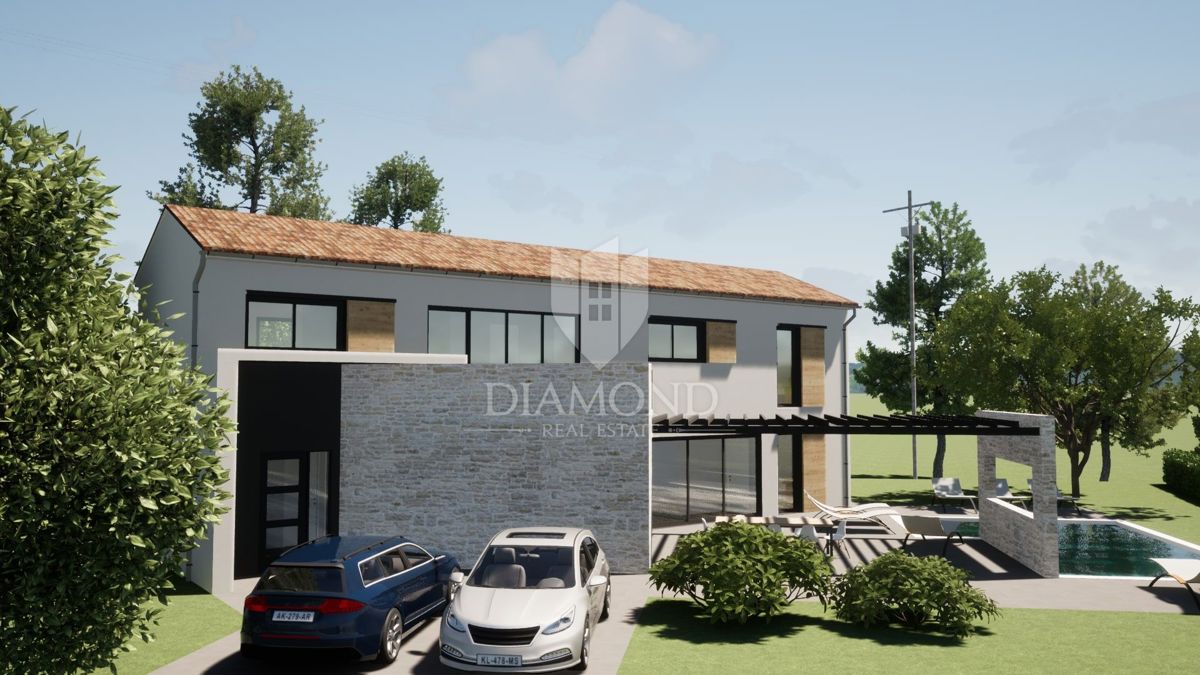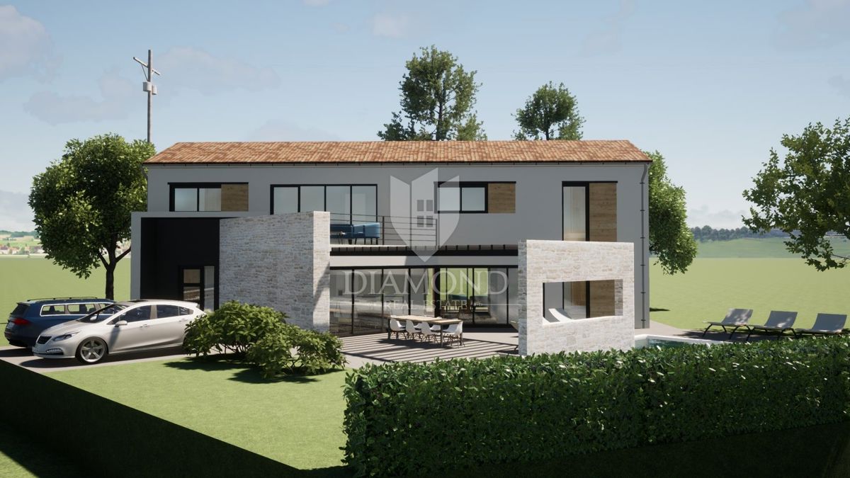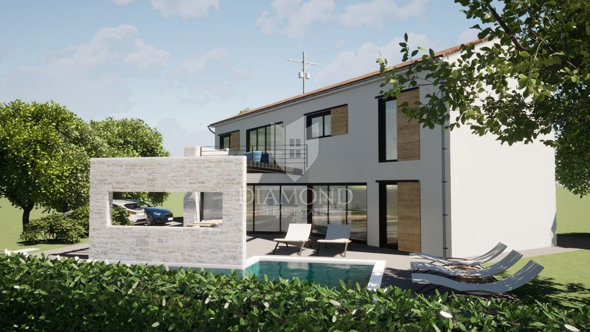 Poreč, okolica, idilična vila na mirni lokaciji! V predmestju mesta Poreč, na zemljišču velikosti 864 m2, se bo nahajala ta idilična vila z naravo. Njegova skupna izmera bo 228,80 m2. Vila se razprostira na dveh etažah. V pritličju vile gremo skozi hodn