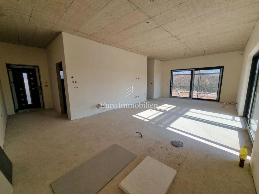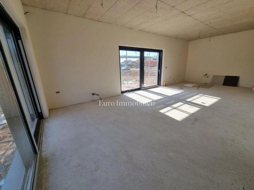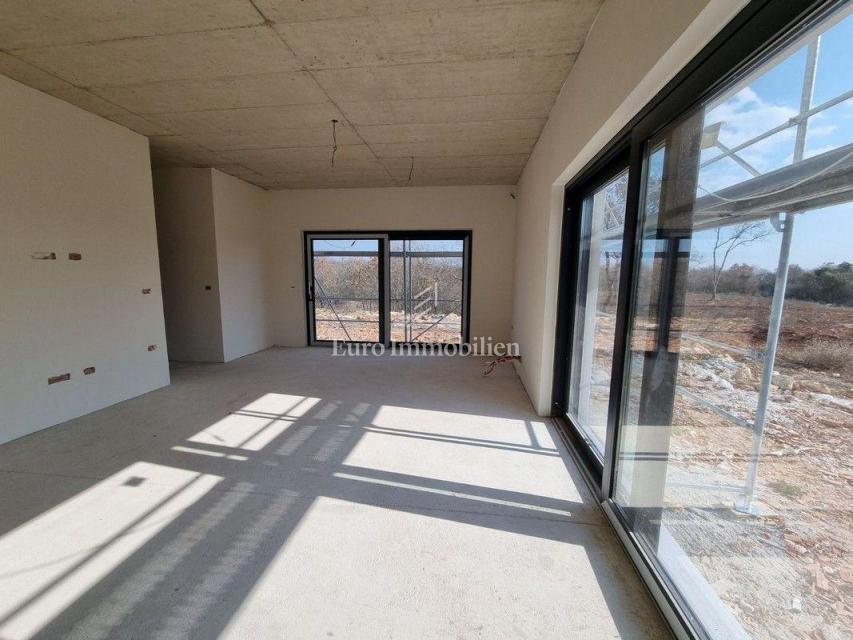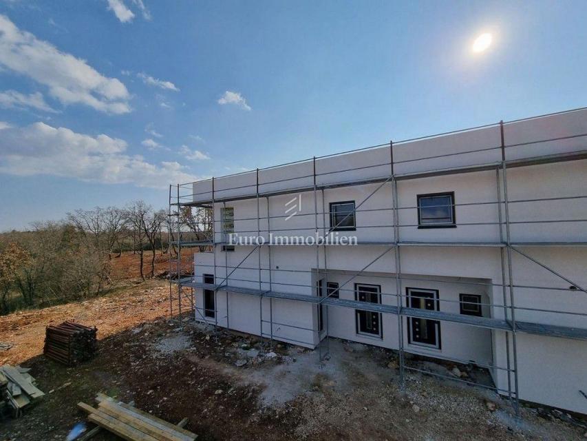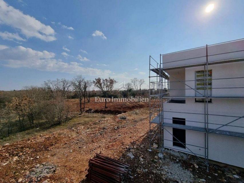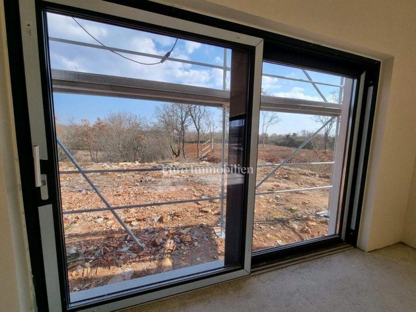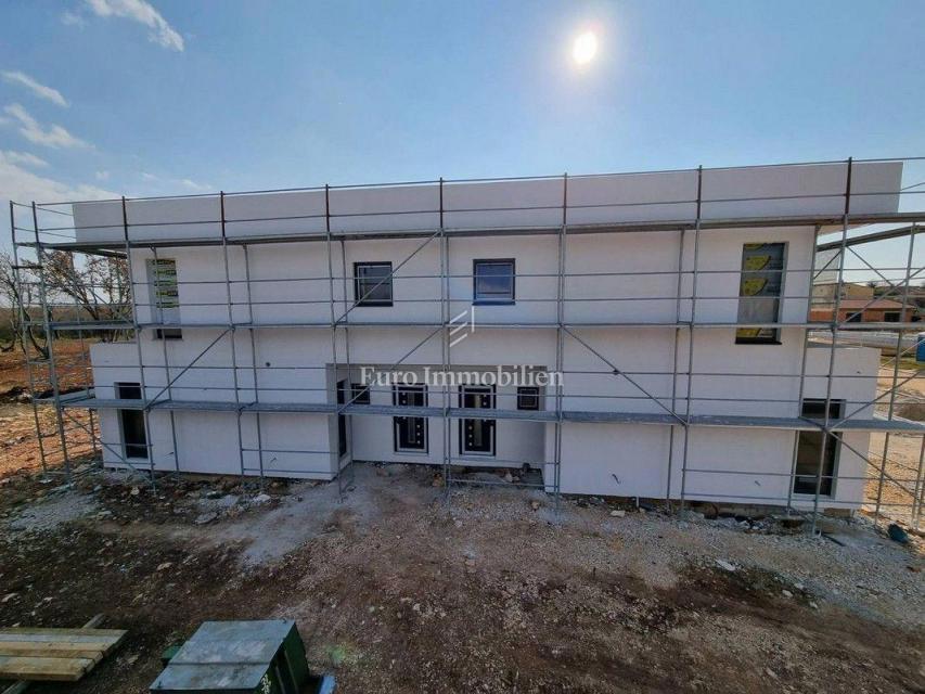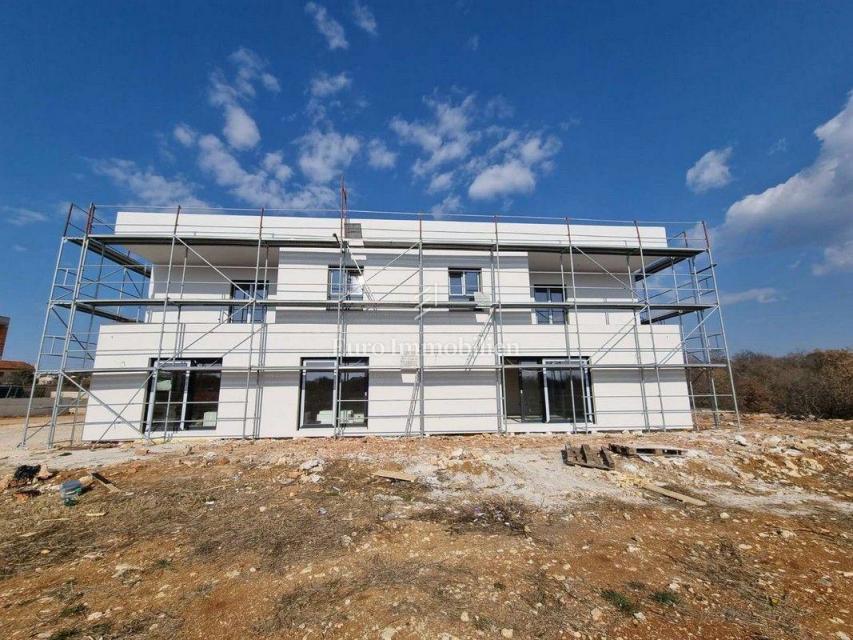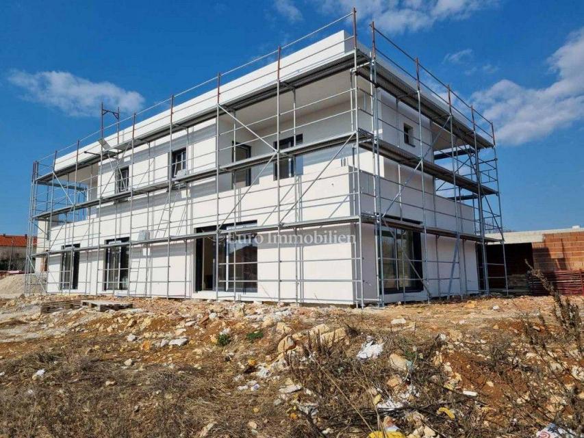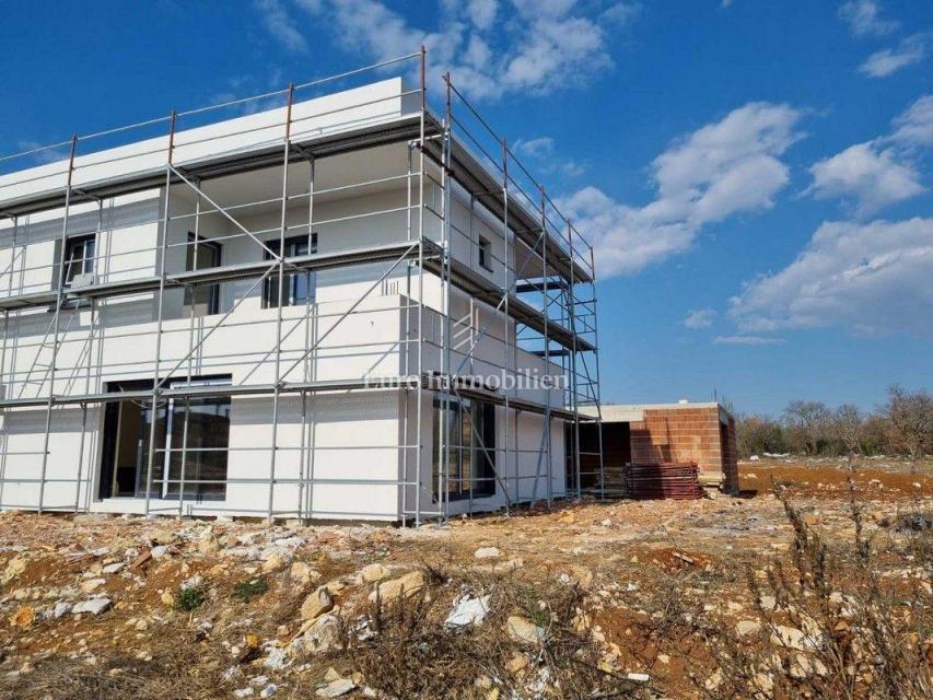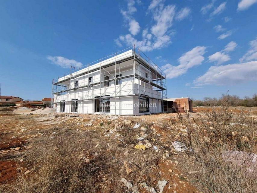 Moderna hiša dvojček v gradnji v predmestju Poreča. Nahaja se v mirnem delu naselja na robu gradbenega območja in je od morja oddaljena le 1200 m. Hiša ima 129 m2 neto kvadrature, obsega pritličje in nadstropje ter ima 277 m2 dvorišča. V pritličju je ho