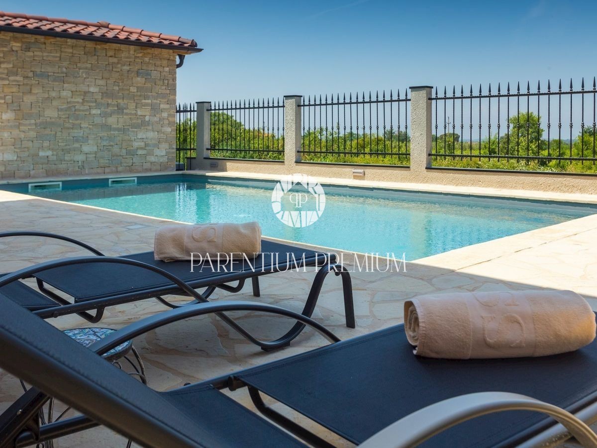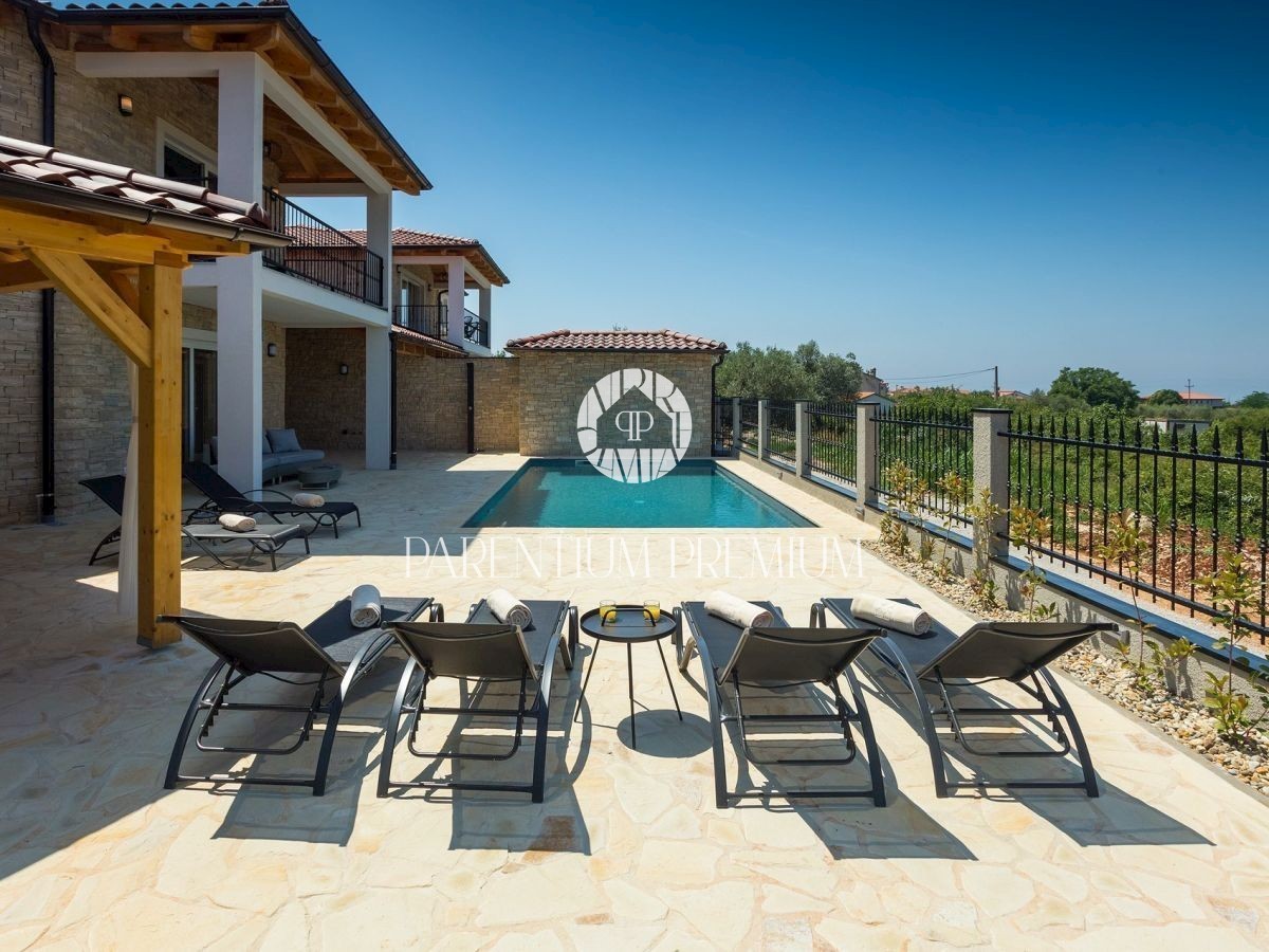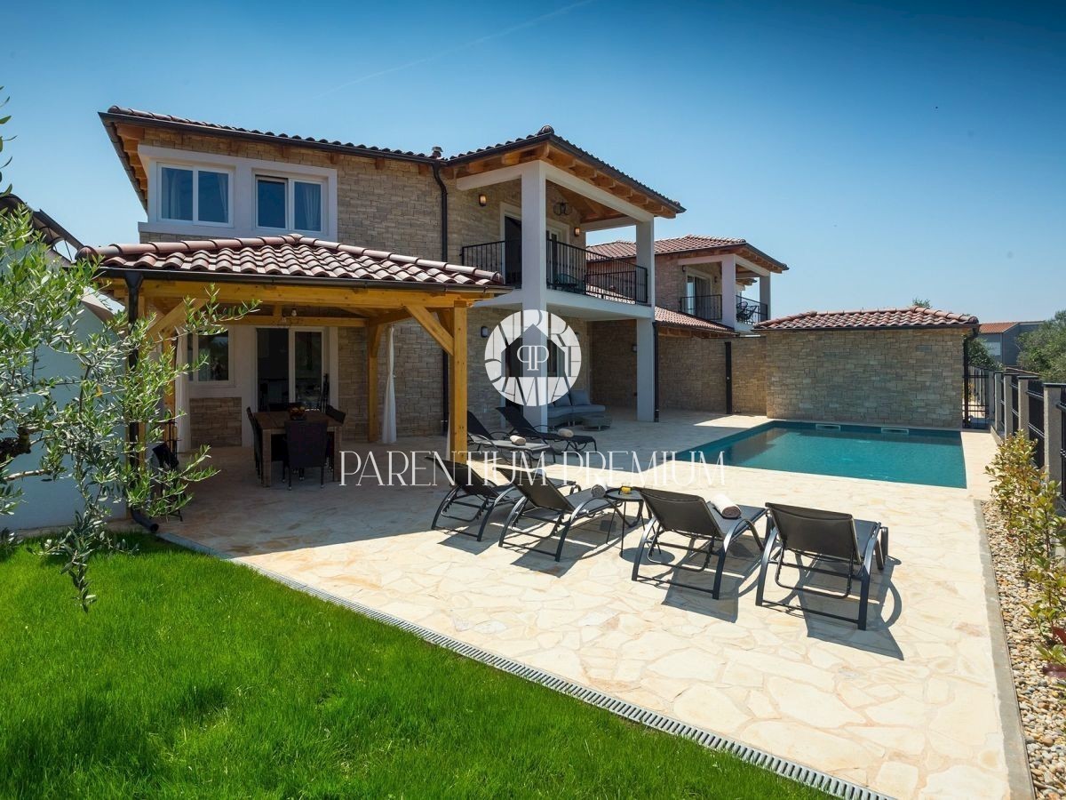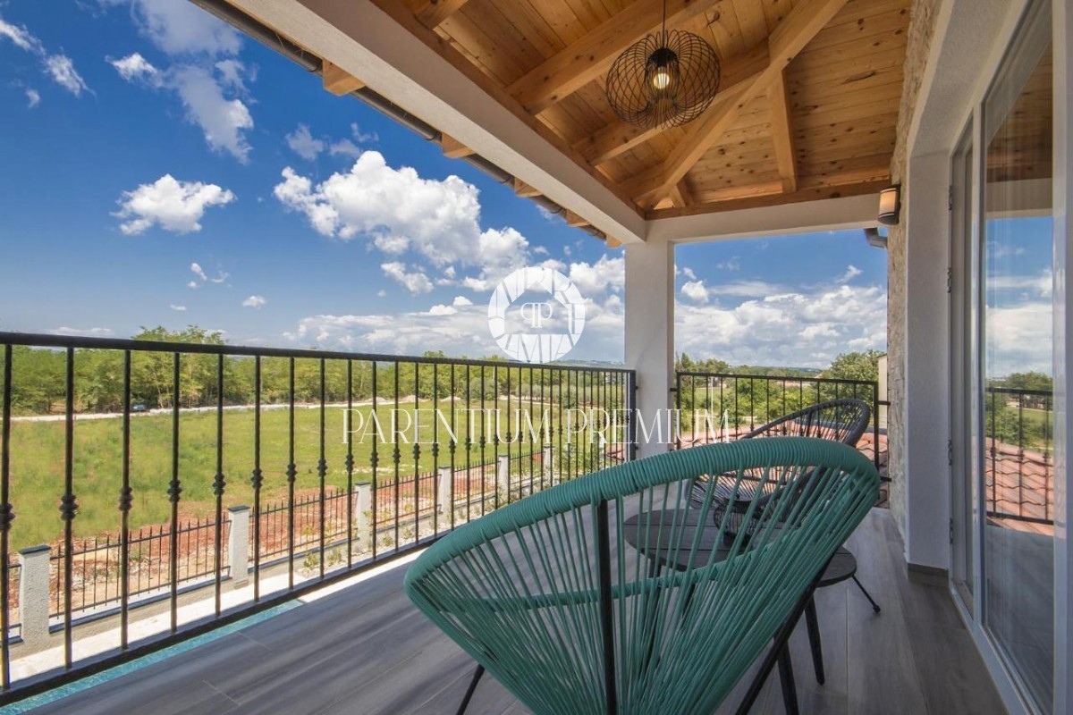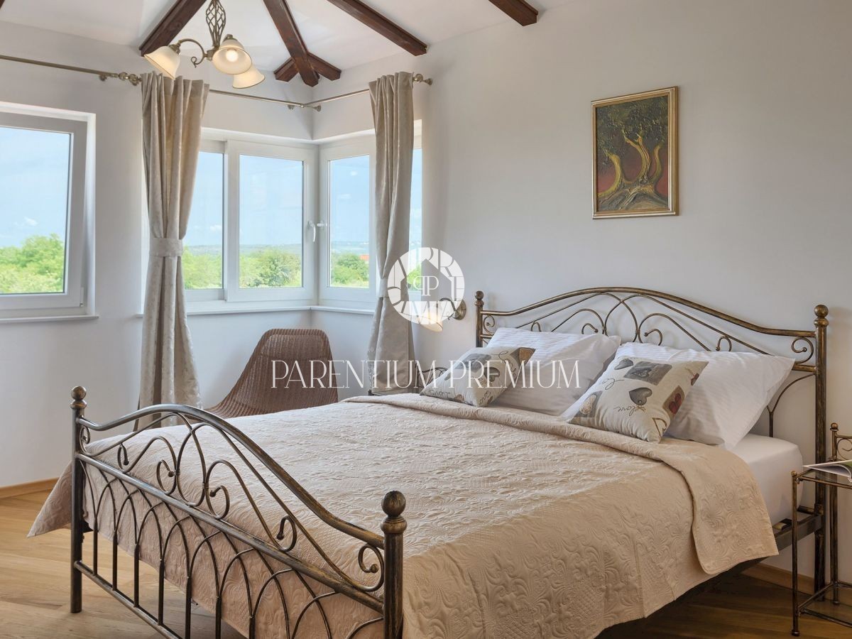 Istra, okolica Poreča V bližini Poreča se prodaja ta novozgrajena čudovita kamnita vila s čudovitim pogledom na morje in okolico. Hiša se razprostira v dveh etažah, kjer se v prvem nadstropju hiše nahaja predsoba, prostorna spalnica s kopalnico, lepa ve