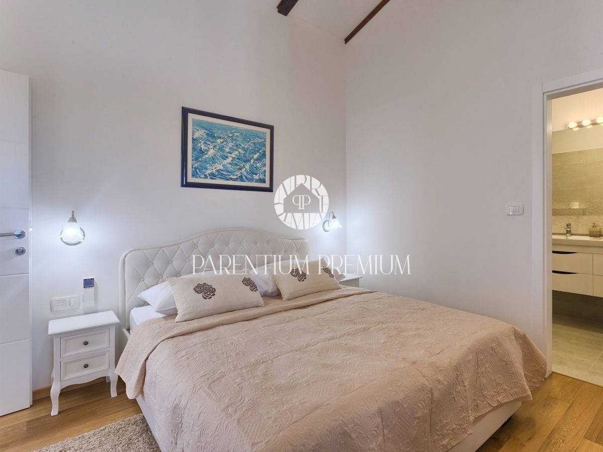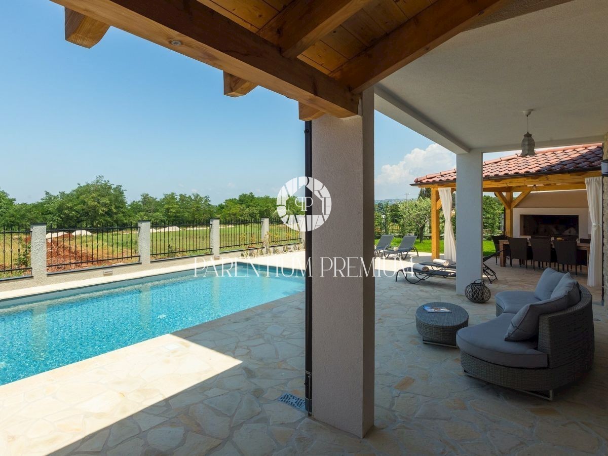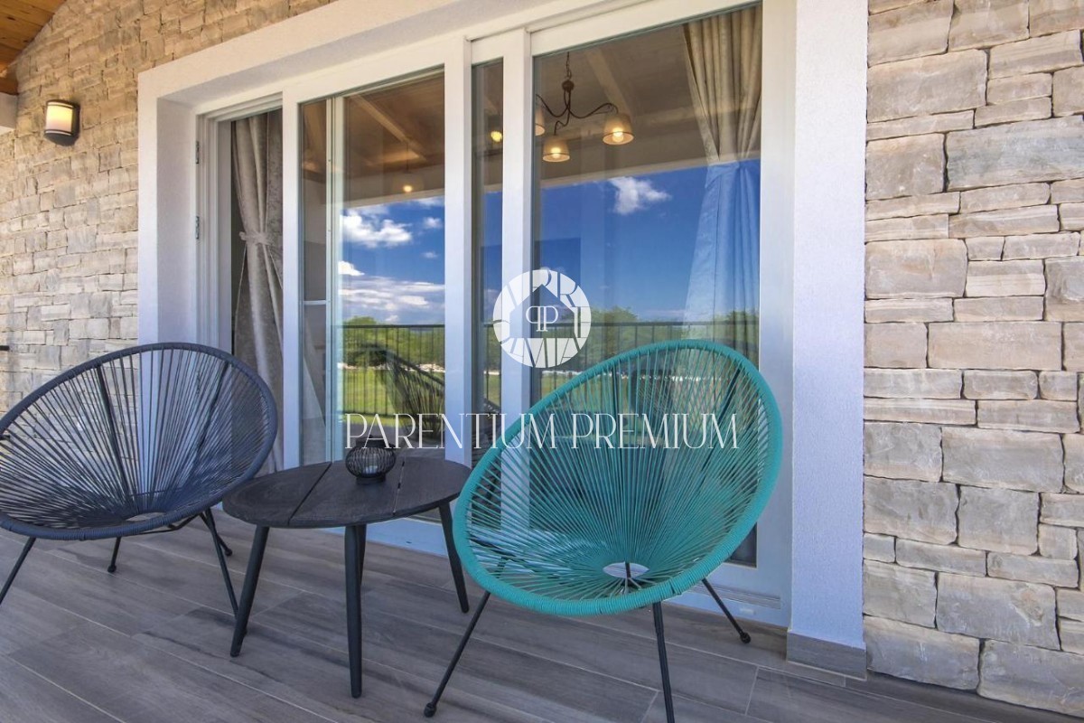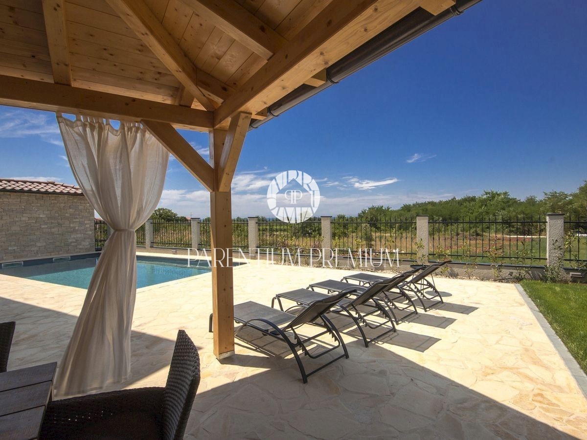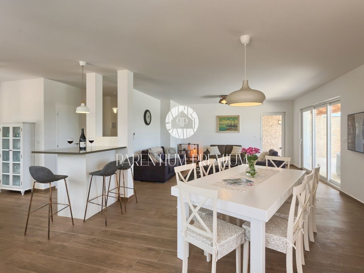 Istra, okolica Poreča V bližini Poreča se prodaja ta novozgrajena čudovita kamnita vila s čudovitim pogledom na morje in okolico. Hiša se razprostira v dveh etažah, kjer se v prvem nadstropju hiše nahaja predsoba, prostorna spalnica s kopalnico, lepa ve