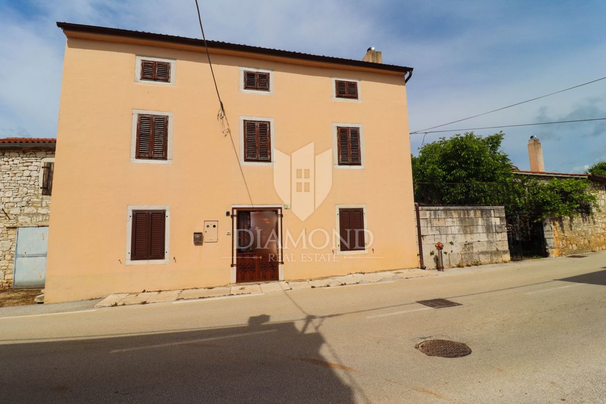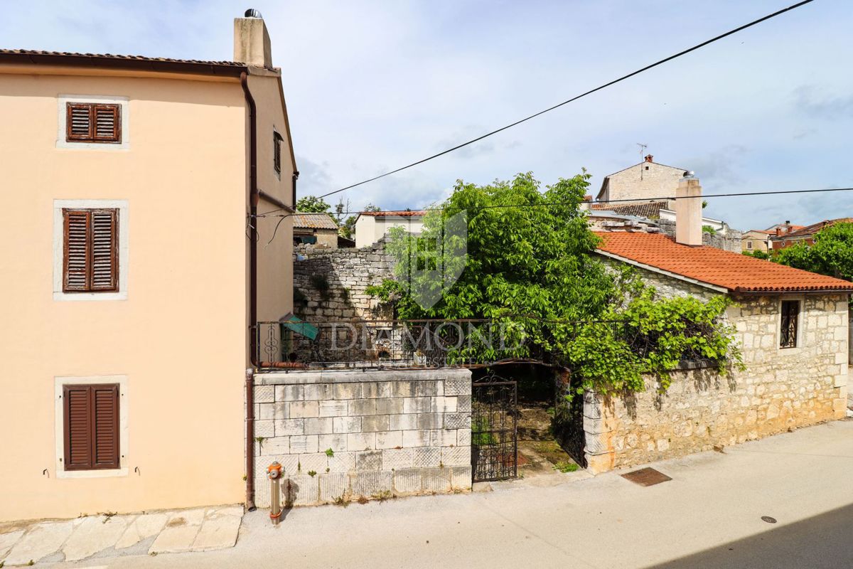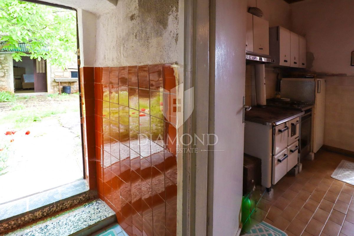 Poreč, okolica, istrska hiša z dvoriščem! Ta prostorna istrska kamnita hiša za obnovo se prodaja v predmestju mesta Poreč, le 14 km stran. Njegova skupna izmera je 180 m2, ki se razteza v treh etažah. V pritličju se nahaja dnevna soba, jedilnica in kuhi