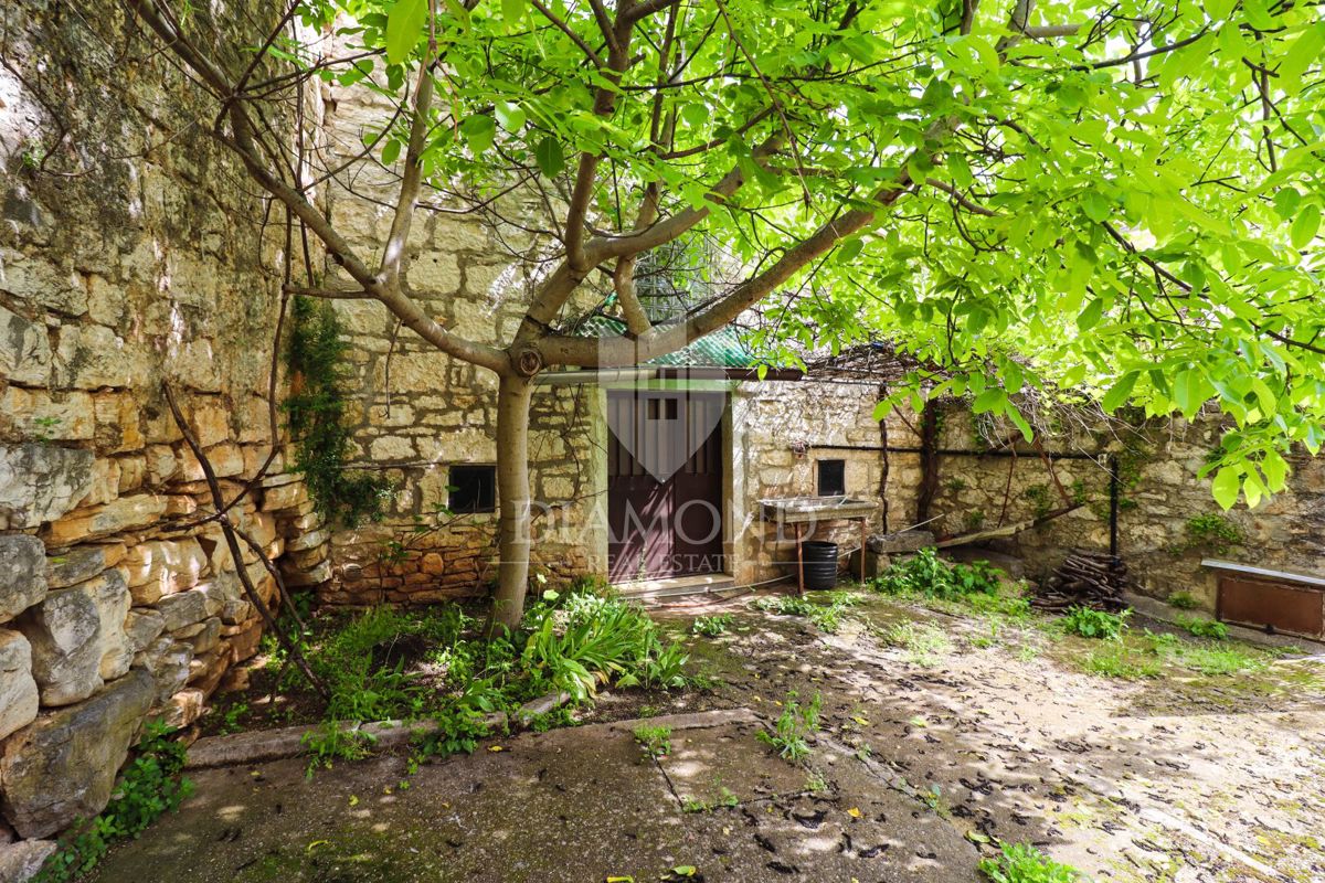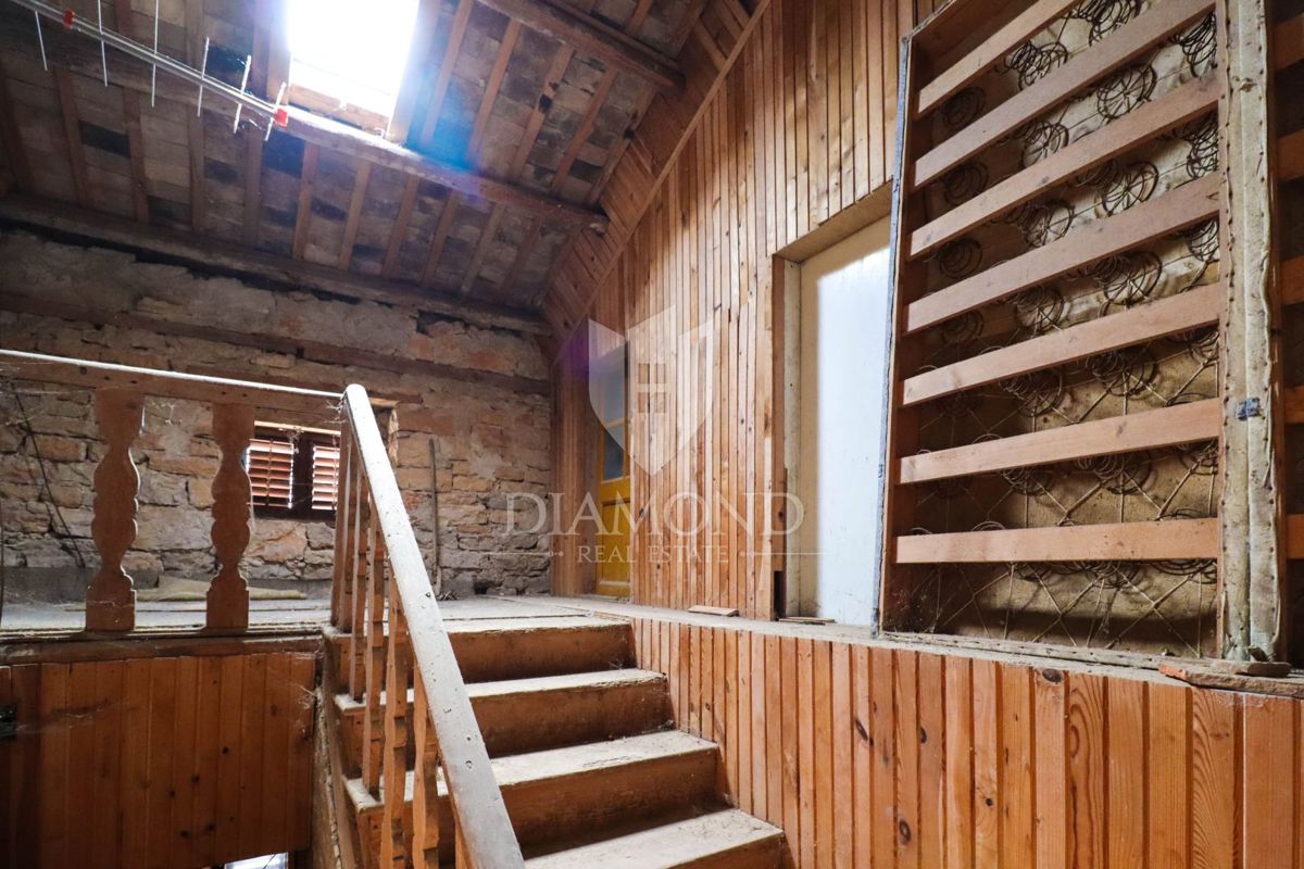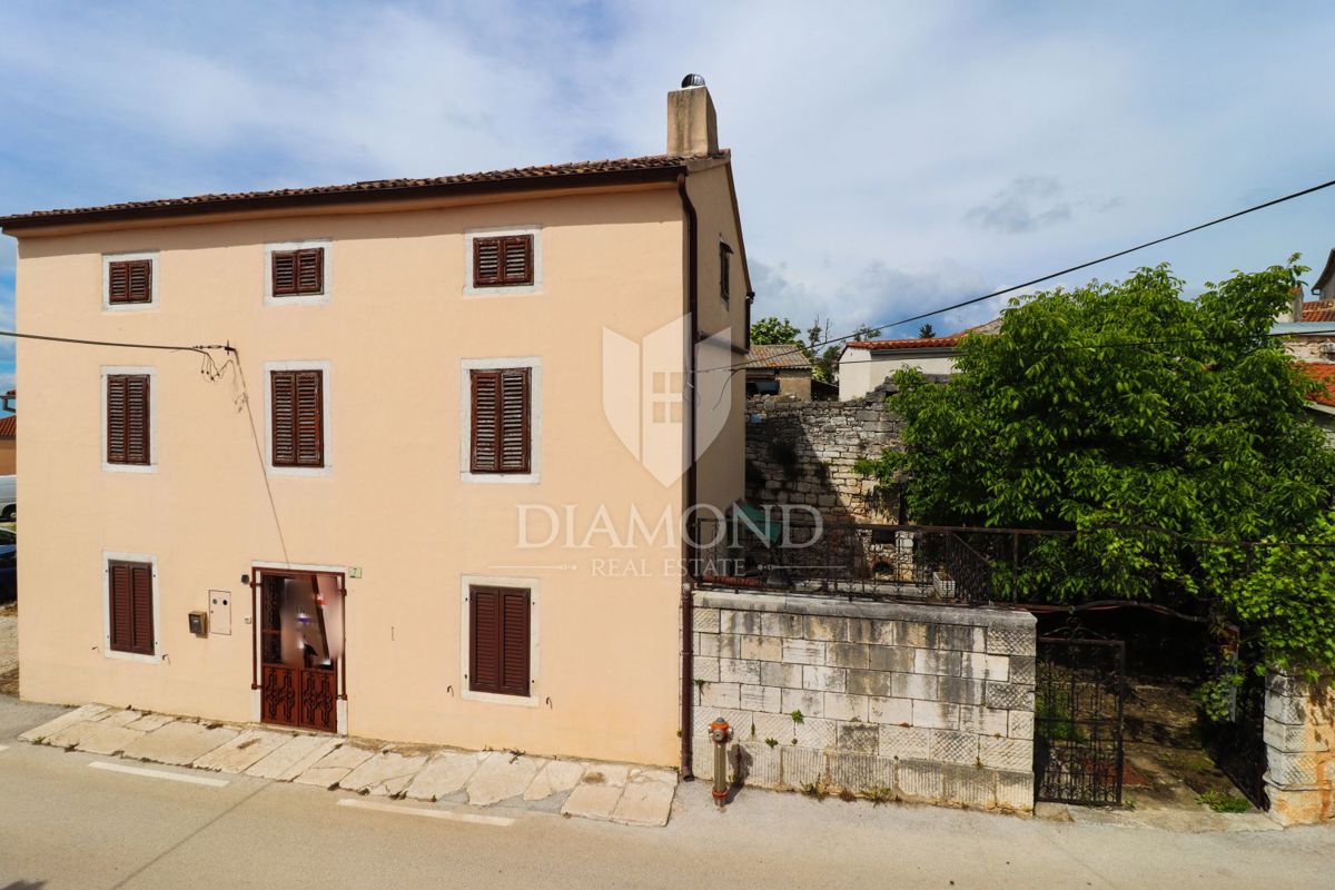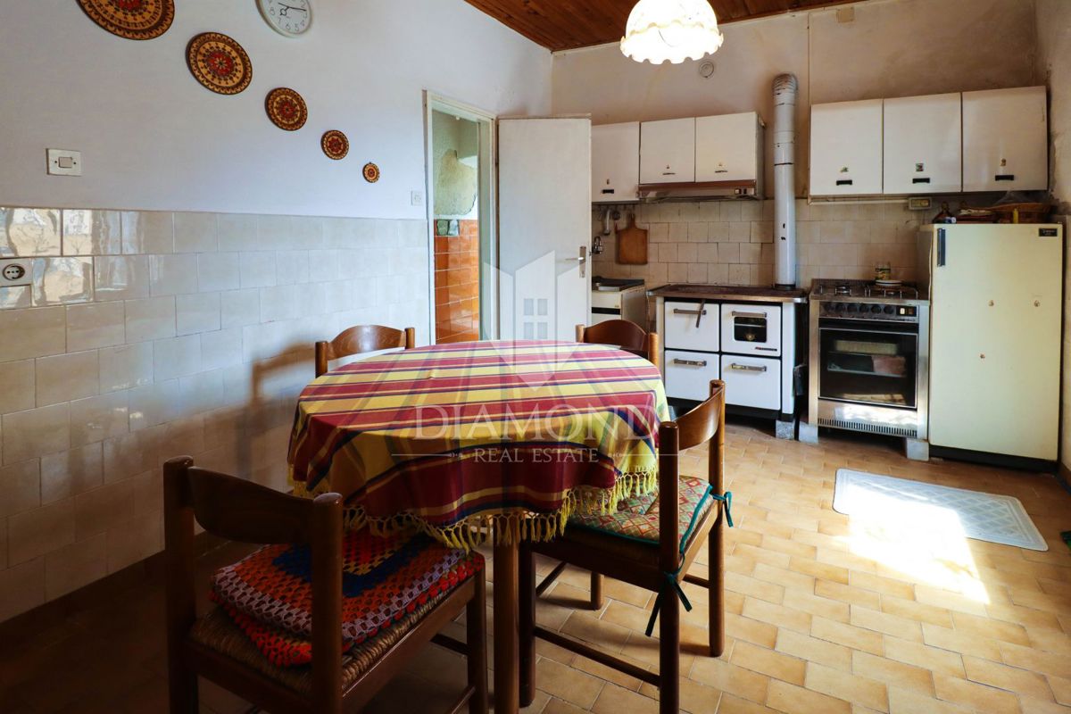 Poreč, okolica, istrska hiša z dvoriščem! Ta prostorna istrska kamnita hiša za obnovo se prodaja v predmestju mesta Poreč, le 14 km stran. Njegova skupna izmera je 180 m2, ki se razteza v treh etažah. V pritličju se nahaja dnevna soba, jedilnica in kuhi
