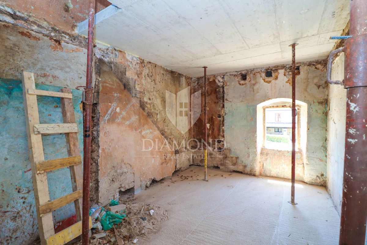 Poreč, okolica, istrska kamnita hiša s pogledom na morje! V predmestju mesta Poreč, le 10 km od prvih plaž, se prodaja istrska kamnita hiša, ki je v fazi popolne prenove. Njegova skupna izmera je 170 m2 in je sestavljena iz dveh etaž s podstrešjem. V pr