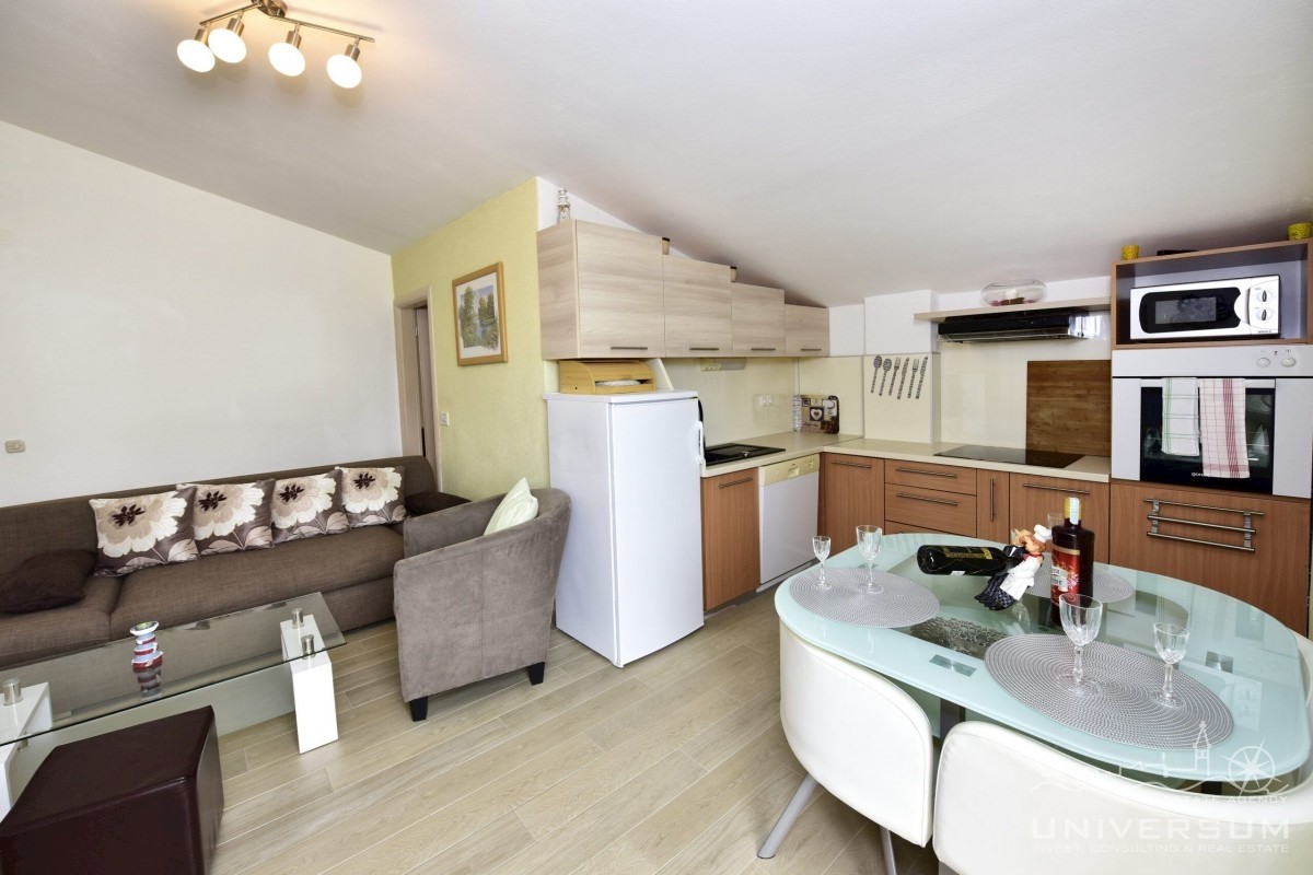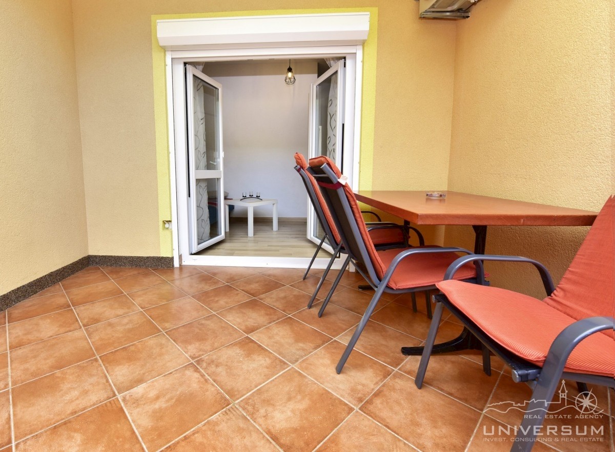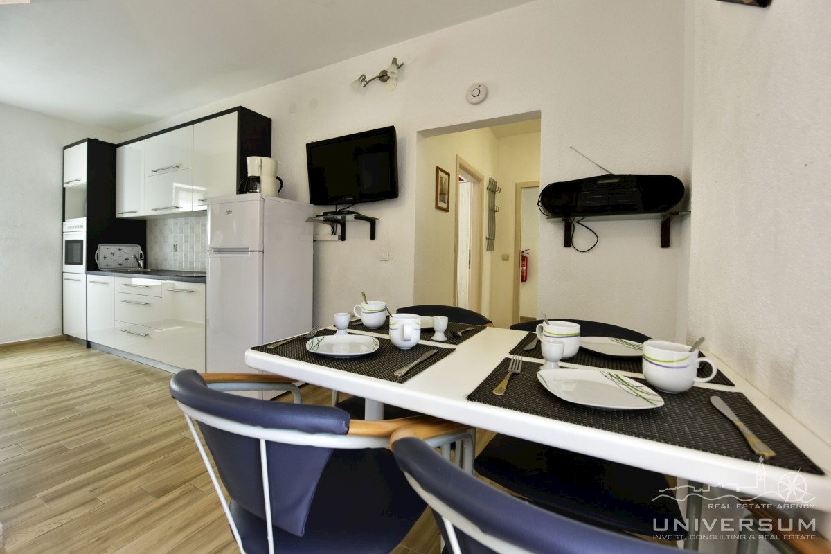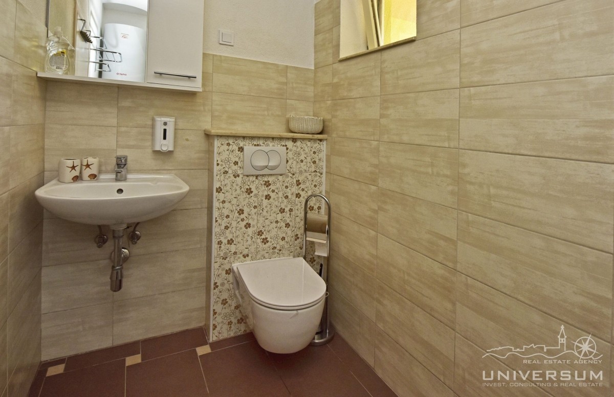V bližini Poreča se prodaja ta stanovanjska hiša s skupno petimi apartmaji. Hiša je dvoetažna: v pritličju so trije apartmaji, v prvem nadstropju pa dva apartmaja. Vsak apartma ima dve spalnici, kopalnico, kuhinjo z jedilnico in dnevno sobo z izhodom na t