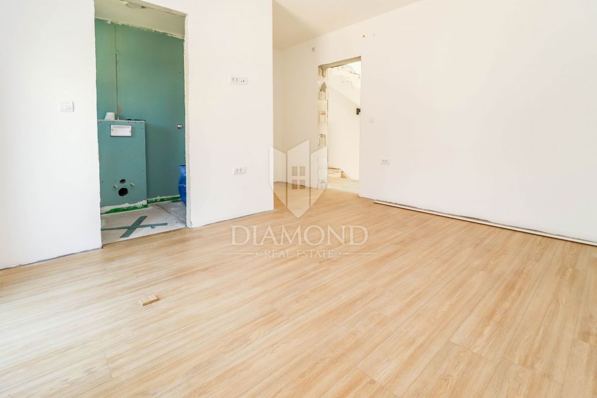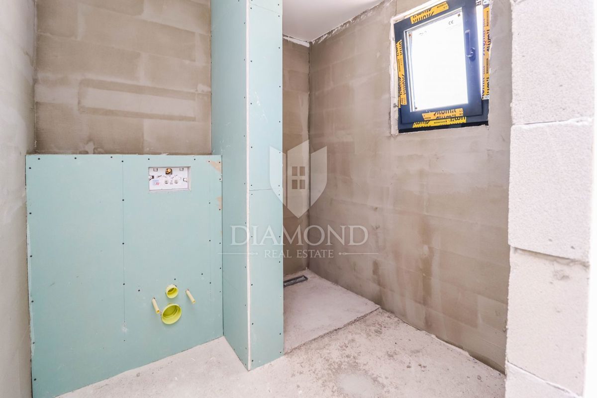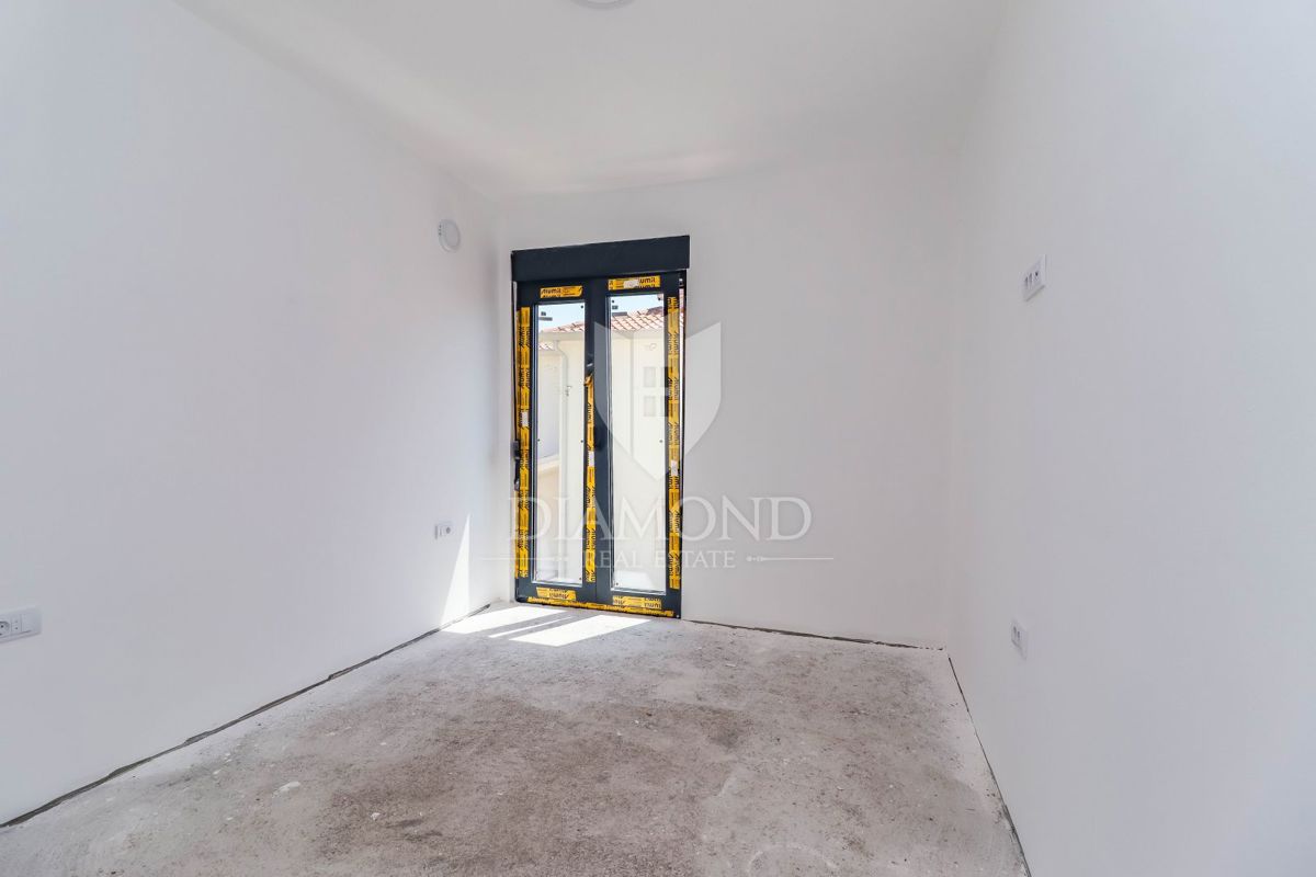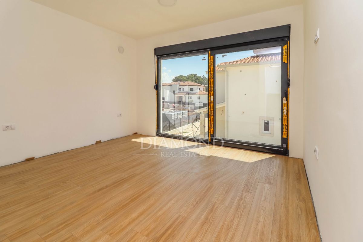 Poreč, odličen duplex po sistemu pametne hiše! Ta luksuzna in moderna hiša dvojček z vrtom je naprodaj na mirni lokaciji 1 km od mesta Poreč in morja. Hiša se razprostira v treh etažah in meri 187,93 m2. Pritličje hiše obsega predsobo, wc, spalnico, k