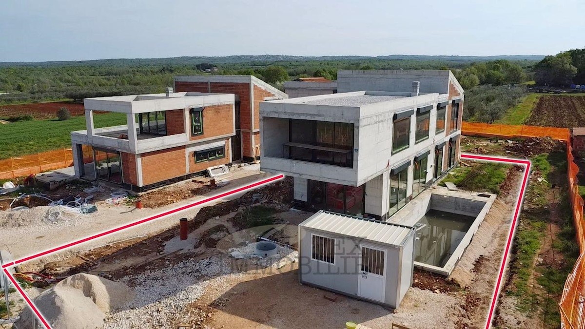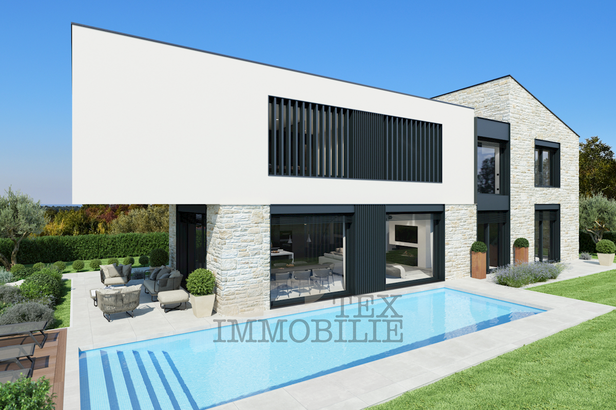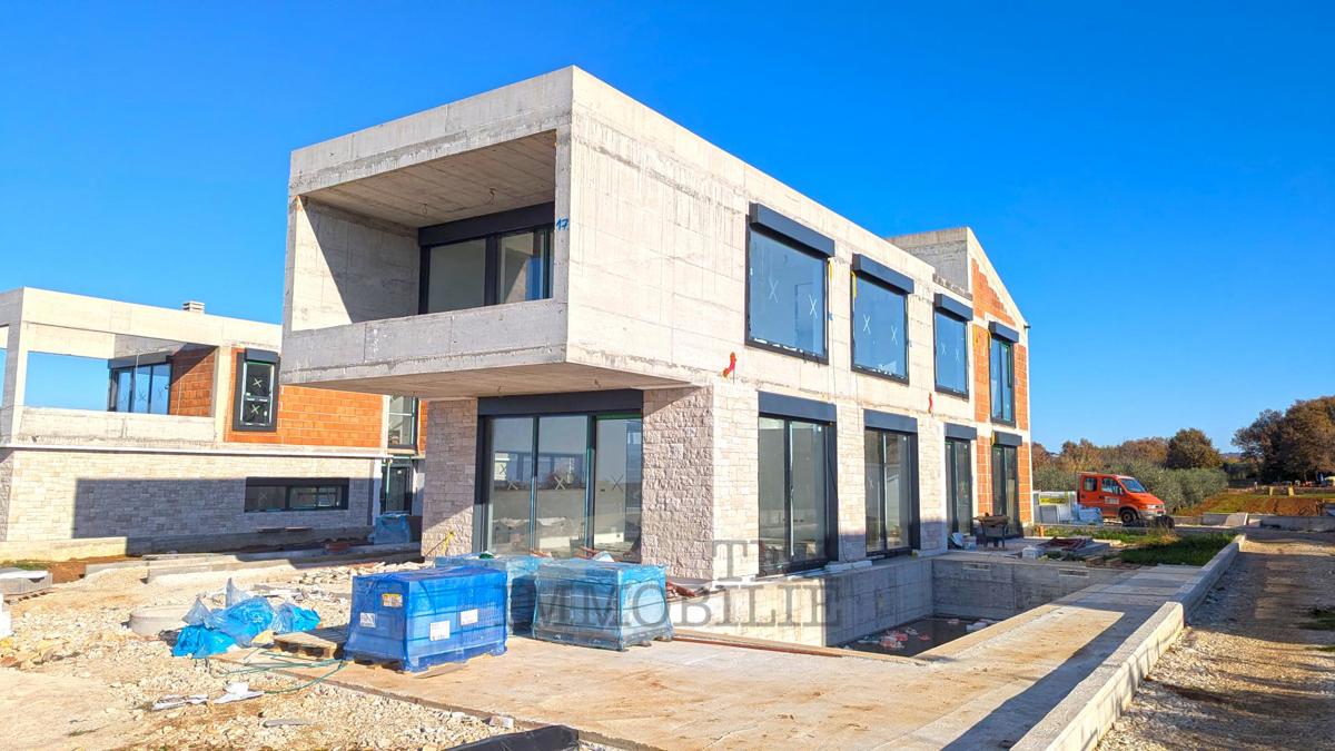 Razkošna vila v gradnji na vrhunski lokaciji, le 5 km od Poreča. Ta očarljiva moderna hiša ima prostorne bivalne prostore, visoke strope in osupljive razglede na morje in neokrnjeno naravo. Pritličje ponuja odprt in svetel prostor, ki povezuje dnevno sobo
