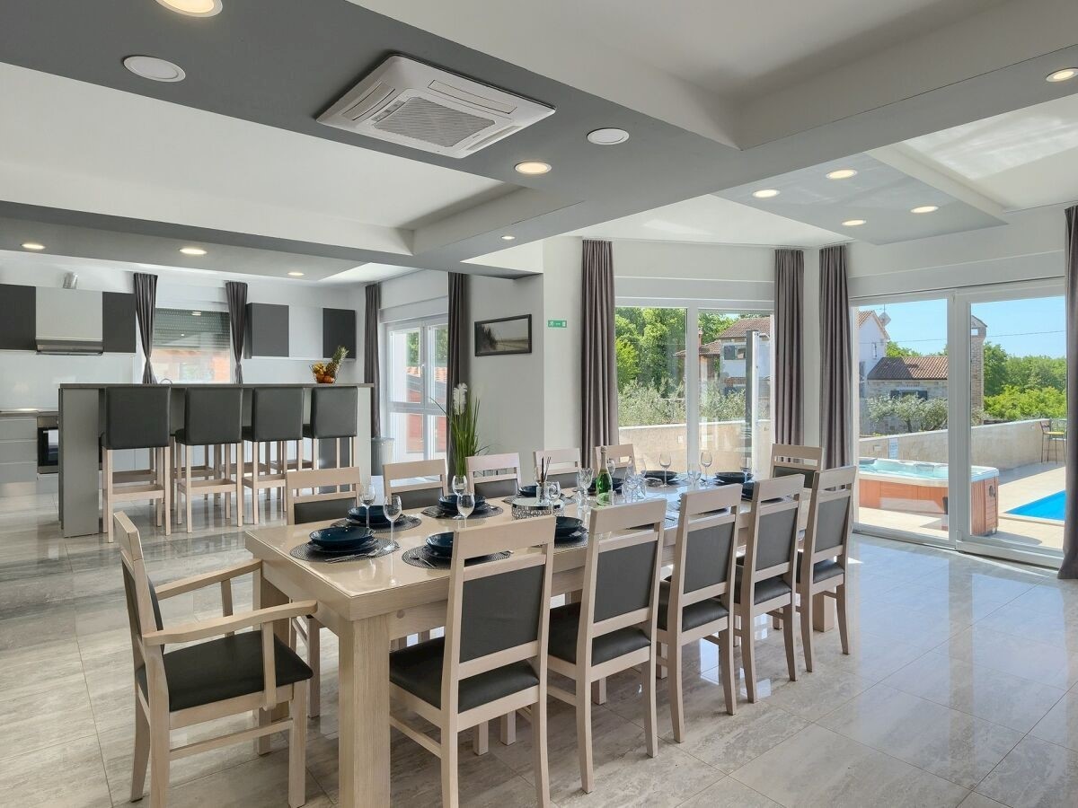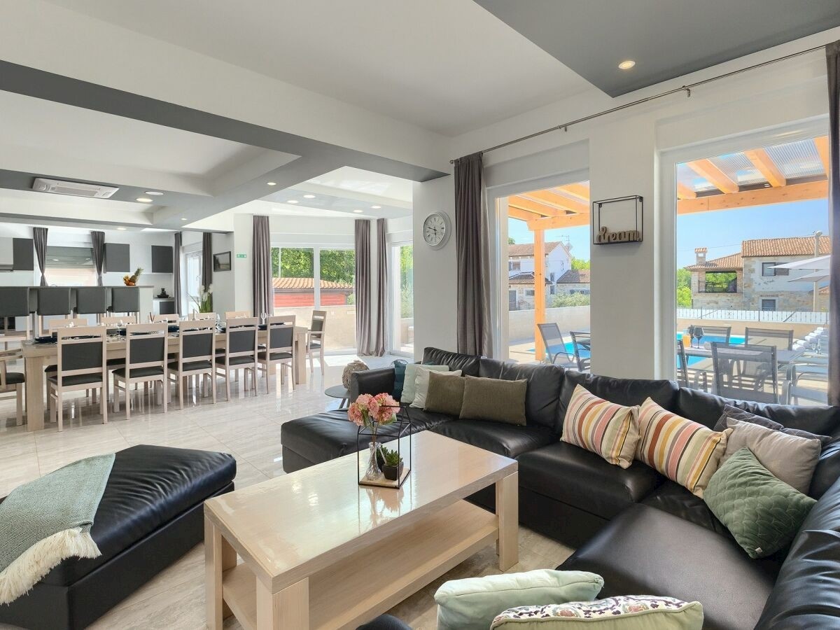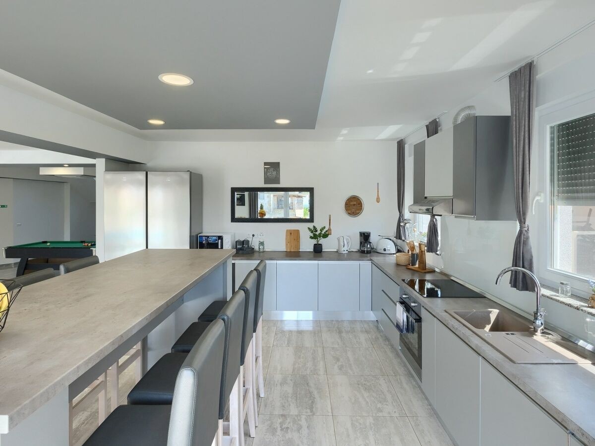 Čudovita vila očara s svojim brezčasnim dizajnom in visoko stopnjo udobja. Vila 420 m2 se nahaja na zemljišču 1000 m2 in je sestavljena iz petih spalnic, dnevne sobe, kuhinje z jedilnico in sobe za zabavo.V pritličju se nahaja elegantno urejena dnevna sob