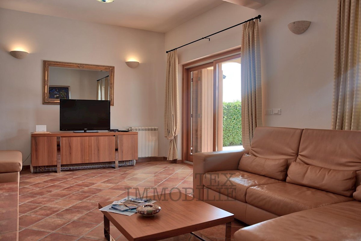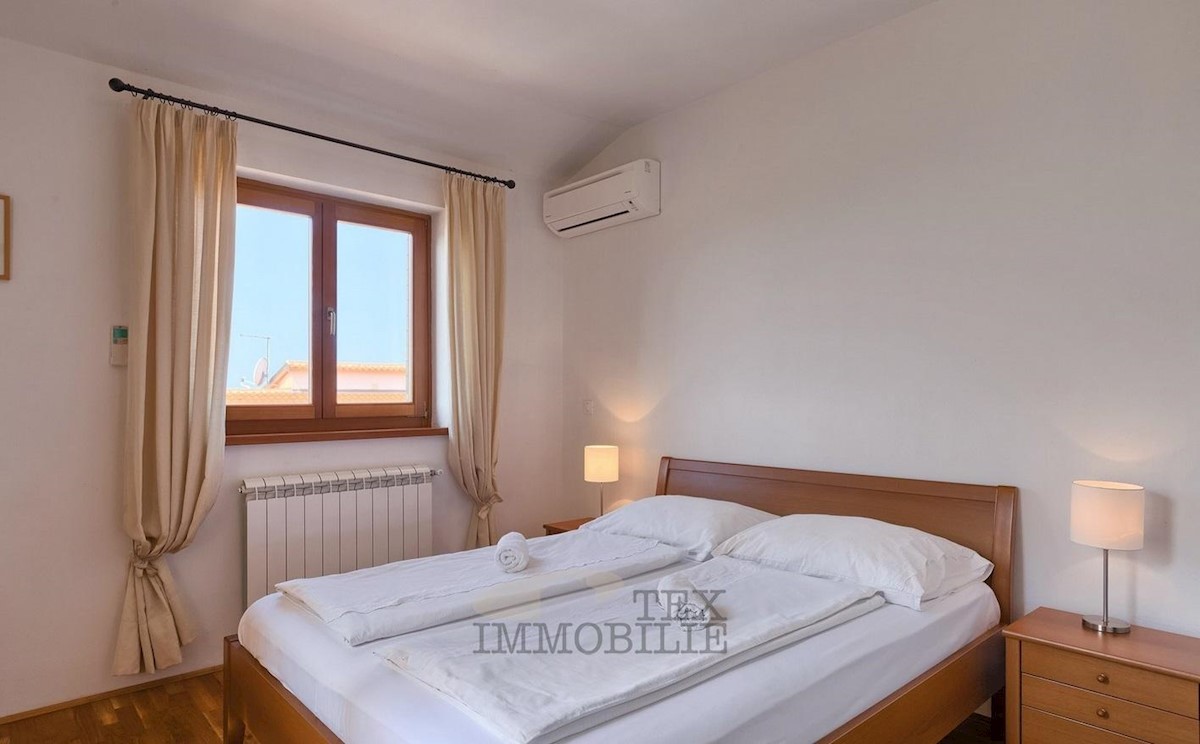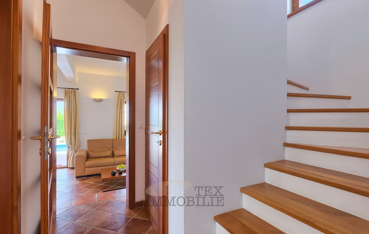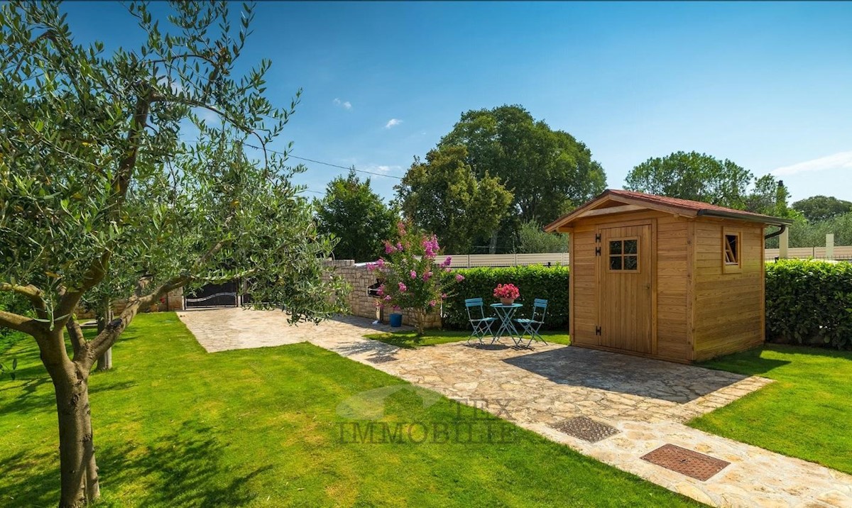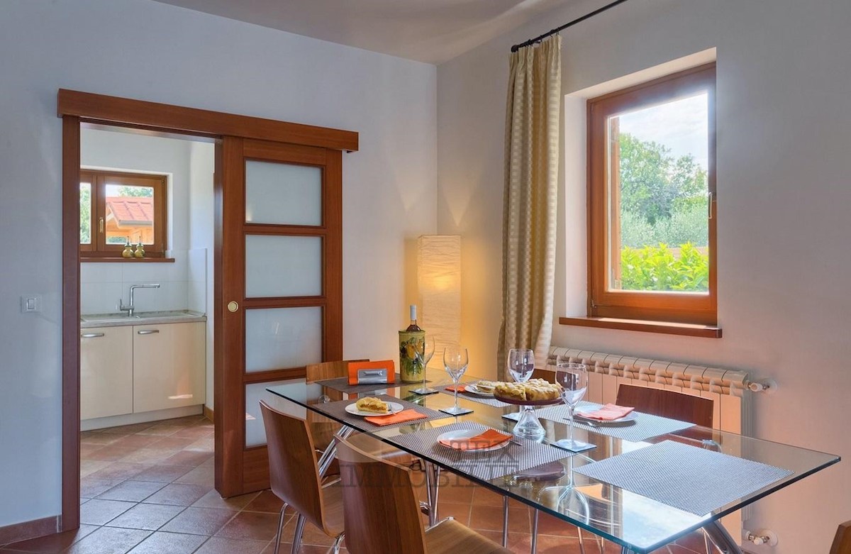 Ta lepa samostojna družinska hiša se nahaja v idilični lokaciji blizu Poreča, le 7 km od obale Jadranskega morja in mestnega jedra. Hiša ima prostorno dnevno sobo, ki se odpira na pokrito teraso in bazen, jedilnico ter popolnoma opremljeno kuhinjo, kopaln