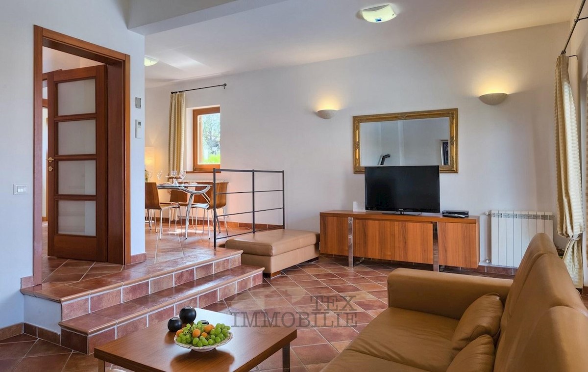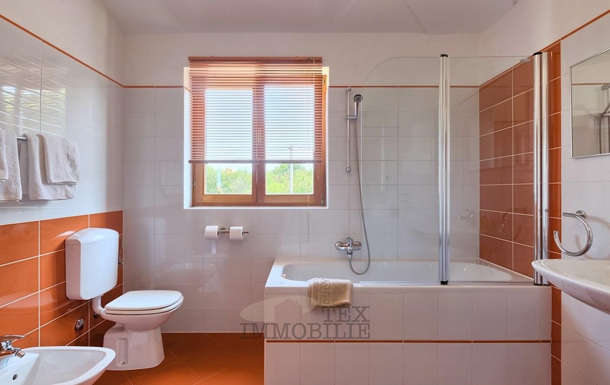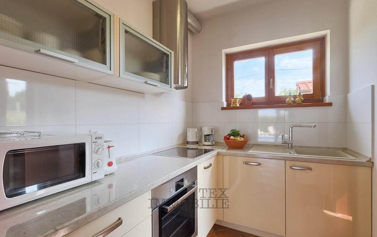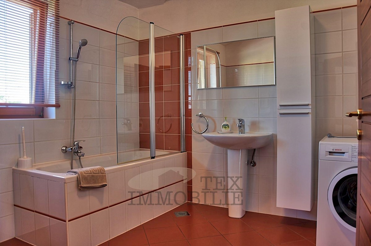 Ta lepa samostojna družinska hiša se nahaja v idilični lokaciji blizu Poreča, le 7 km od obale Jadranskega morja in mestnega jedra. Hiša ima prostorno dnevno sobo, ki se odpira na pokrito teraso in bazen, jedilnico ter popolnoma opremljeno kuhinjo, kopaln