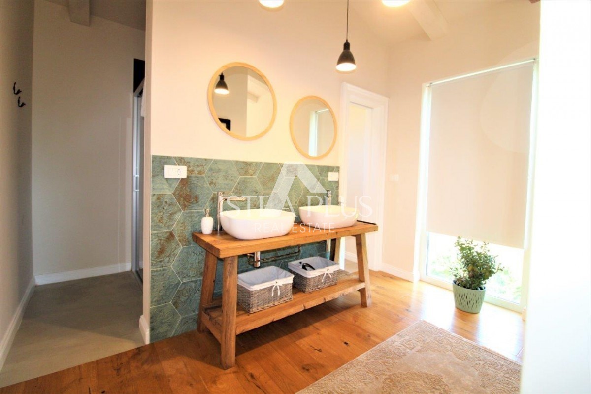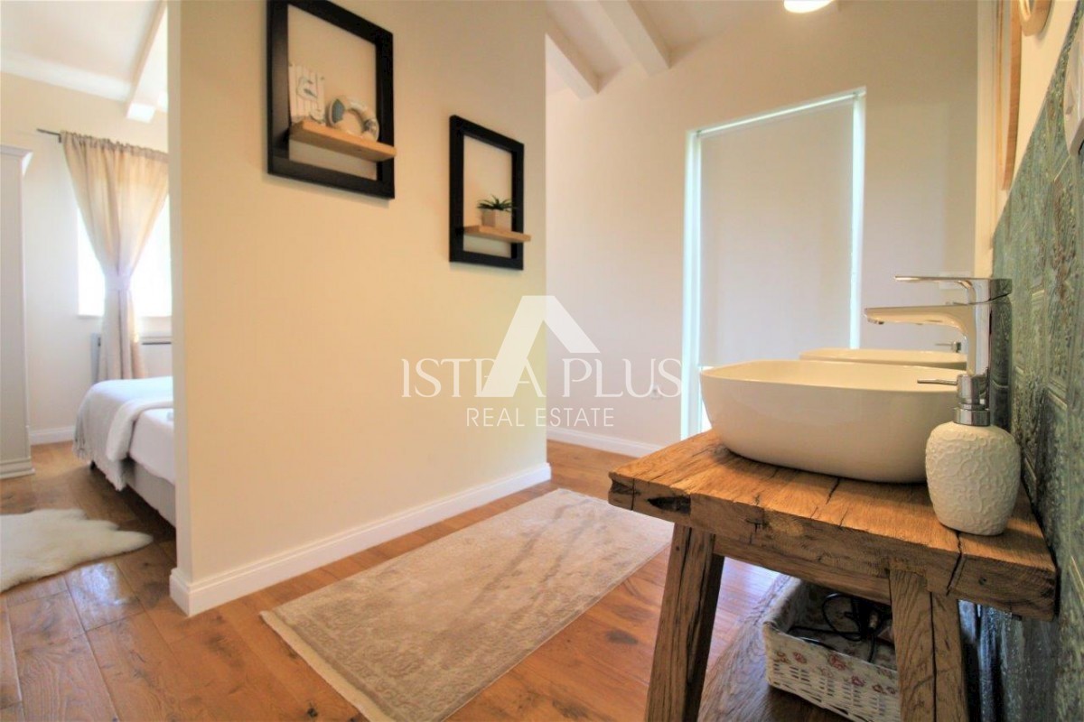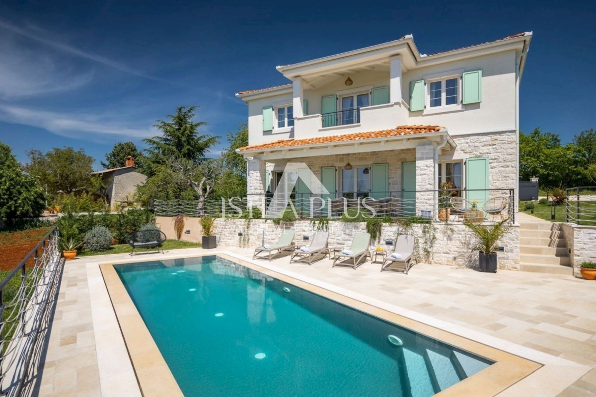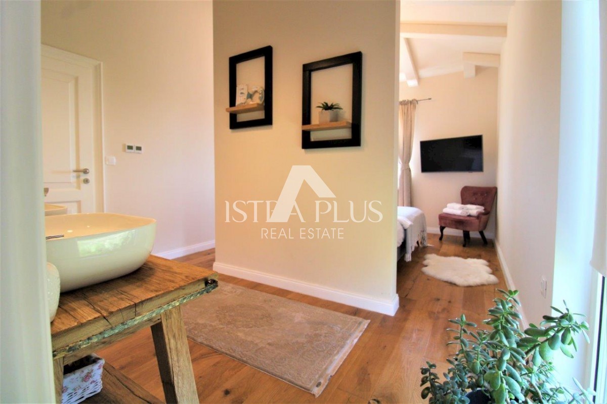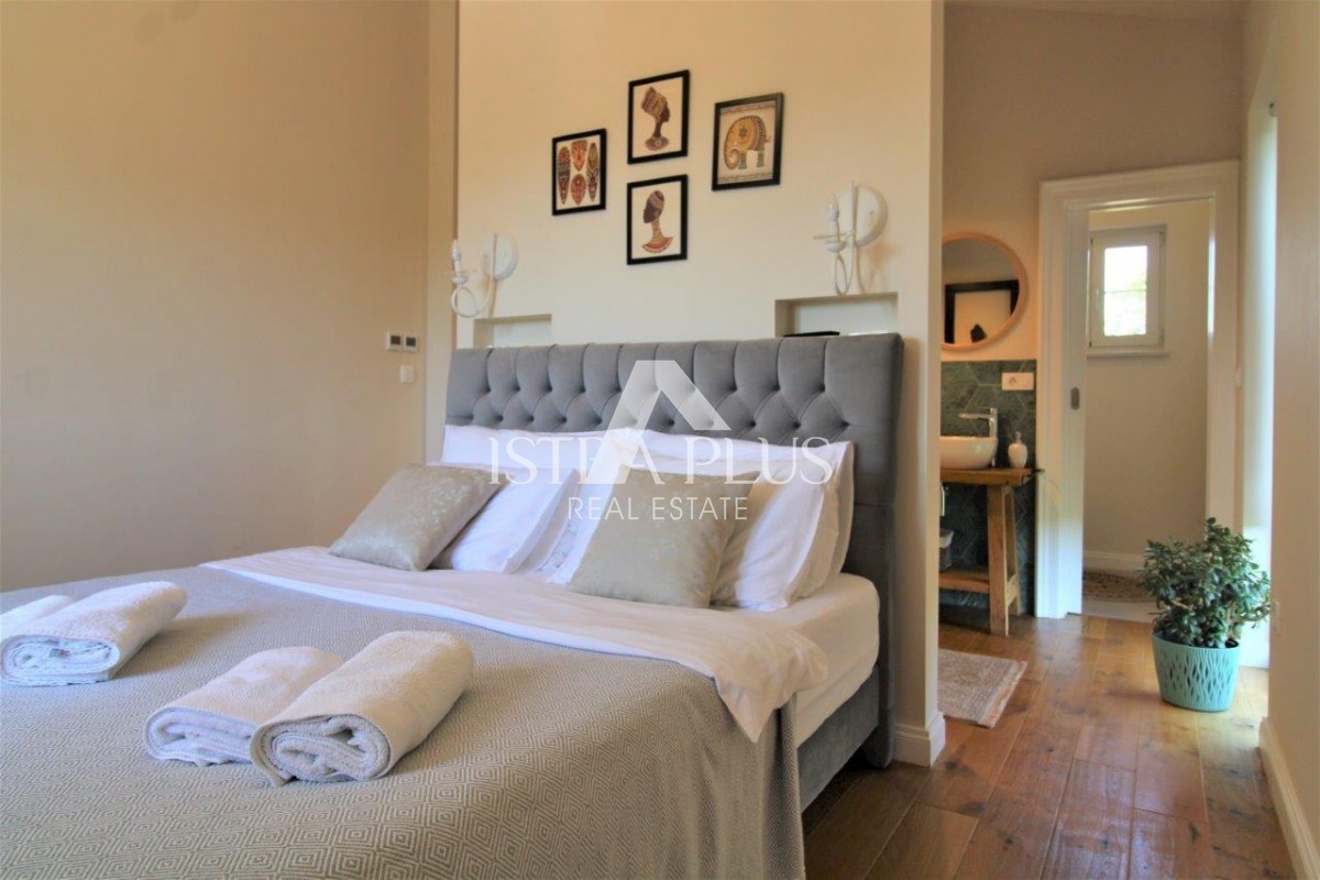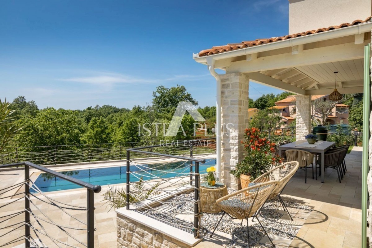 K97 Čudovita kamnita vila v bližini Poreča s panoramskim pogledom na naravo. Od Poreča in morja je oddaljeno 7 km, v bližini je trgovina, kavarna, pošta. Nahaja se na 361m2 velikem zemljišču z negovano in urejeno zelenico ter 31m2 bazenom. Nahaja se na ro