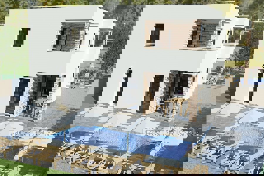 - Približno 9 km od Poreča - v kraju z odlično infrastrukturo - moderna vila v izgradnji 303 m2 - Sestavljena je iz pritličja in prvega nadstropja - hodnik, prostorna dnevna soba, kuhinja in jedilnica, shramba, utility, vinoteka, tehnič