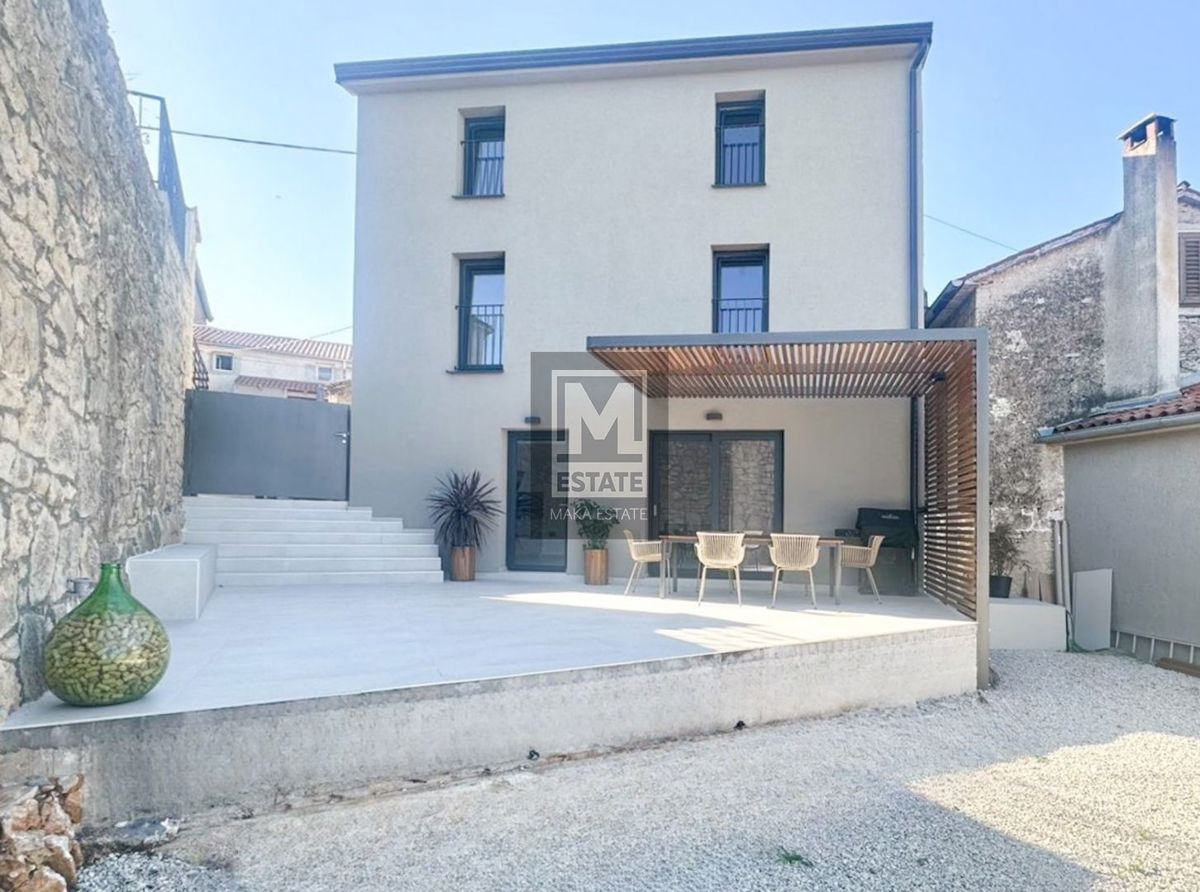 - Poreč - cca 9 km - v kraju z odlično infrastrukturo - prenovljena kamnita hiša v nizu cca 75 m2 v treh etažah - dnevna soba s kuhinjo, 3 spalnice, 2 kopalnici, terasa s pogledom na morje - hiša je v celoti opremljeno in urejeno - park