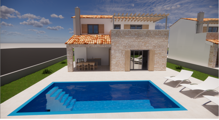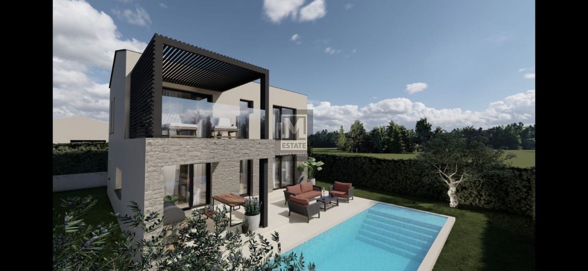 - Kaiser Immobilien ponuja za prodajo povsem novo luksuzno sredozemsko vilo na zelo mirni lokaciji v bližini mesta Poreč. Ta čudovita vila se nahaja na ločeni parceli kot samostojna stavba, v majhnem podeželskem okolju, kjer se ponujajo