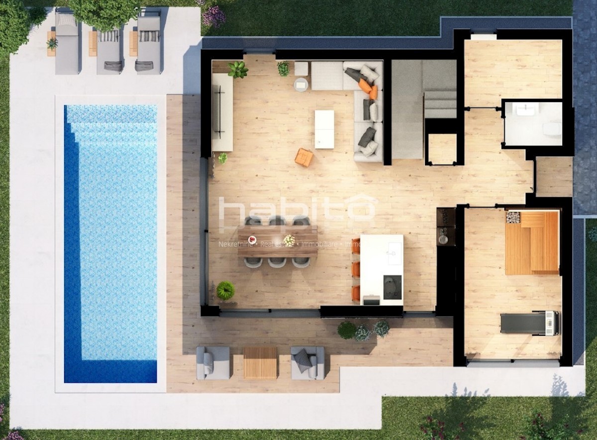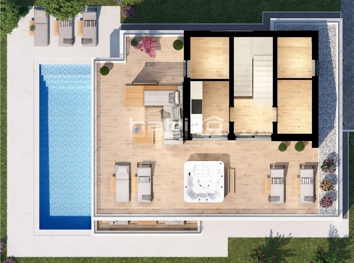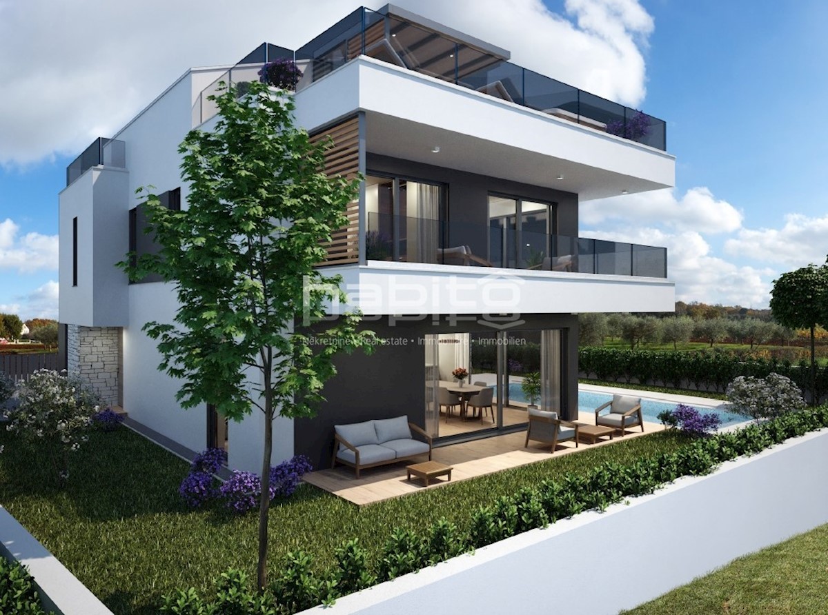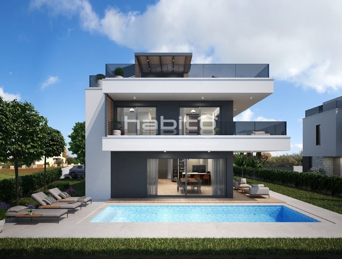 Luxury Villa with Pool in Porec This luxury villa with pool is located in a quiet neighborhood, just 3 km from the sea and the city of Porec. The villa is under construction and has an area of 233 square meters. It consists of a ground floor, first floor
