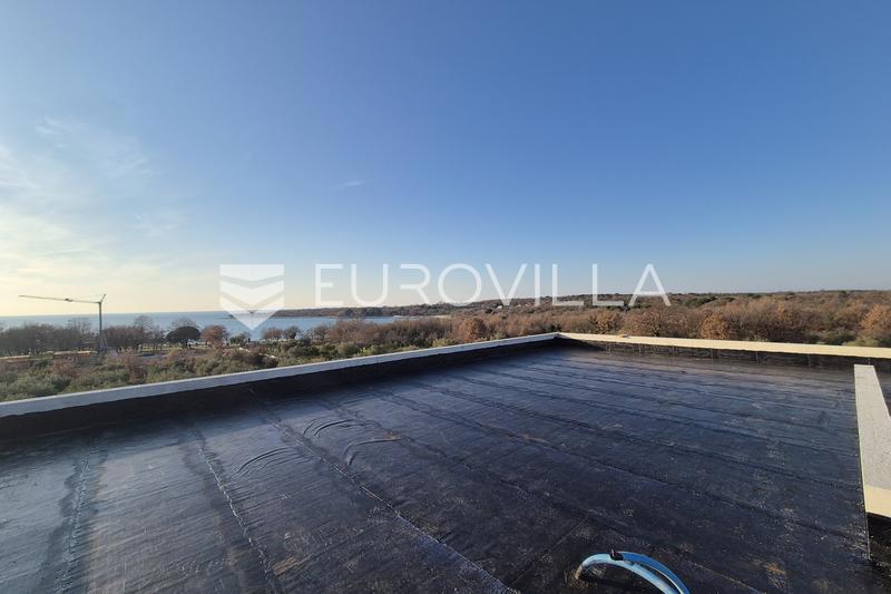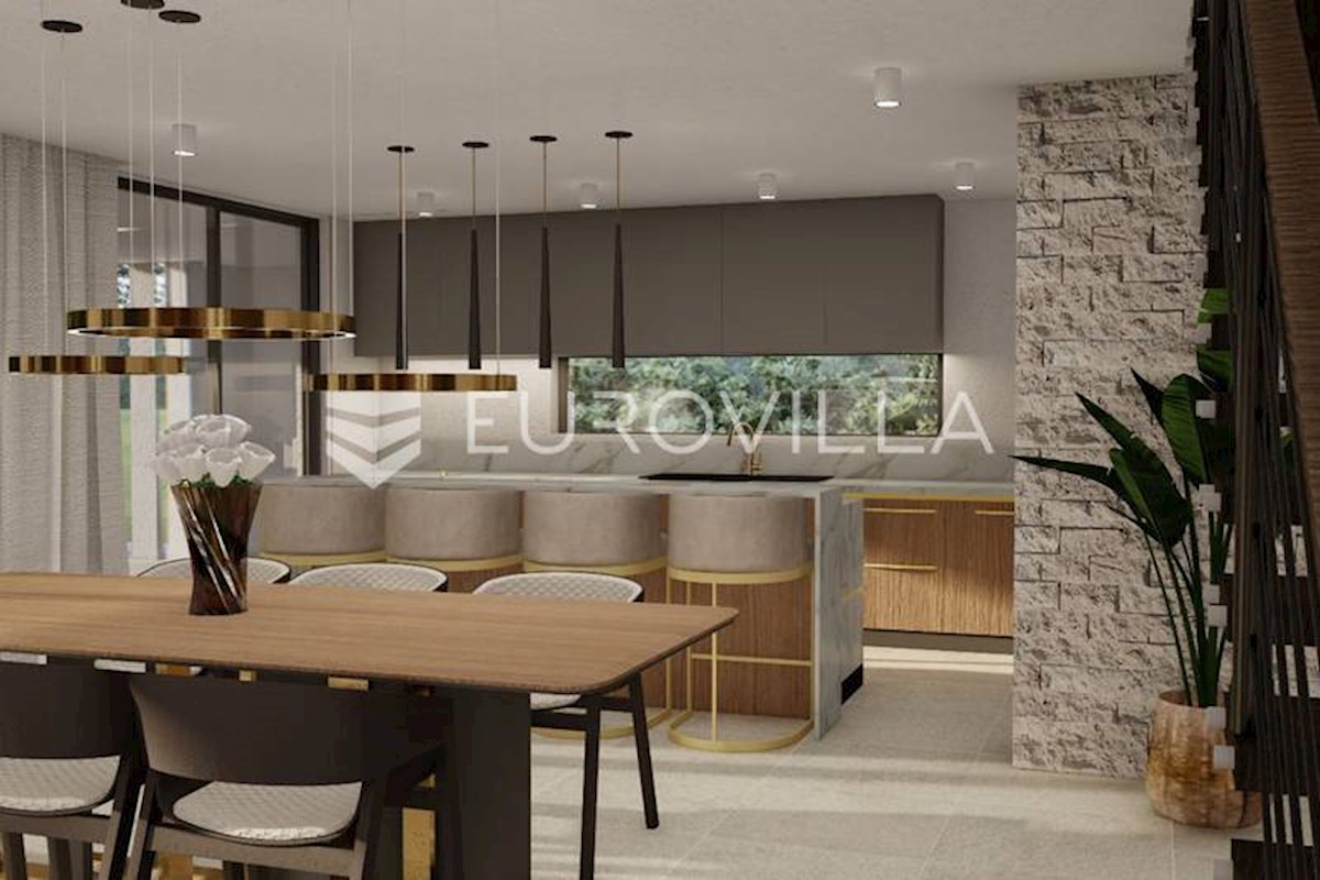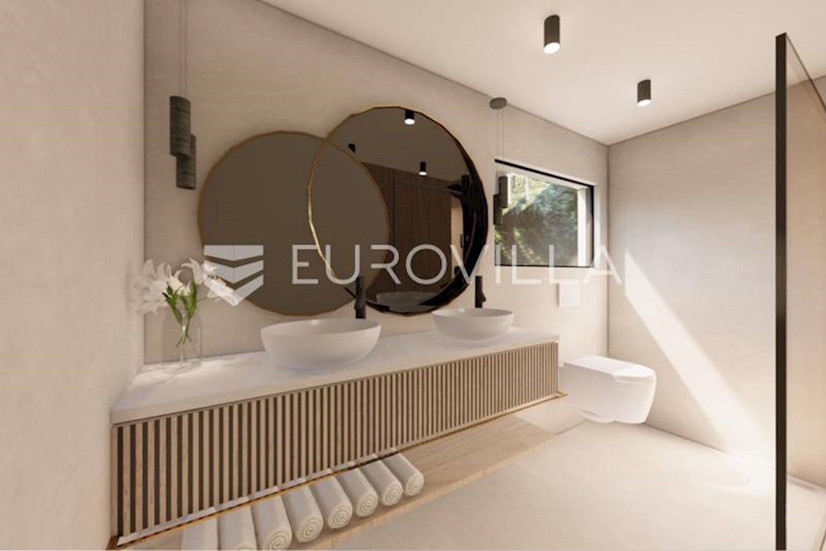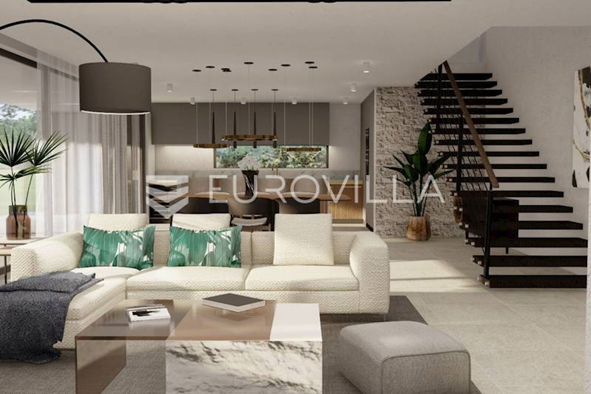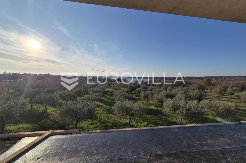 In Poreč, 400m from the beach, there is this beautiful villa surrounded by olive groves. A perfect combination of modern construction and natural beauty. 3 villas will be built on the same plot, each with the same layout and panoramic view. First floor: c