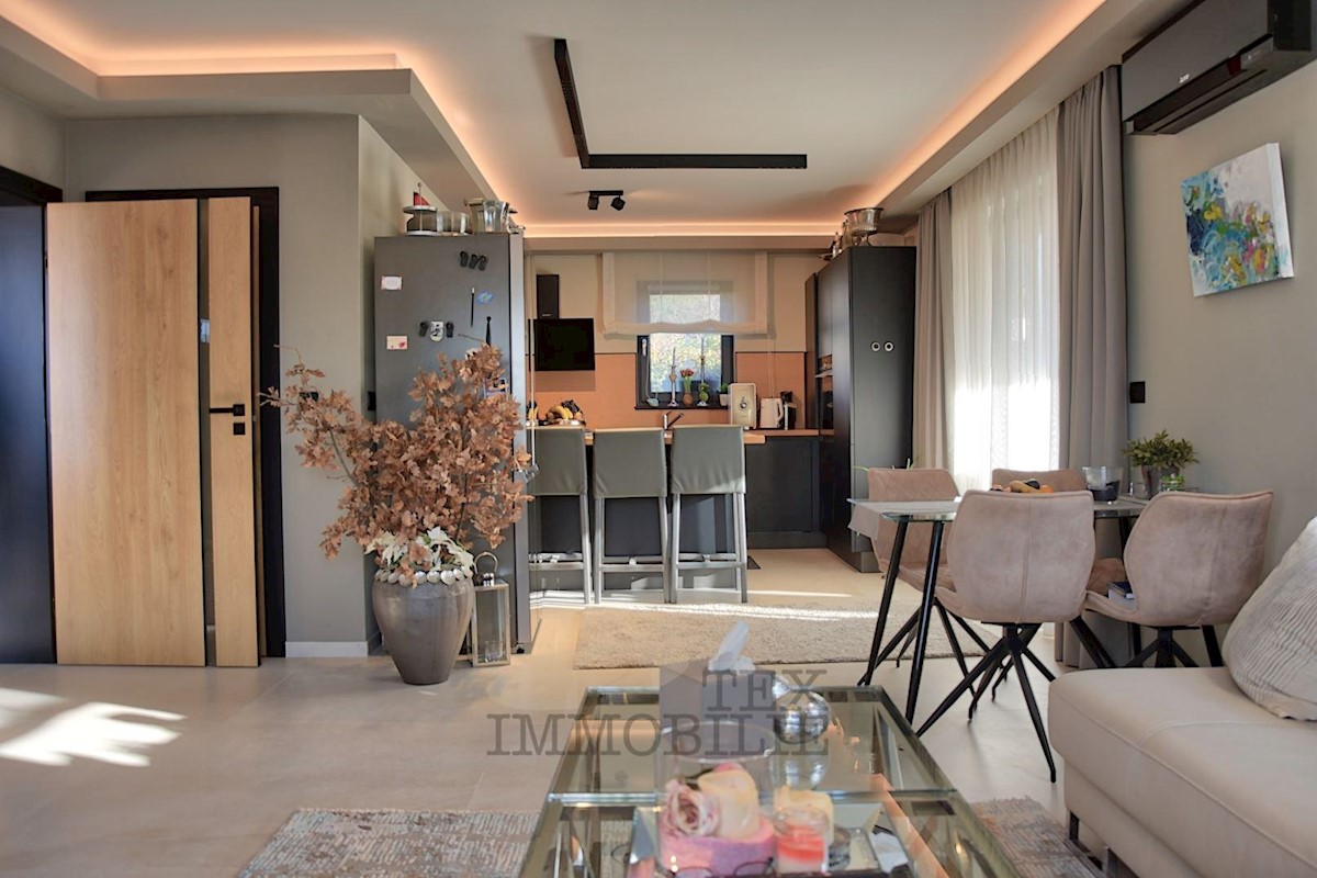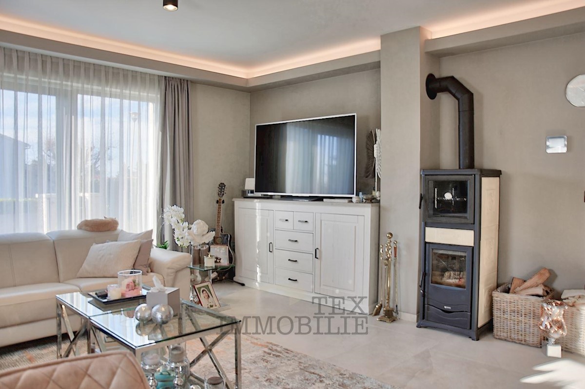 For sale is a charming semi-detached house in Poreč. This beautiful property is only 3 km from the coast of the Adriatic Sea and 4.5 km from the historic center of Poreč. On the ground floor of the house there is a living room with a wood-burning fireplac