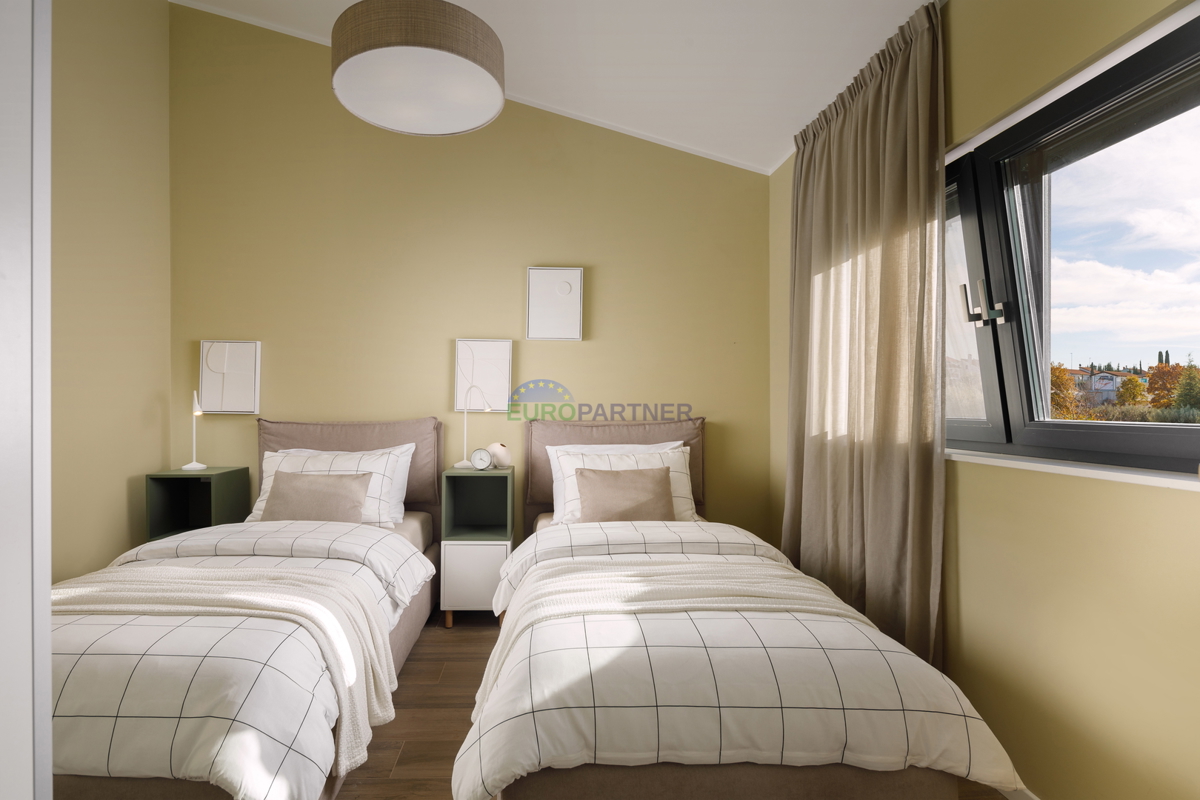 This beautiful, modern and fully equipped house is located in beautiful Poreč, only 900 m from the sea. House B4 is spread over two floors with a total living area of 76.27m2. The house also has a garden of 66 m2, which is fenced and thus achieves a sen