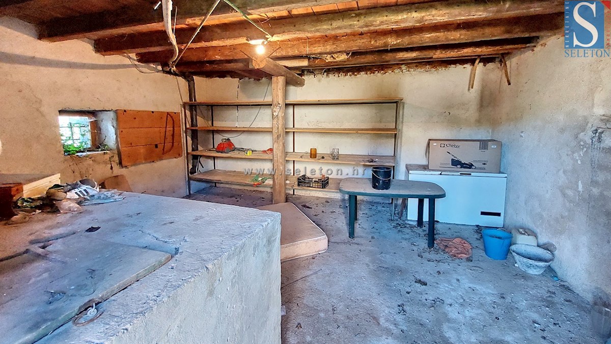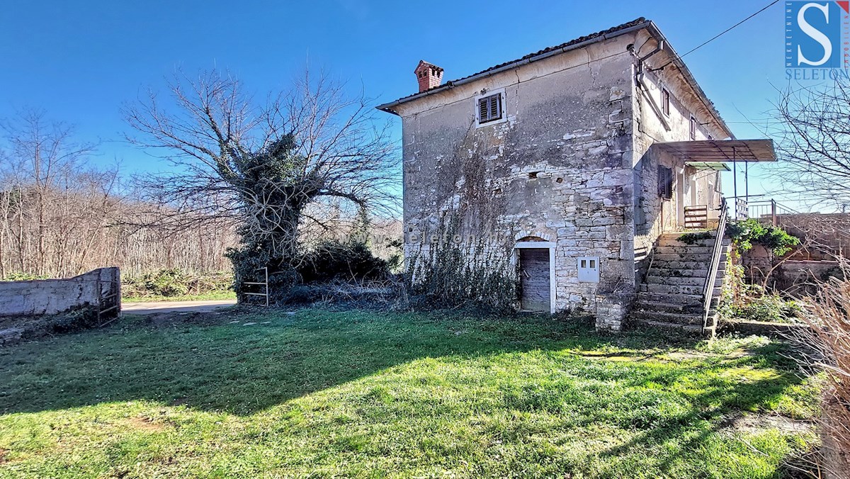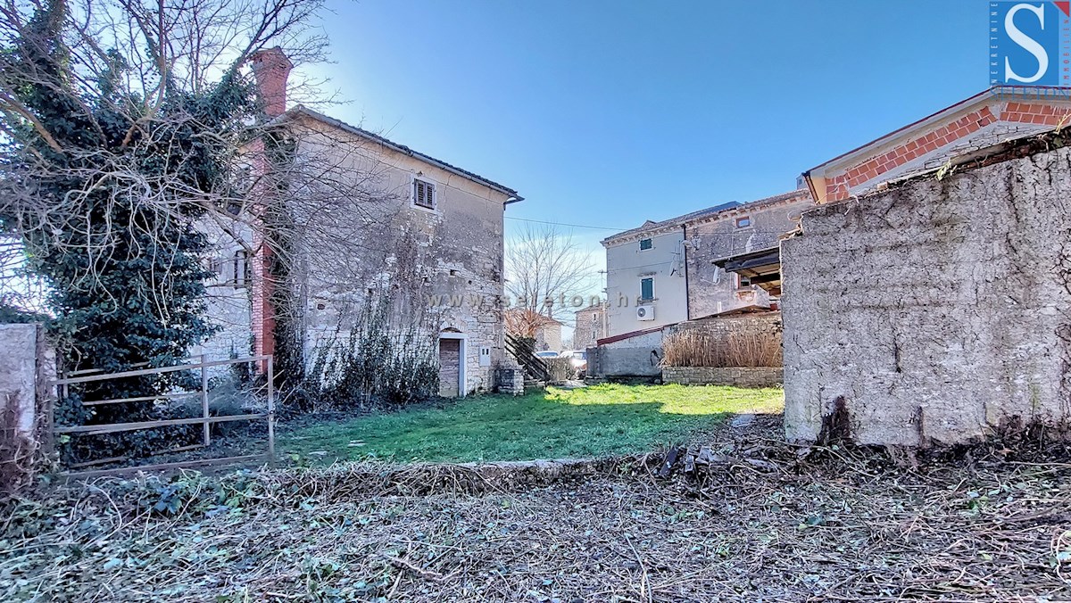 In a quiet village, a semi-detached stone Istrian house with a total area of approx. 90 m² ( 3 floors of approx. 30 m²) is for sale. It consists of a tavern on the ground floor, living room, kitchen, dining room, hallway and bathroom on the first floor a