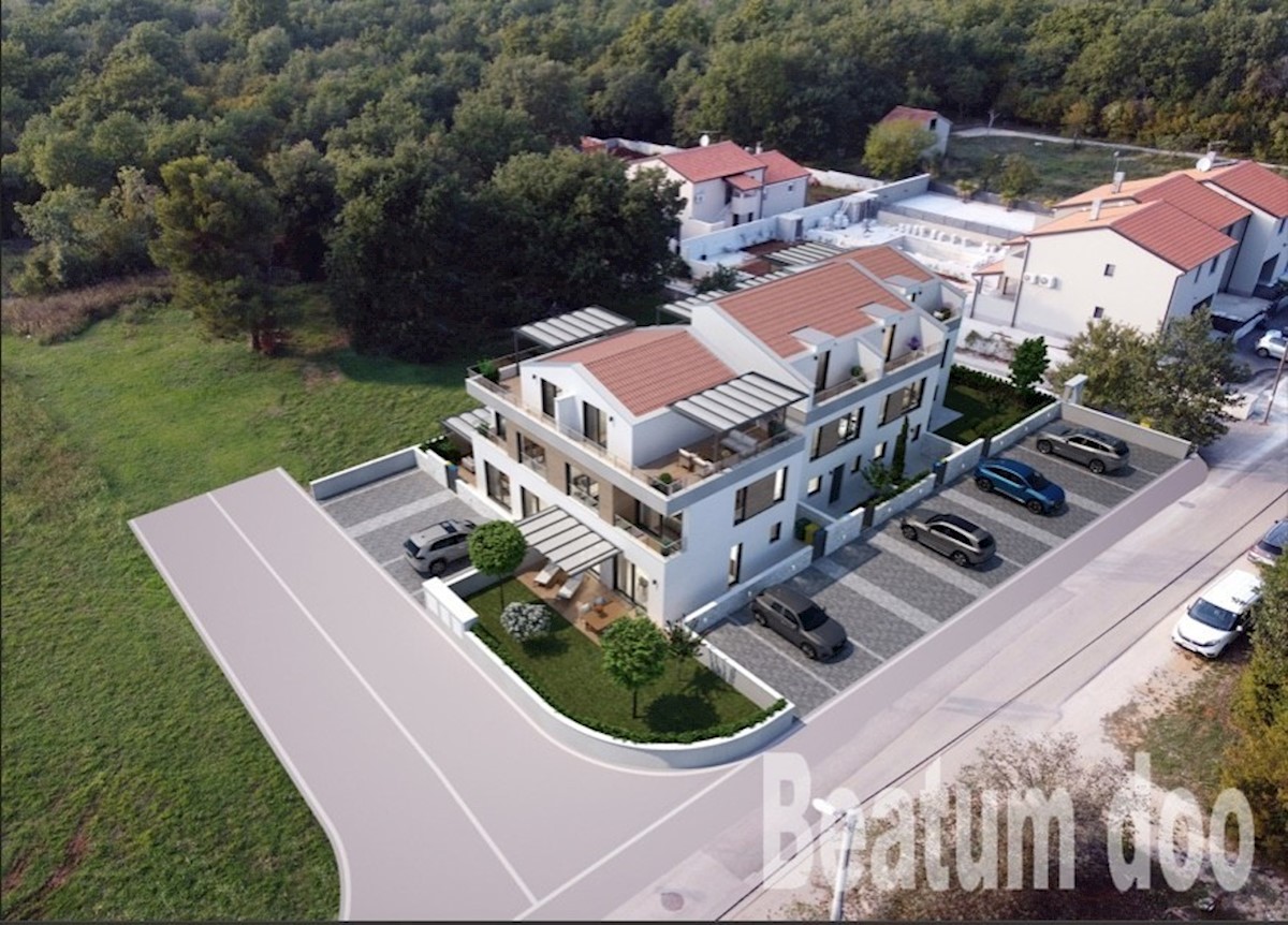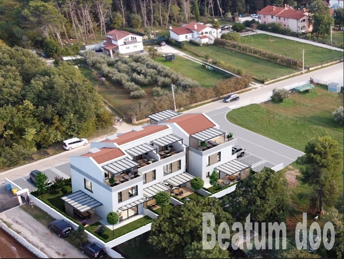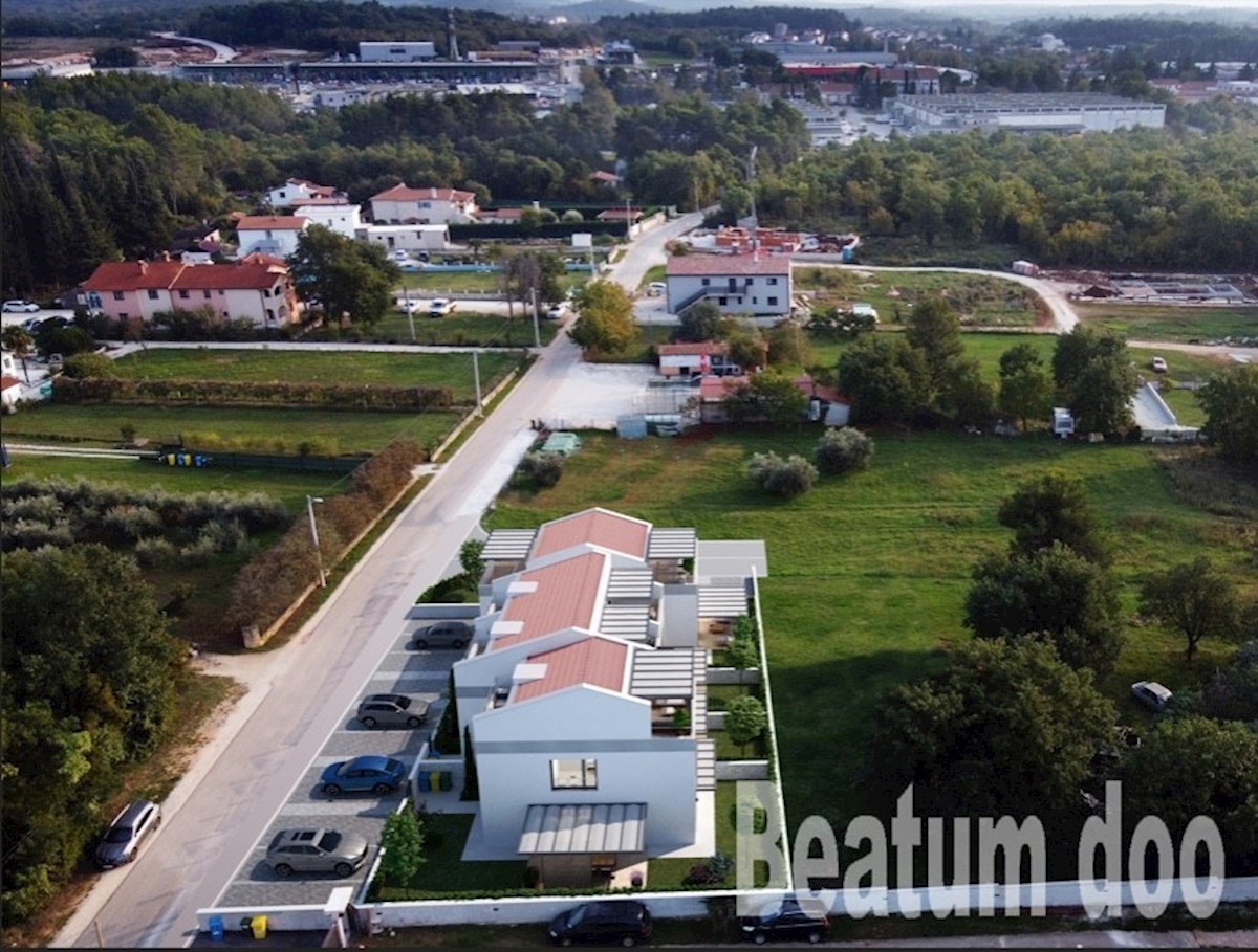 Terraced house C, newly built, near Poreč On the ground floor: laundry and utility room, one toilet, kitchen, dining room, living room, covered terrace. Upstairs: two bedrooms, two bathrooms Attic: one bedroom and wardrobe Underfloor heating (electric) th