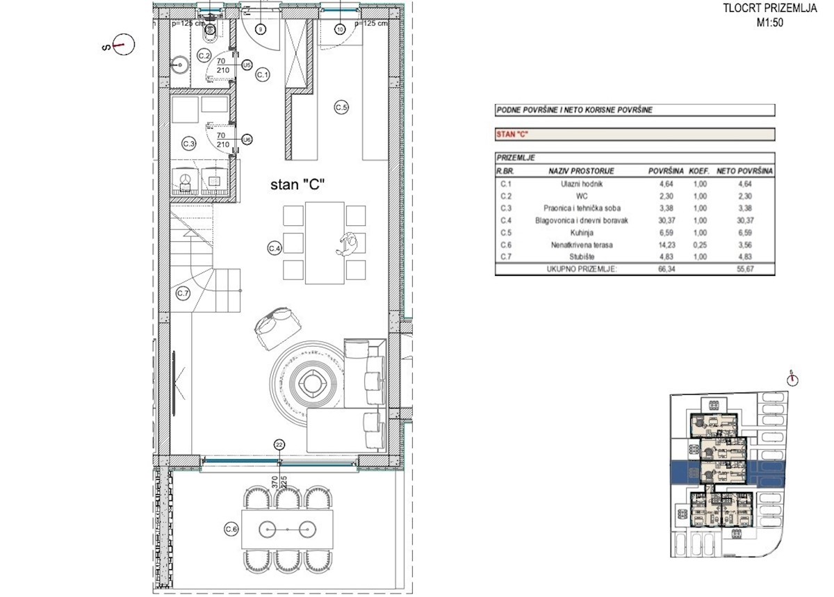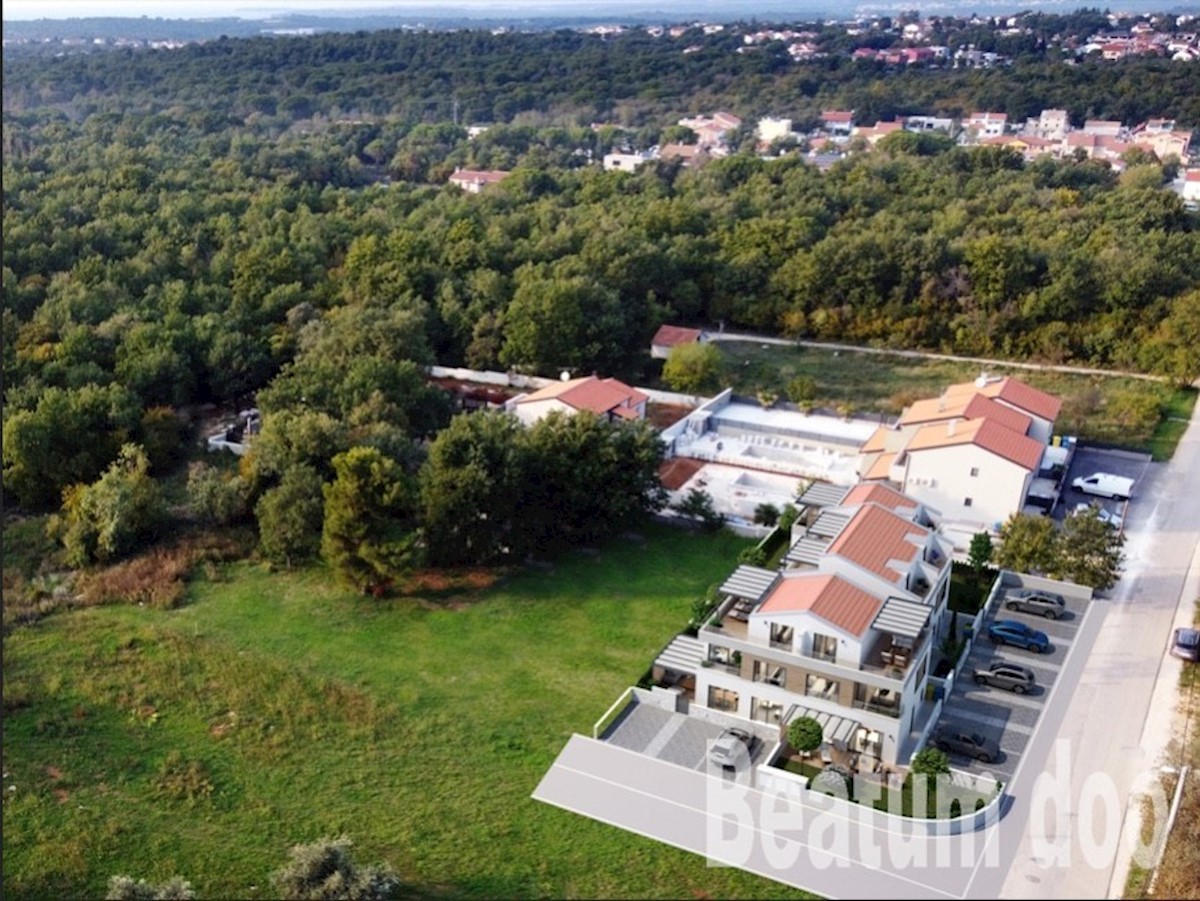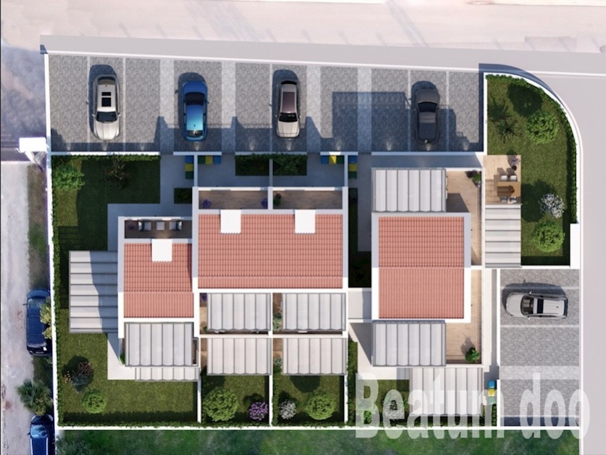 Terraced house C, newly built, near Poreč On the ground floor: laundry and utility room, one toilet, kitchen, dining room, living room, covered terrace. Upstairs: two bedrooms, two bathrooms Attic: one bedroom and wardrobe Underfloor heating (electric) th