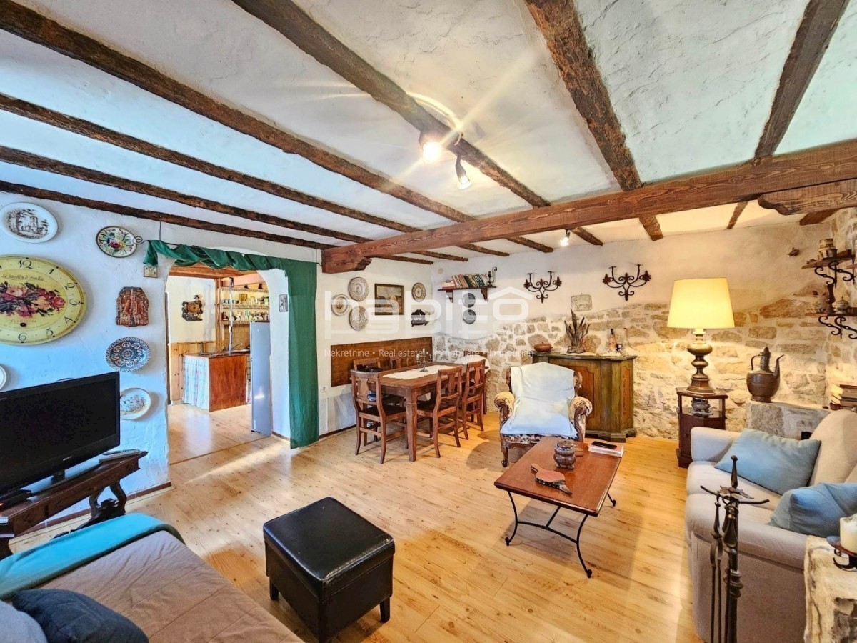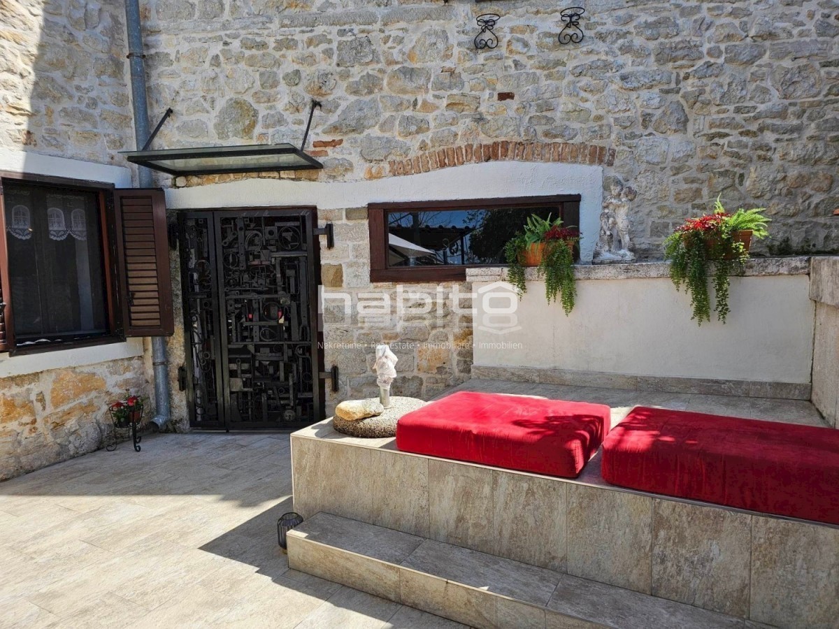 This beautiful renovated stone house of approx. 180 m2 is located in a peaceful part of a small village, only 5 km from Poreč and the sea. The house has four bedrooms, two bathrooms, a spacious living room, two kitchens, a tavern and a large tiled terrace