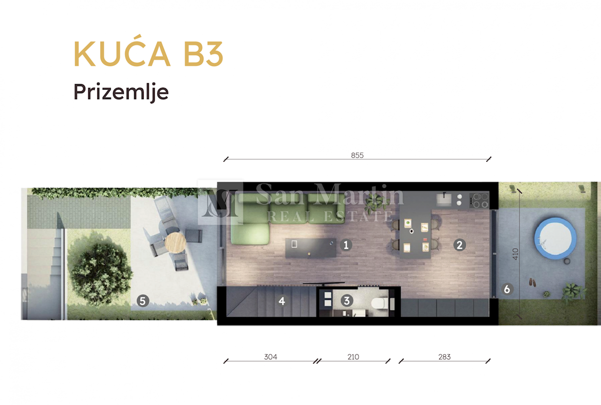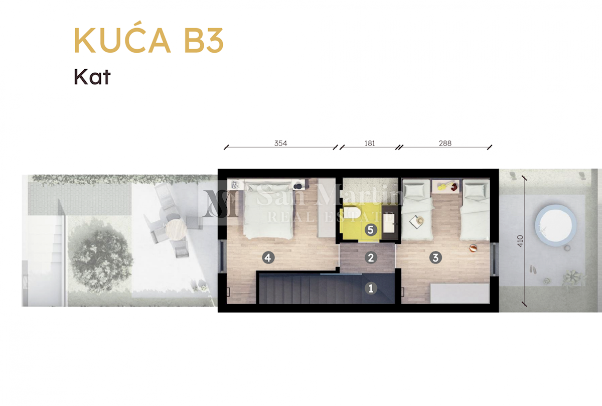 Poreč, near the sea This modern new building is for sale near Poreč. In the settlement of these houses, an ideal balance has been achieved between a peaceful environment and proximity to all the desired facilities, such as the city center and sea shores.