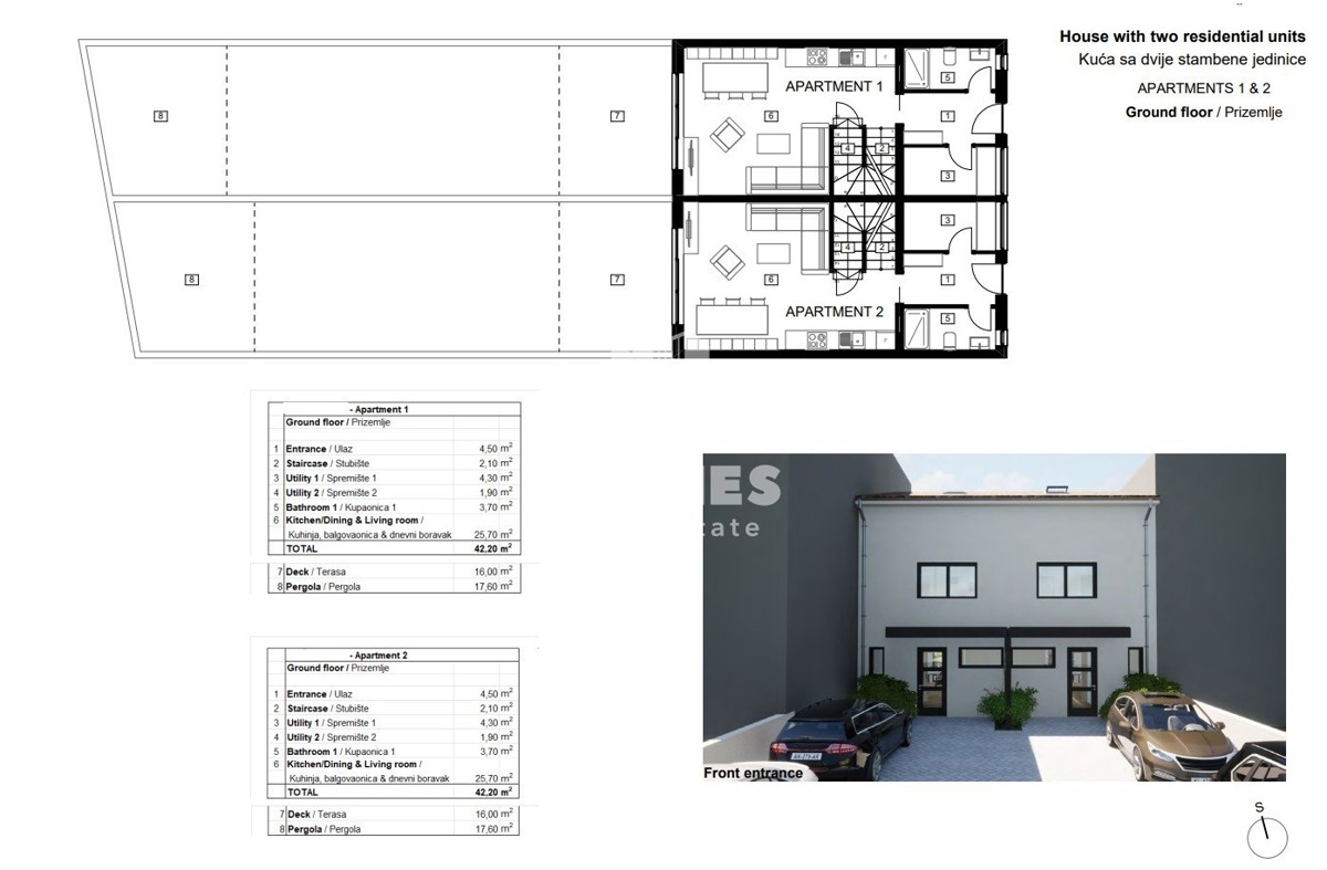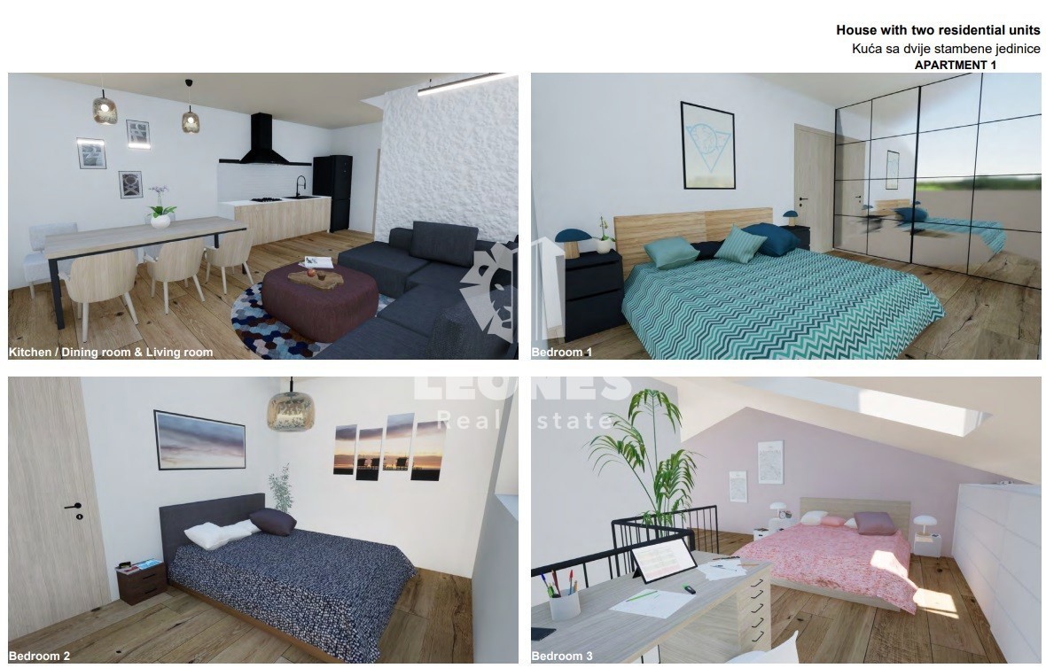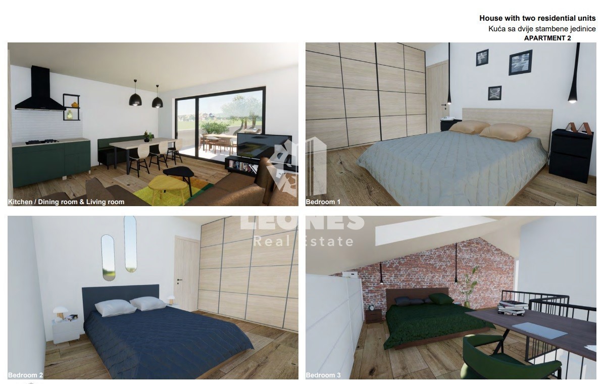 Modern house on three floors with a garden in the vicinity of Poreč A modern house on three floors with a garden in the vicinity of Poreč is for sale. On the ground floor there is an entrance area, a bathroom, an open space living room with a kitchen and