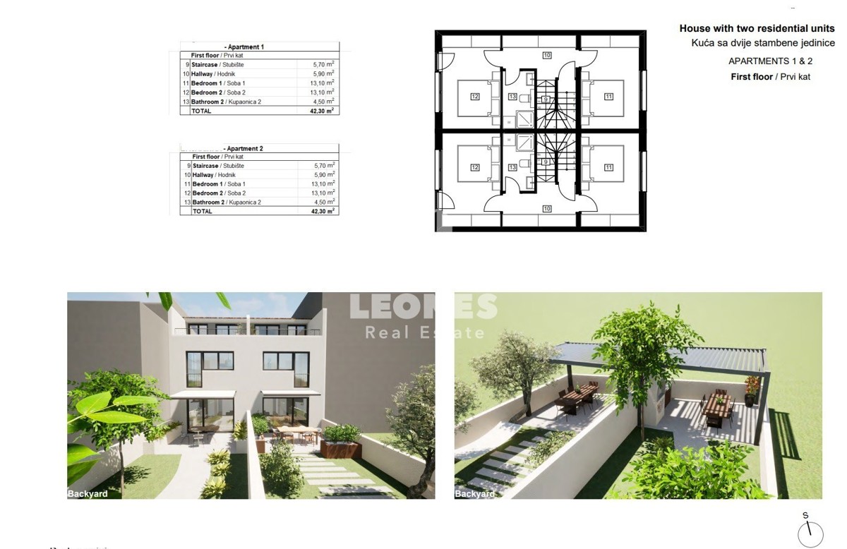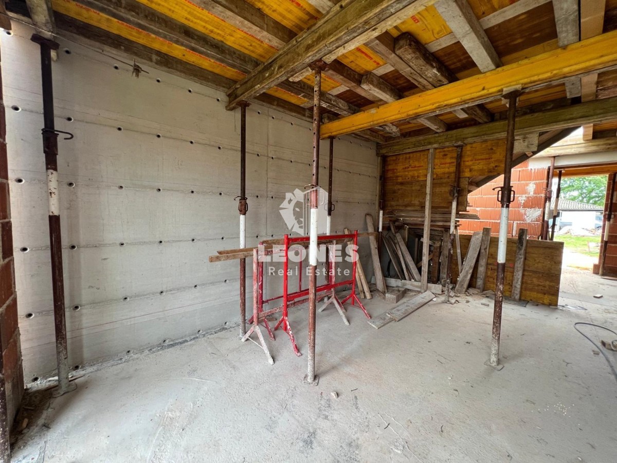Quality semi-detached house with a garden in the vicinity of Poreč A quality semi-detached house with a garden in the vicinity of Poreč is for sale. On the ground floor there is an entrance area, a bathroom, an open space living room with a kitchen and a