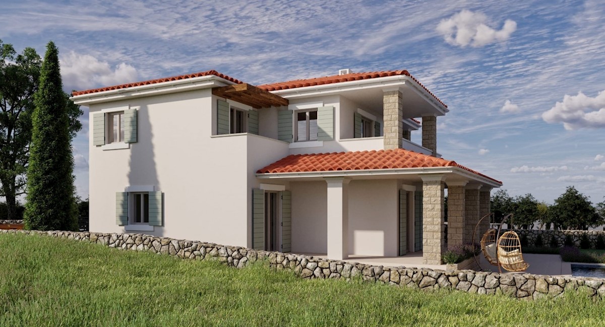 Beautiful villa under construction in an extremely quiet location, approx. 17 km from Poreč and approx. 2.5 km from places with markets, cafes, etc.. - this luxury villa of 277 m2 net area is located on a plot of land of 937 m2 - basement: fitness room, s
