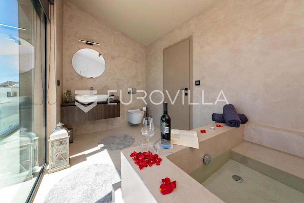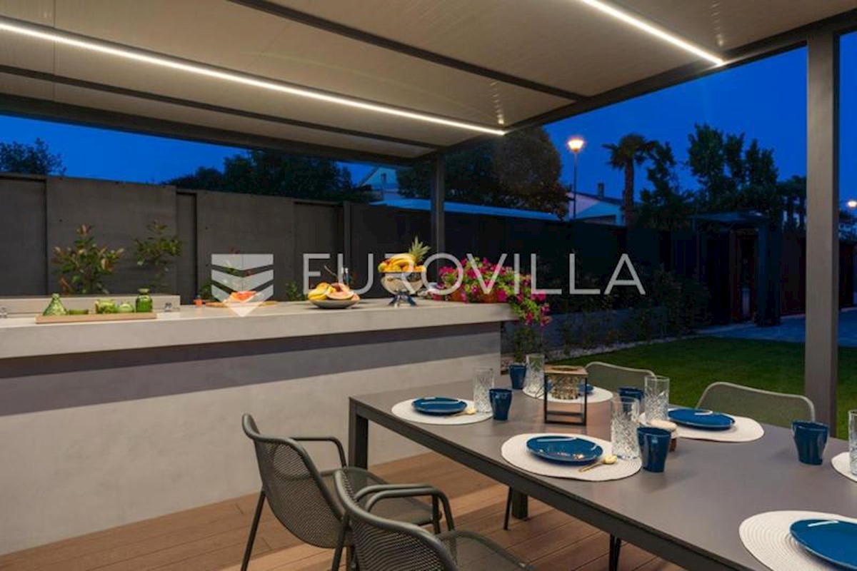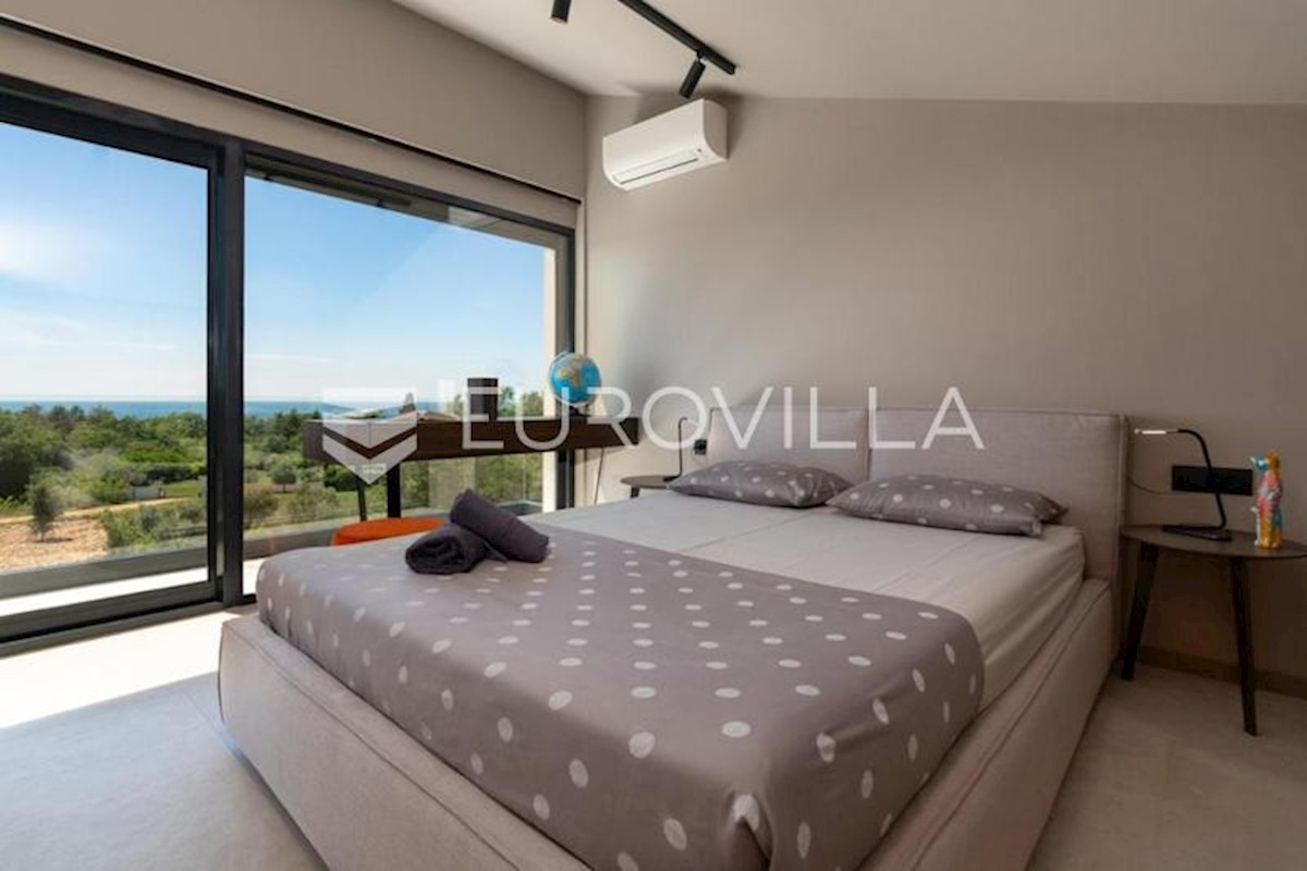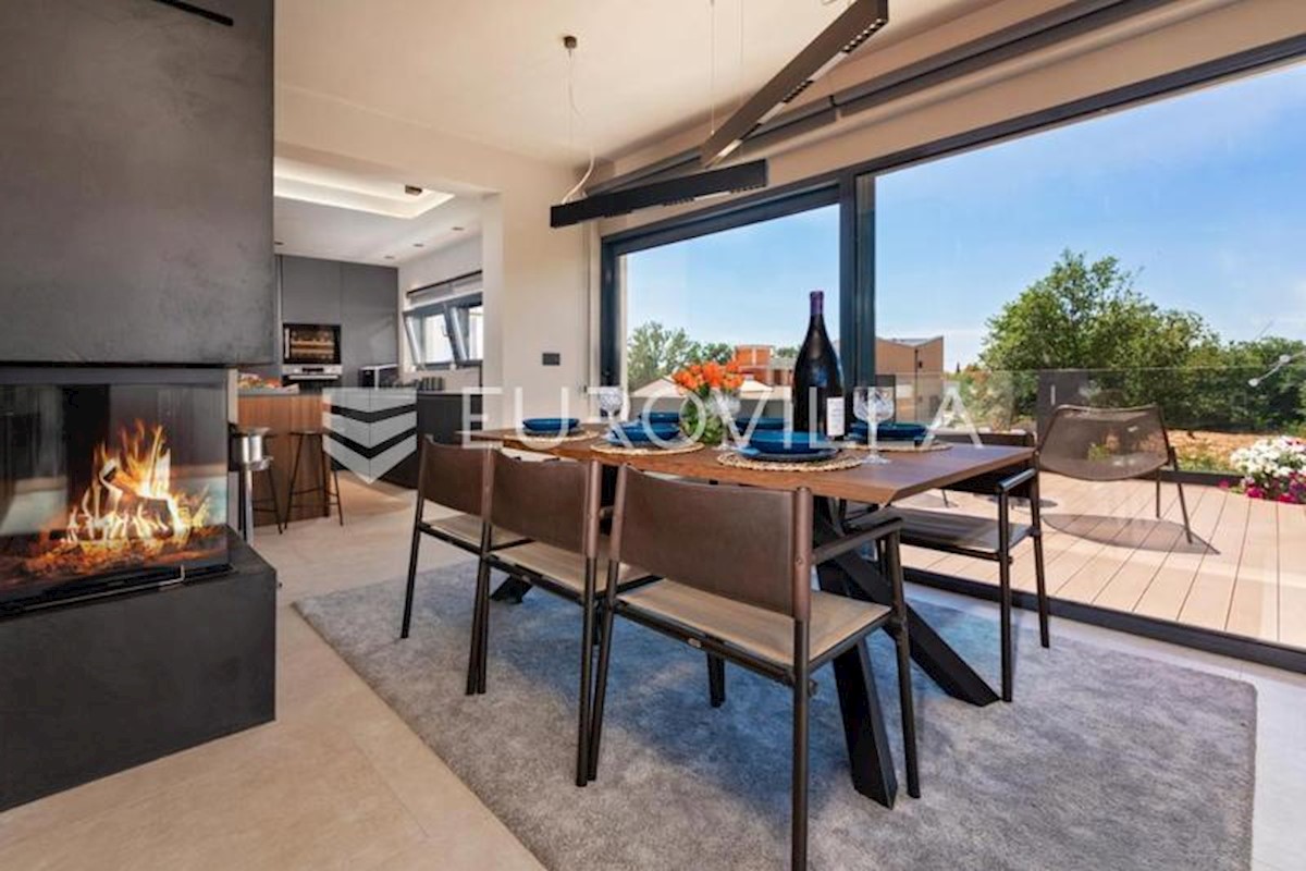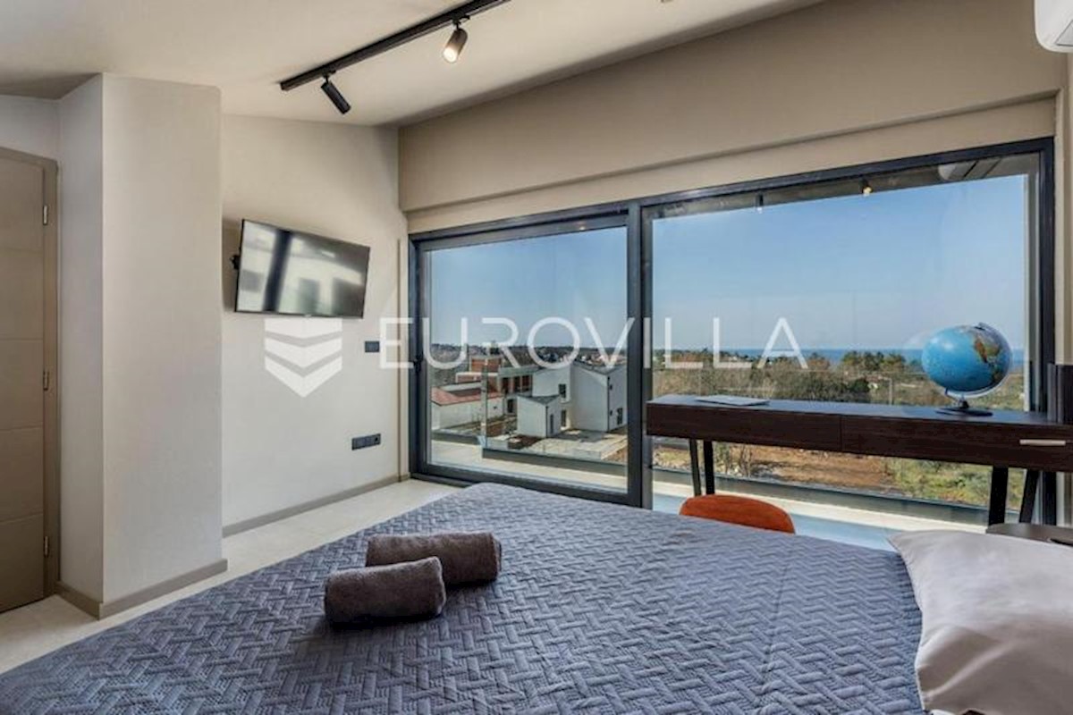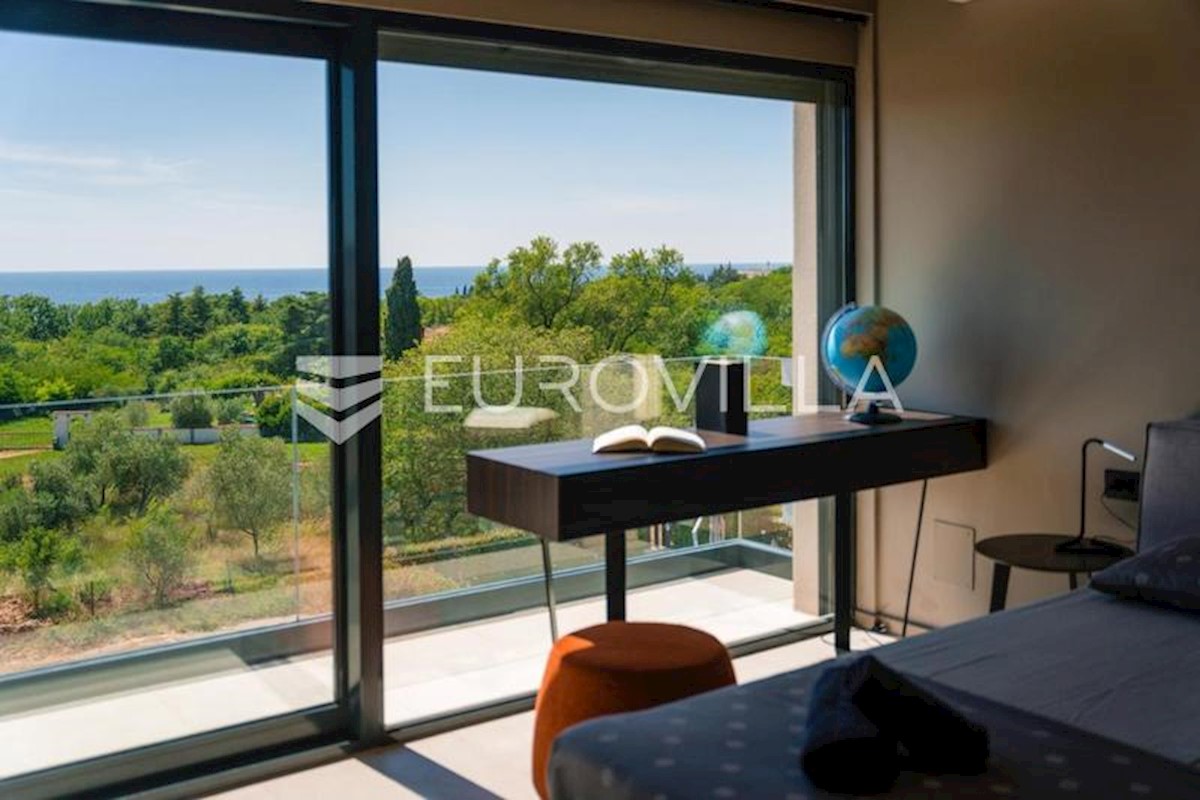 This beautiful villa with a pool and sea view is located in a great location in Poreč. The house consists of ground floor, first and second floor in two parts. The first part consists of a living room, a dining room, a kitchen with an island, a storage ro