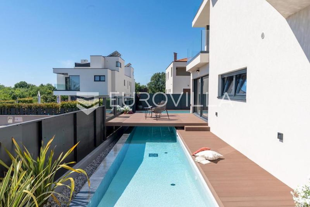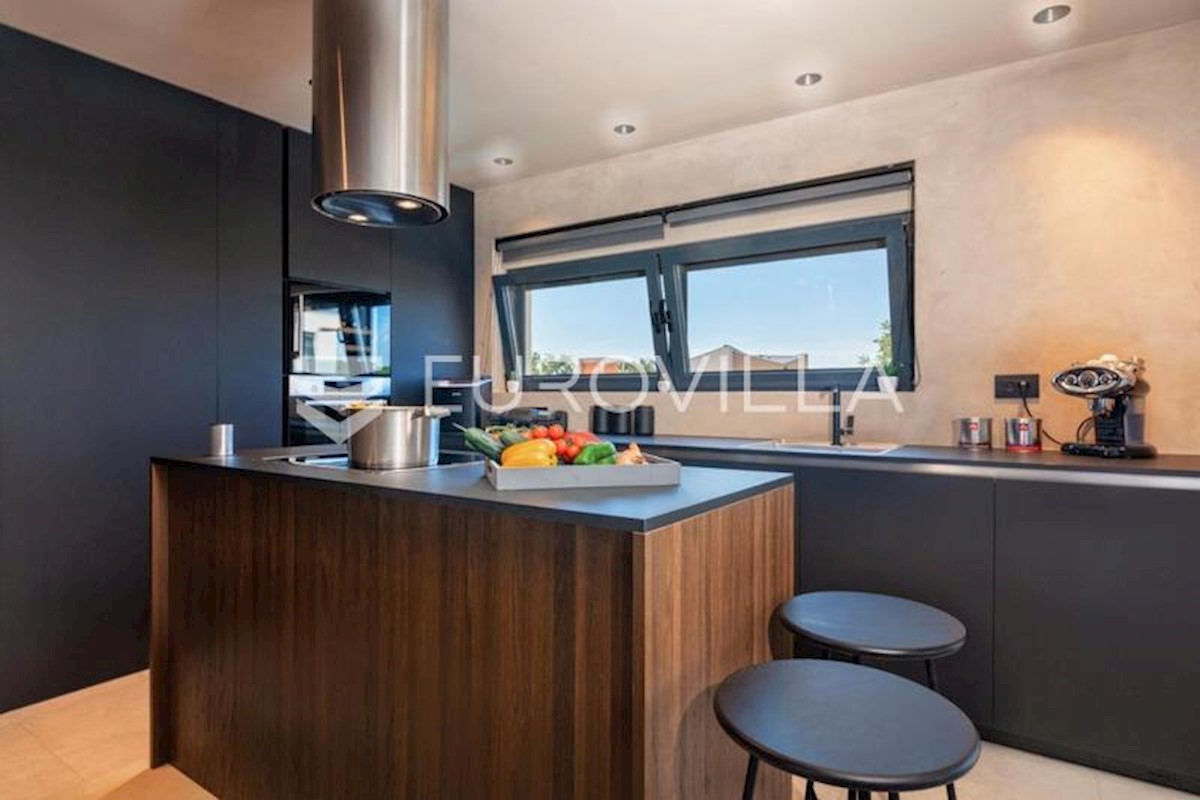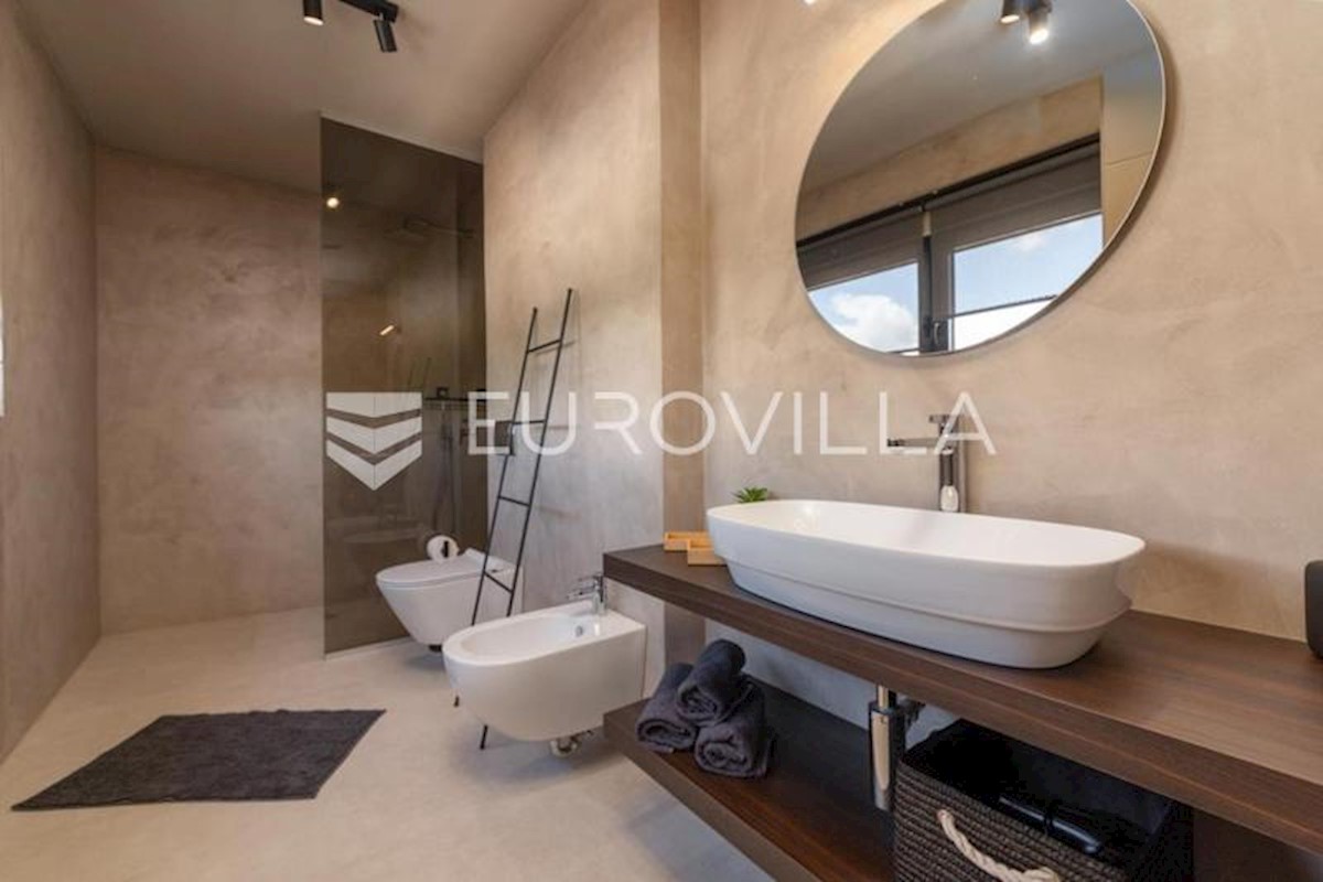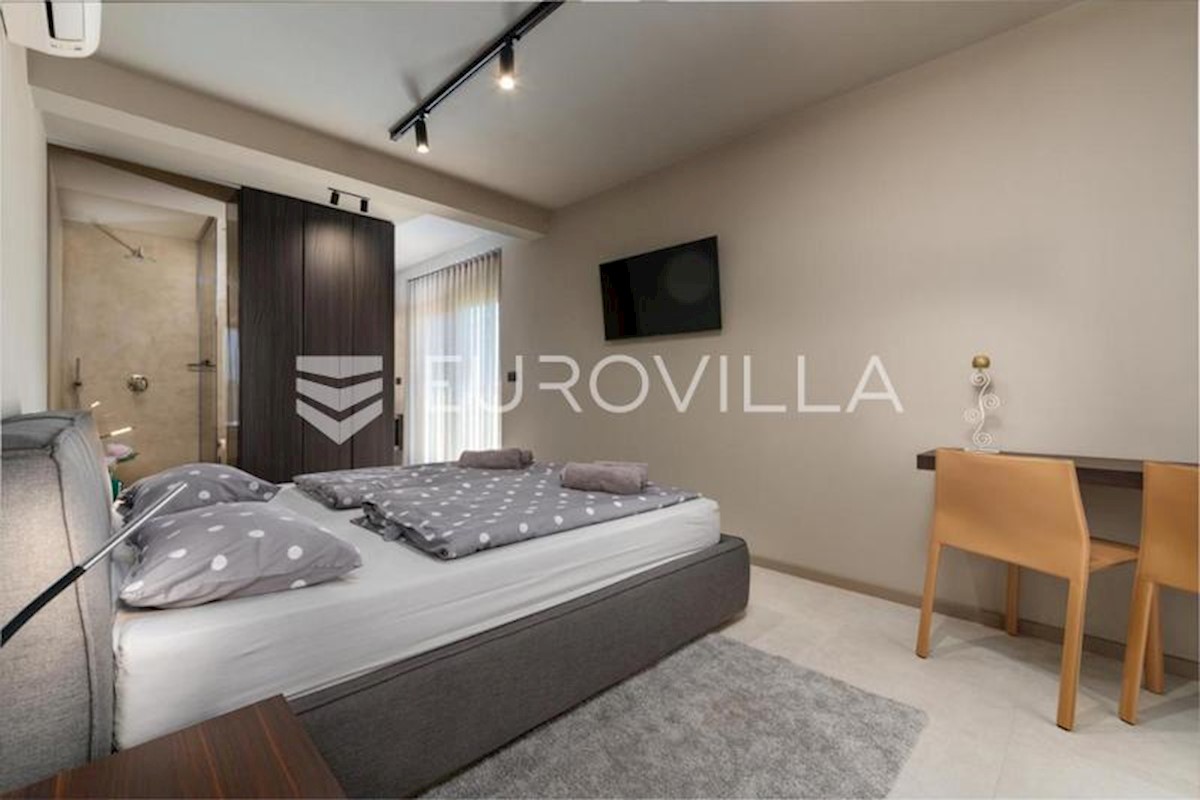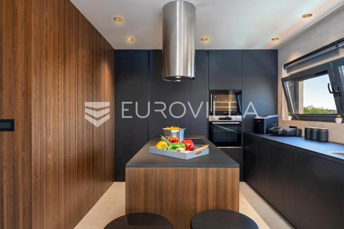 This beautiful villa with a pool and sea view is located in a great location in Poreč. The house consists of ground floor, first and second floor in two parts. The first part consists of a living room, a dining room, a kitchen with an island, a storage ro