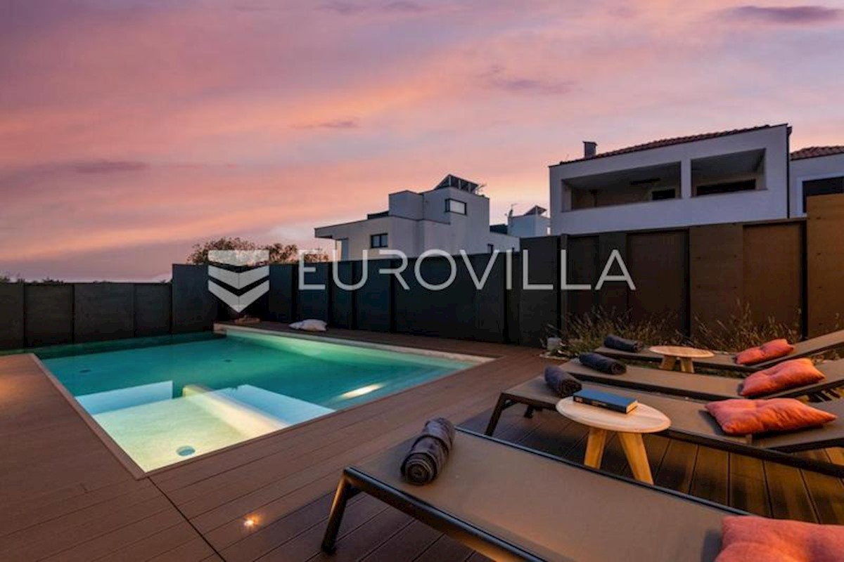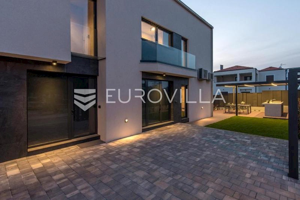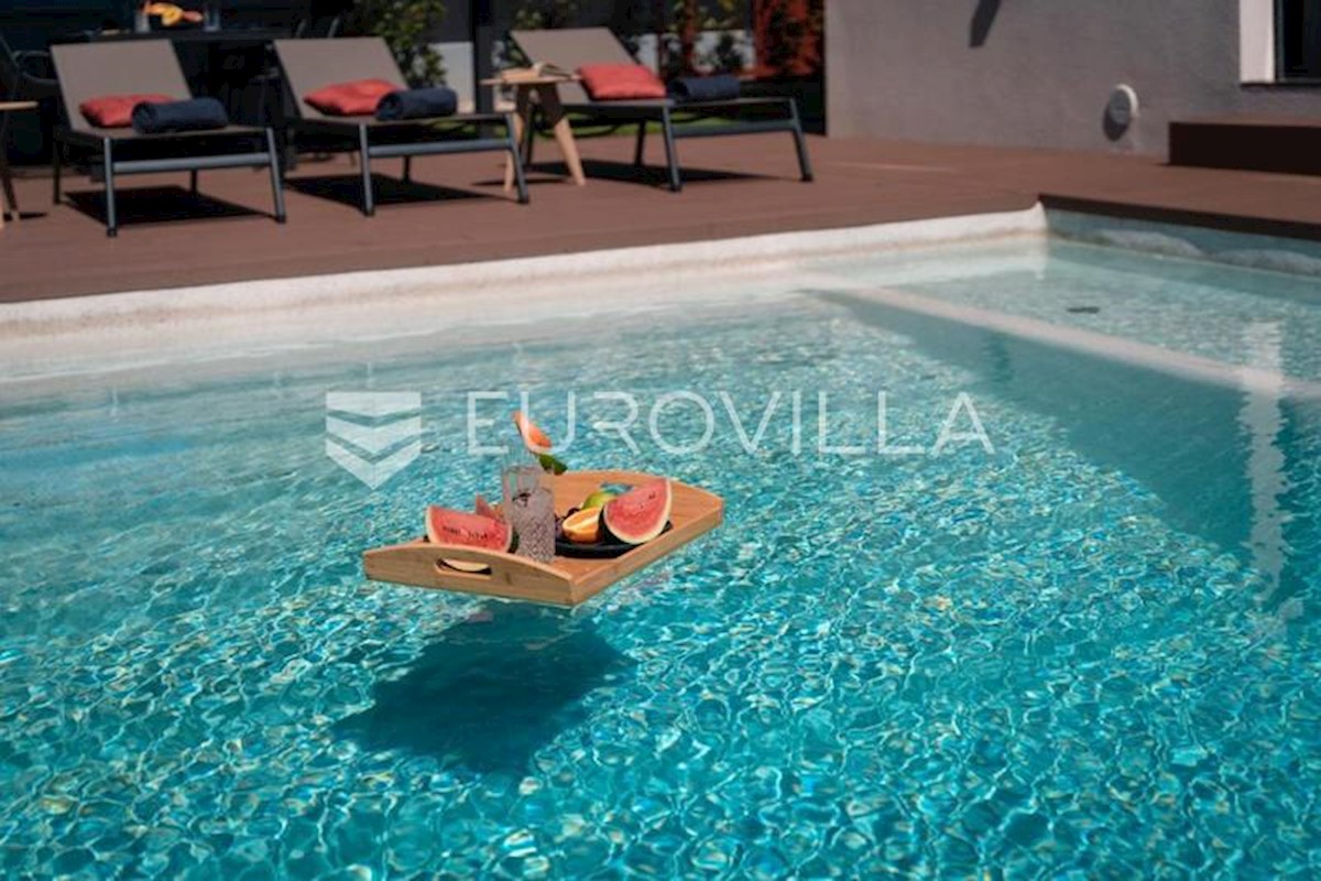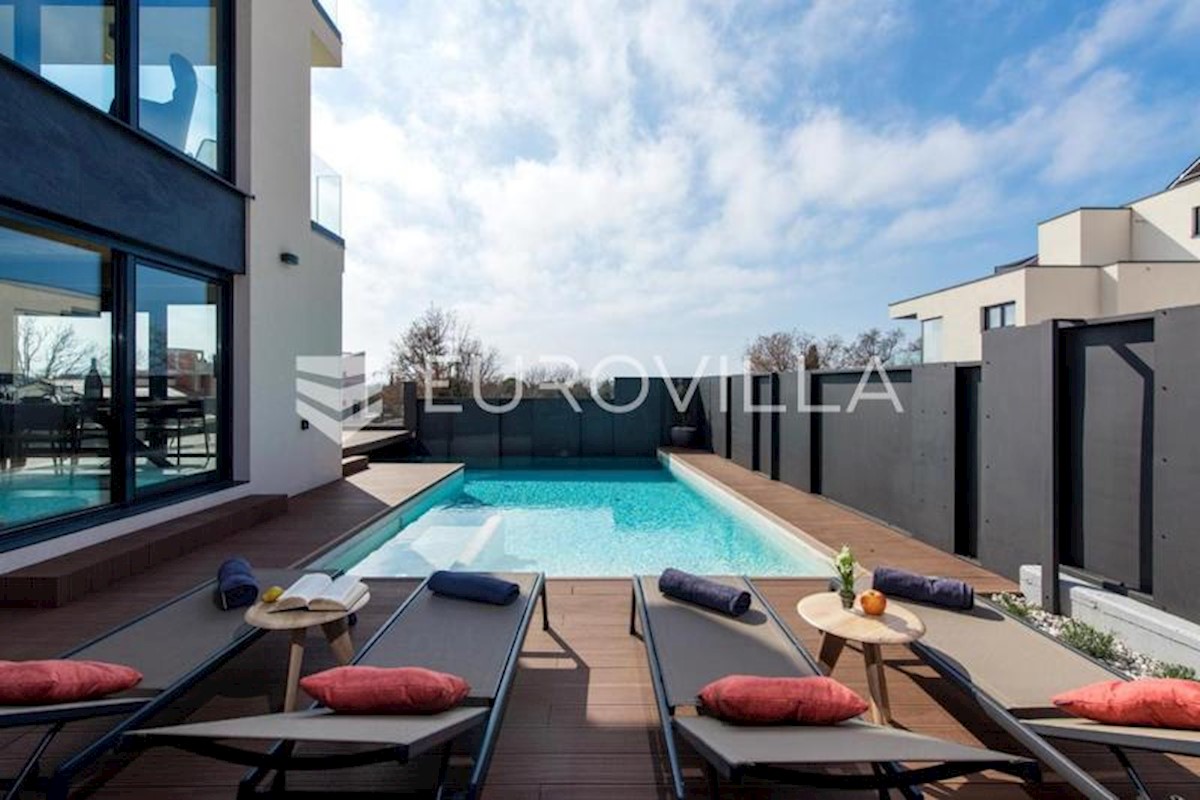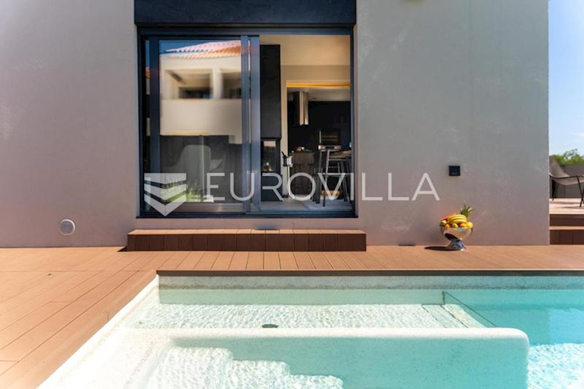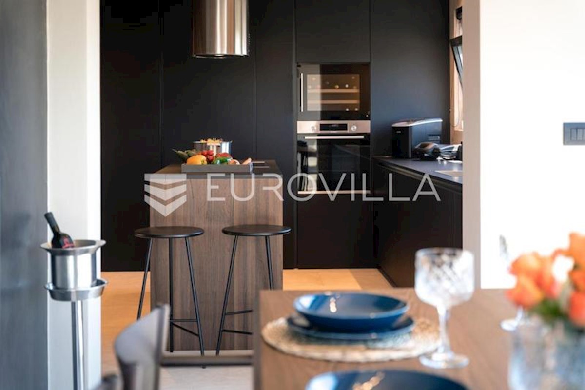 This beautiful villa with a pool and sea view is located in a great location in Poreč. The house consists of ground floor, first and second floor in two parts. The first part consists of a living room, a dining room, a kitchen with an island, a storage ro